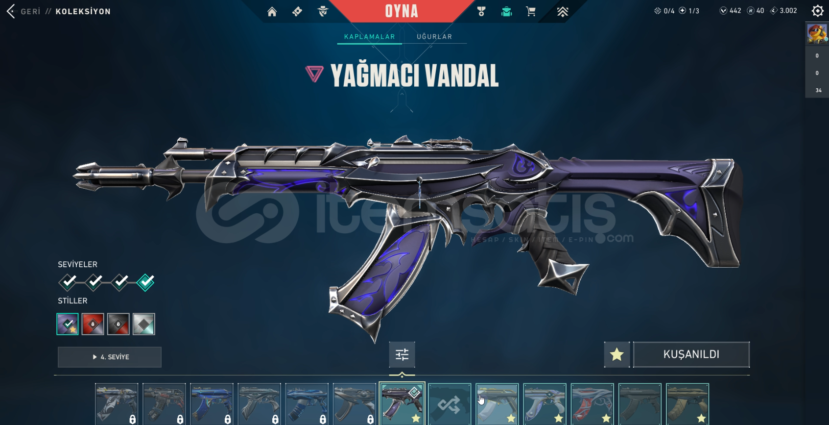 Hesap ÖzellikleriRANK : DEMİR 3SKİN SAYISI : 7VP : 442TELEFON : ONAYSIZMAİL DEĞİŞMEKTEDİRİSİM DEĞİŞME HAKKI MEVCUTALIRKEN VİDEO KAYDI ALINIZ