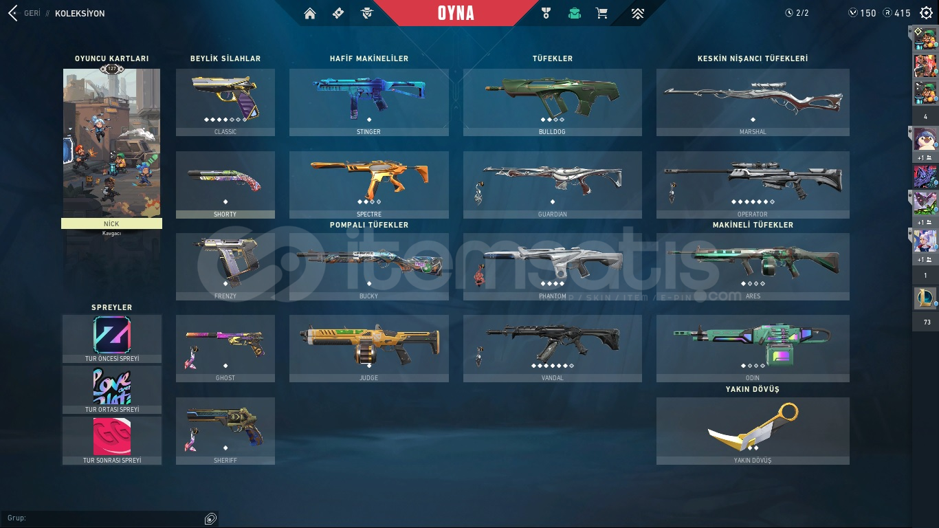 Oyuna bidaha gelmiycek yalpaze mevcud içinde +300 den fazla radyanit varVandal : yagmacı vandal-rgx vandalphontam : onı phantom - ıyon phantombıcak : asil karambıt - alaz yalpazeclasic : asıl clasıcoparator : yagmacı op-muharebe oporatorbulldog: yıldız belasısprey : spectrum sprey mevcutGüncel kura gore hesaplanmıstır ındırım wardır