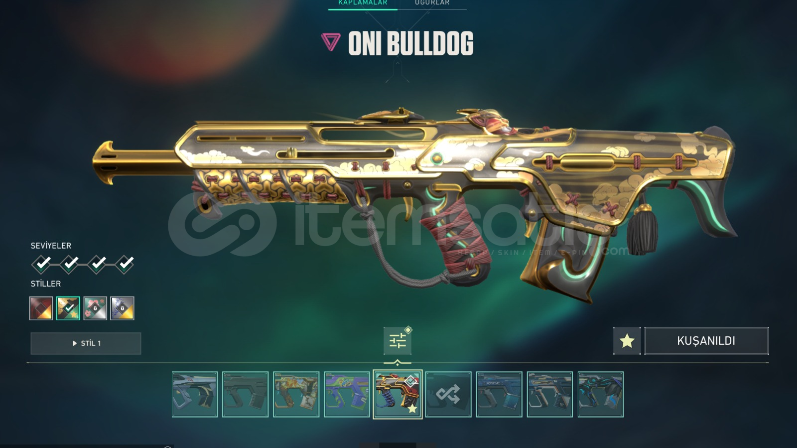 Oni frenzyUlu pençe ghostSherif:Seri tetikPonçik ecelStinger :Ponçik ecel stingerSpectre:yitik spectreBuldog:oni buldogGuardian: gaia guardianPhantom:YağmacıZamanın ötesiPonçik ecelFelaketin kalbiSpectrumVandal:KuronomiYağmacıKaosOniRgxAnomaliKaraborsaChampions25Marshal:GaiaSeritetikOperatör:Radiant enterraintmentPonçik ecelKaosEjderAres:OniBıçaklar:ALAZ YELPAZESeri tetik baltaOni katanaPonçik ecelRgx kelebe...