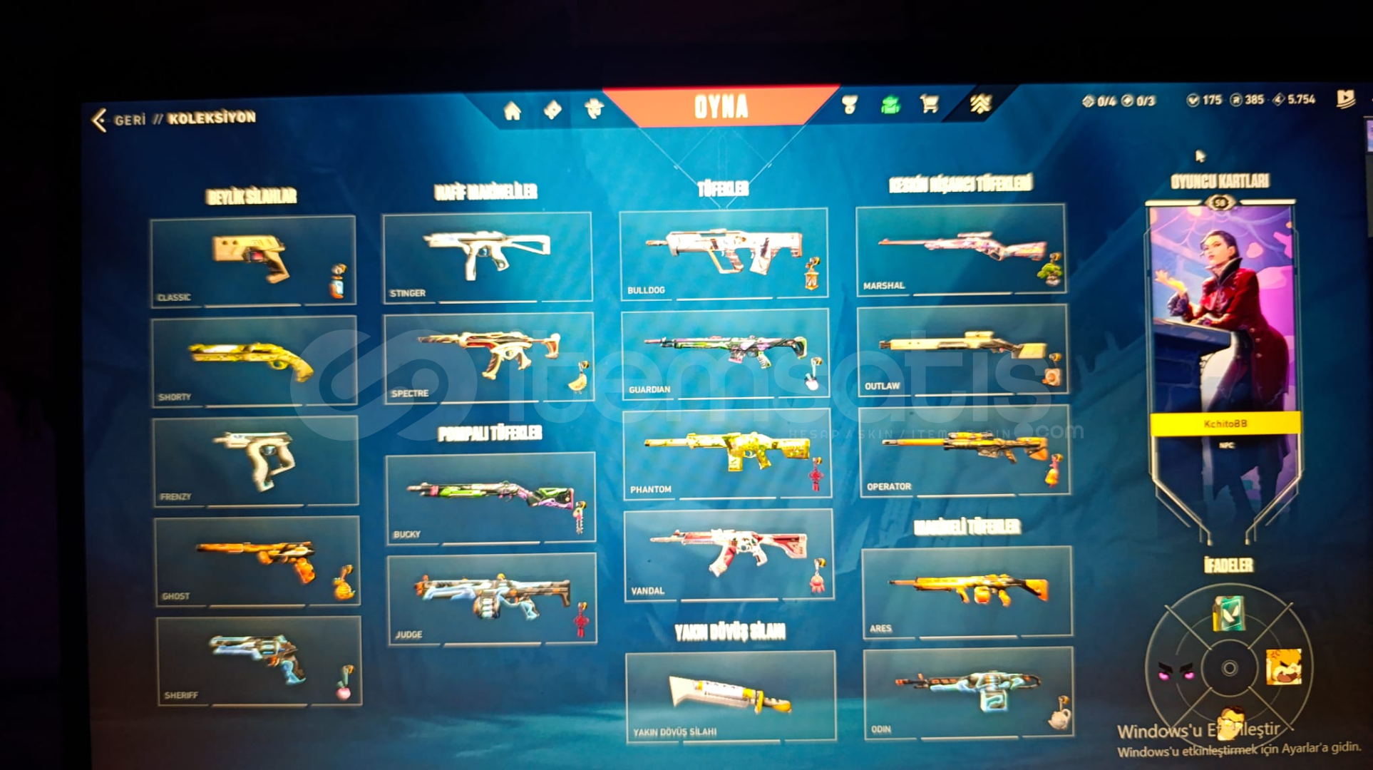 hesapta her silahta en az 3 er skin bulunmakta toplam 50 tane falan skin vardır yükseltilebilir değildir sadece desendir ama nadir desenlerdir 175 vp vardır