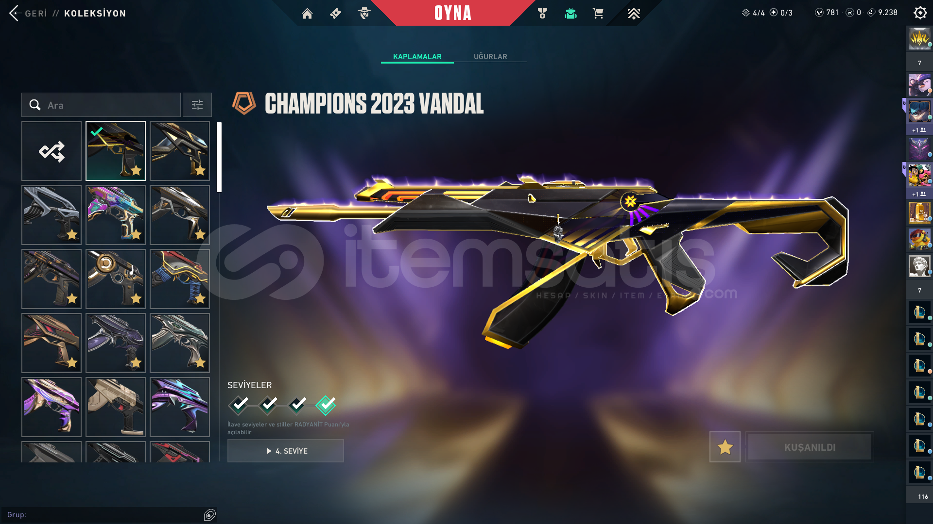 oyunu bıraktığım için satıyorum 75 bin vp yatırılmıştır 6 bin de lol e yatırılmıştır peak rank : immo 2 sıralama Güncel rank : yücelik 1 alana hayırlı uğurlu olsun
