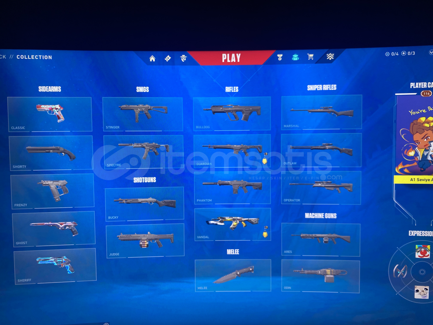 Hesap Gold 1’DirEffffsane Mainlemelik Hesapİçinde Aemondır Vandal,Kartuş Sheriff,Ecelin Isırığı Ghost,Solarex Sheriff,Popstar Klasik MevcutHesap 113 Leveldir