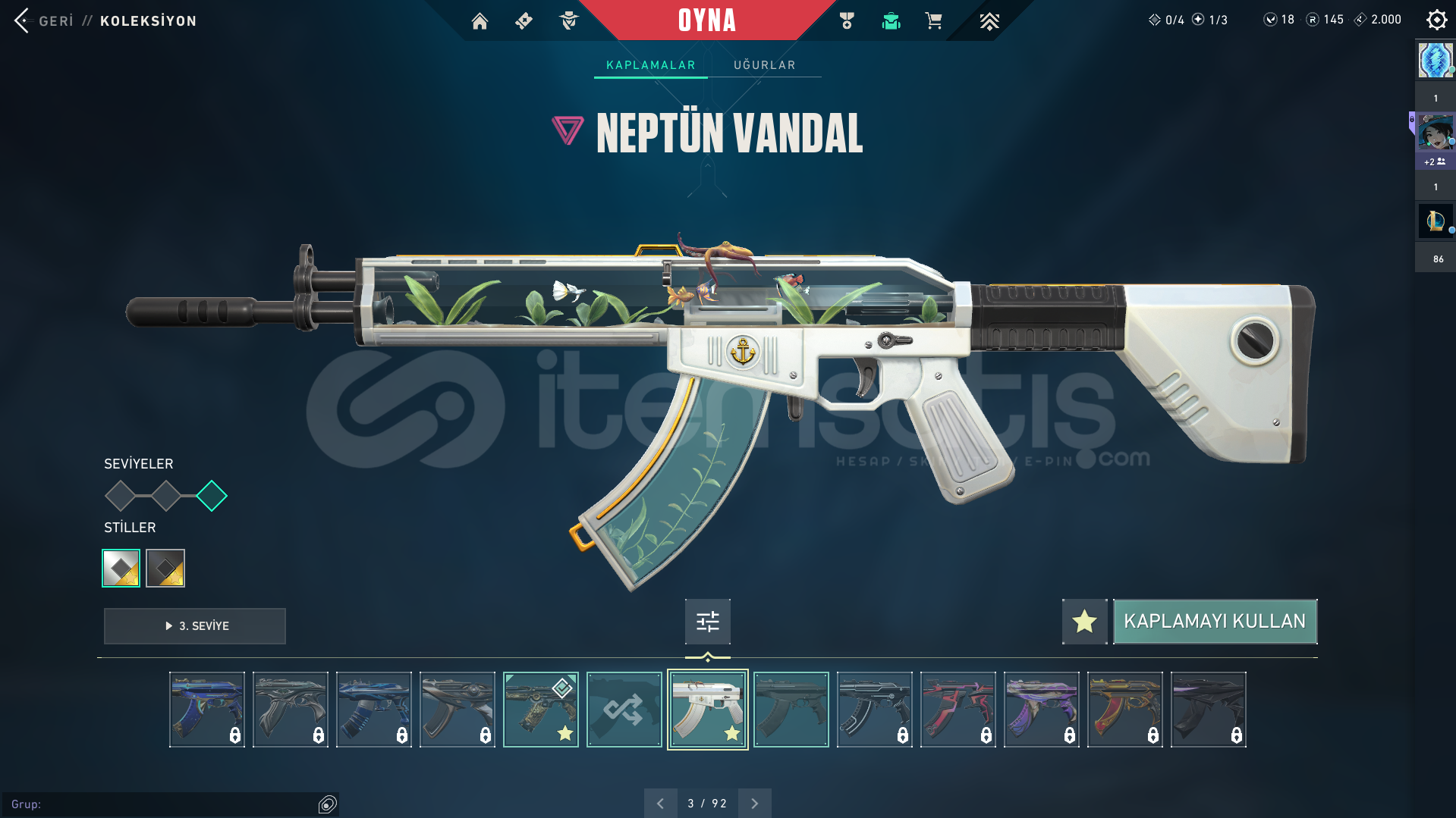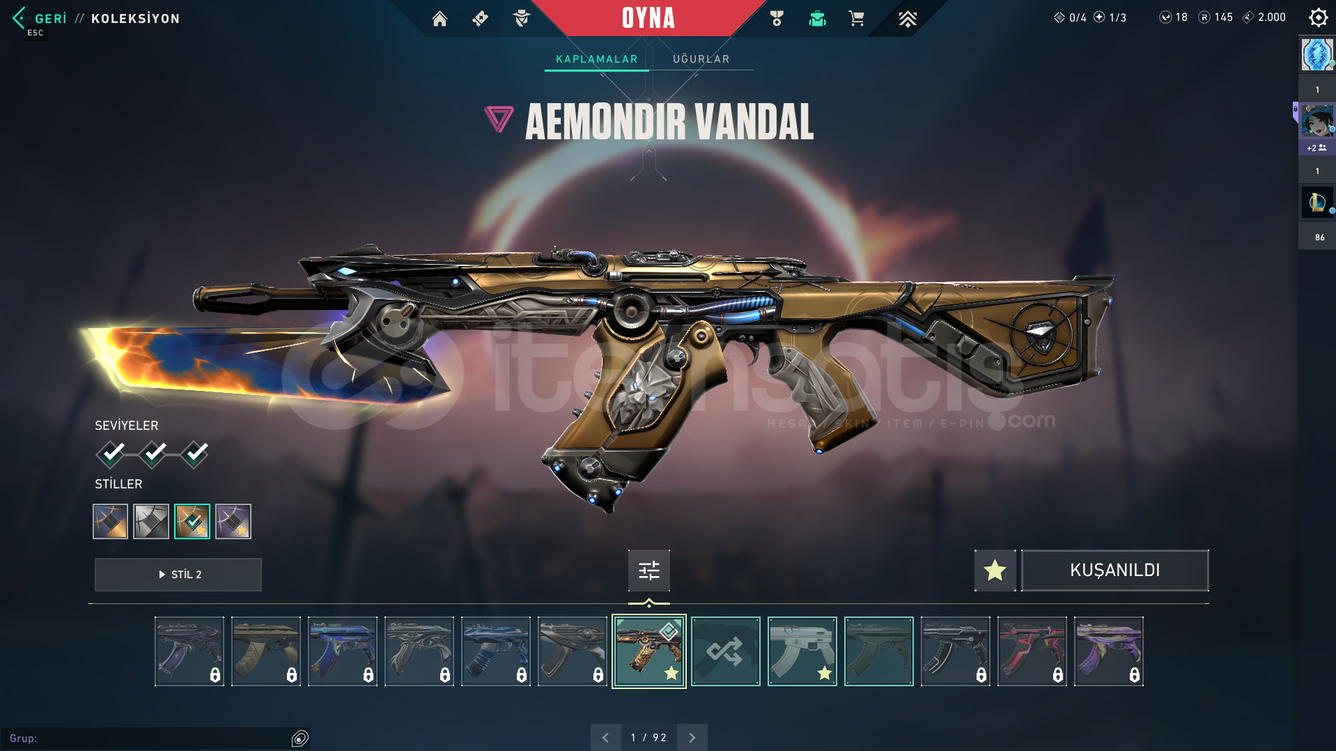 Valorant skinli E-Postalı hesaptırNEPTÜN VANDAL AEMONDIR VANDAL AFET PHANTOM ÖZEL HAREKAT SPECTRE YERÇEKİMSEL NÖROATEŞLEYİCİ CLASSİC BULUNAN HESAPTIR.Rank: GOLD 1Sunucu: TRMağaza: EUMailli hesaptır bilgileri size devredilmektedir, mevcut bilgileri kendi bilgileriniz ile değiştirebilirsiniz.Ürünler fotoğraftakiler ile bire bir aynı hesaptır, farklı hesap değildir