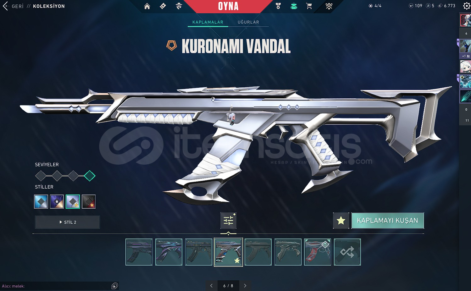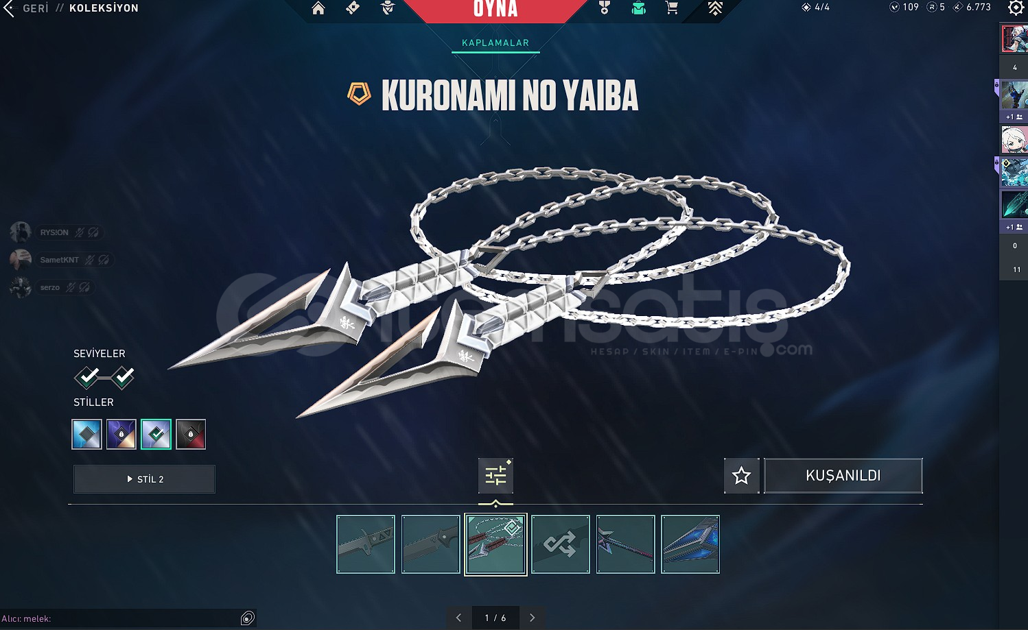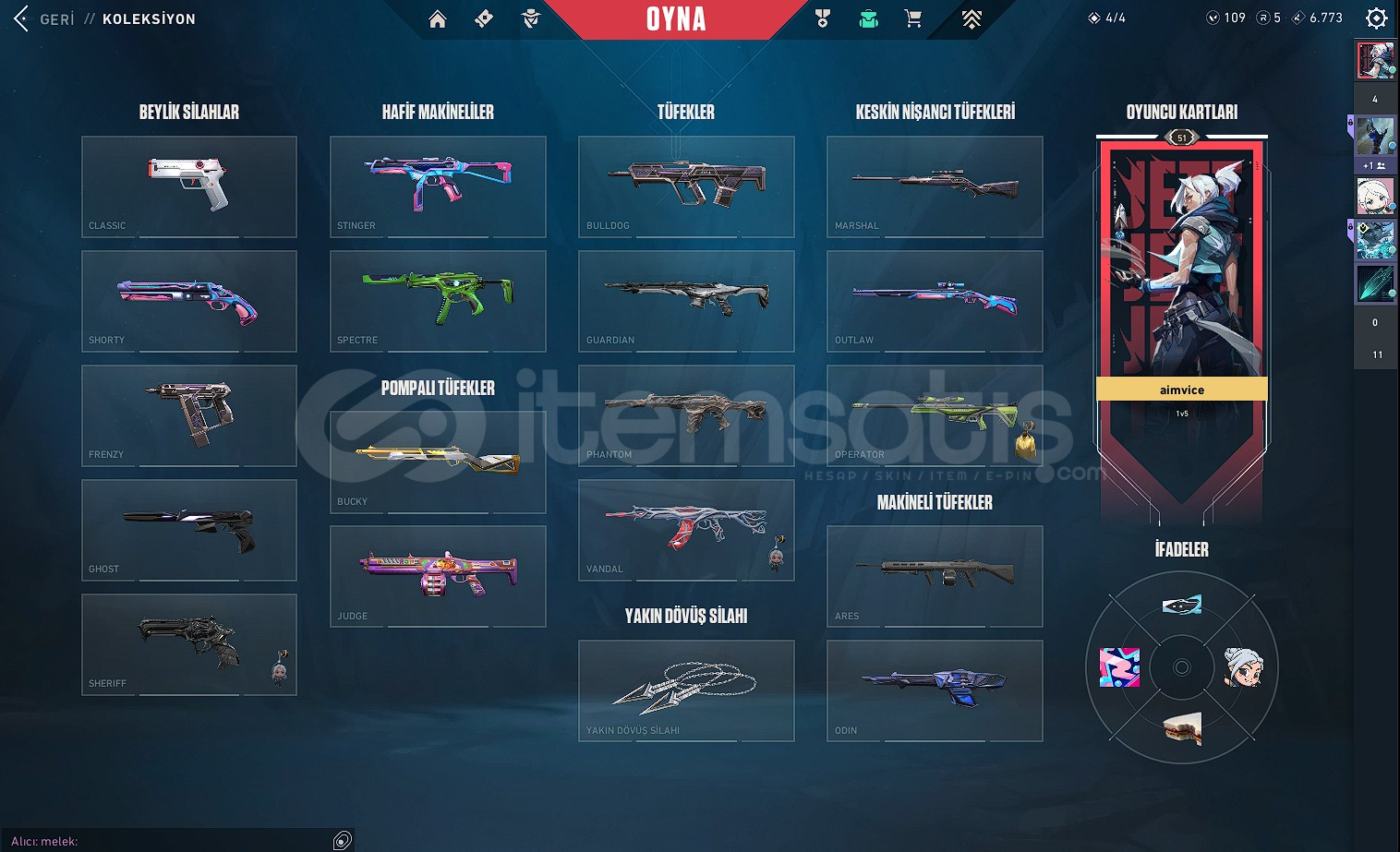 ENVANTERİN İÇİNDEKİLERKuronami VandalGAIA VandalEX.O VandalKAOS VandalYitik VandalYağmacı SheriffAnomali GhostSpectrum Classicİyon SpectreYağmacı GuardianAsil BuckyRGX OperatorKuronami BıçakUzaylı Avcısı Bıçak-------BATTLE PASS EŞYALARINI SAYMADIMDONATI OLARAKPASTASANDVİÇÖLÜM SANCAĞI VARDIRALICISINA HAYIRLI OLSUN ÖLÜ FİYATTAN SATILIK