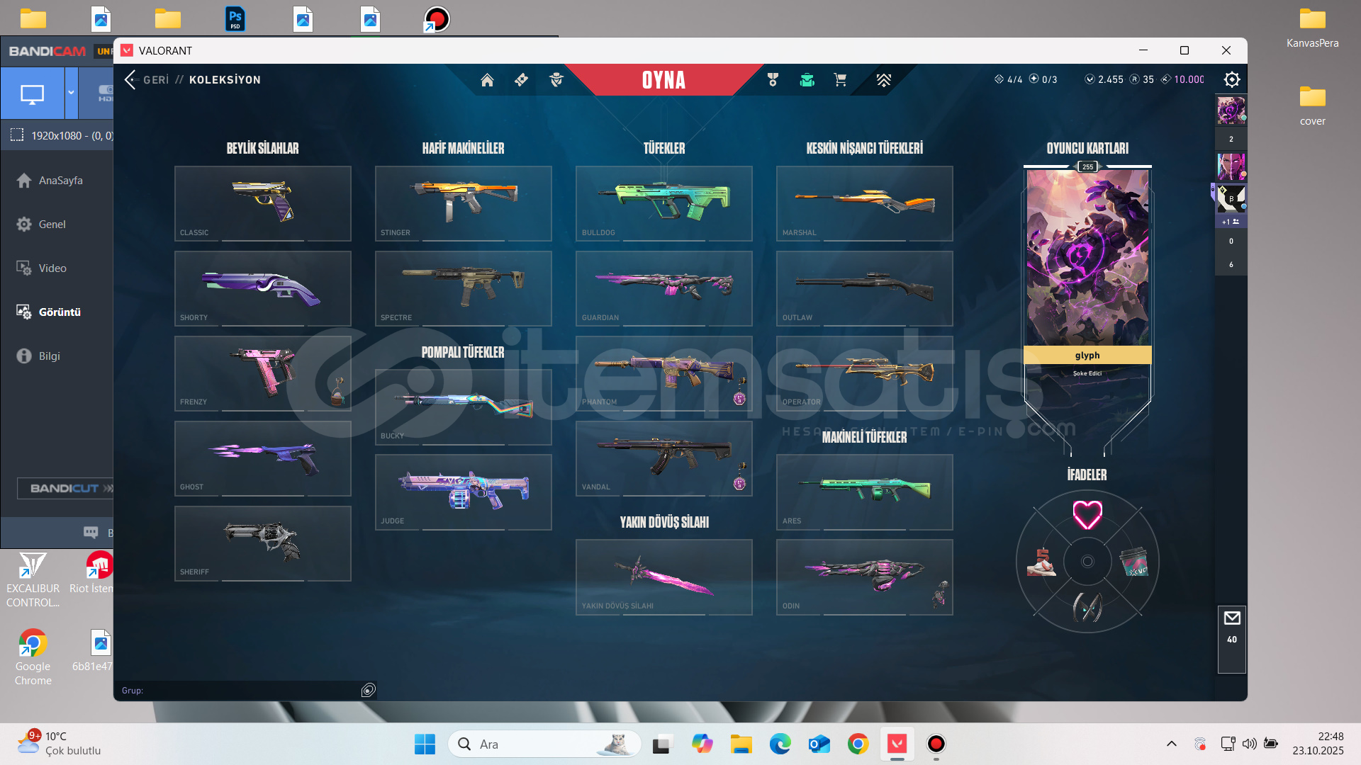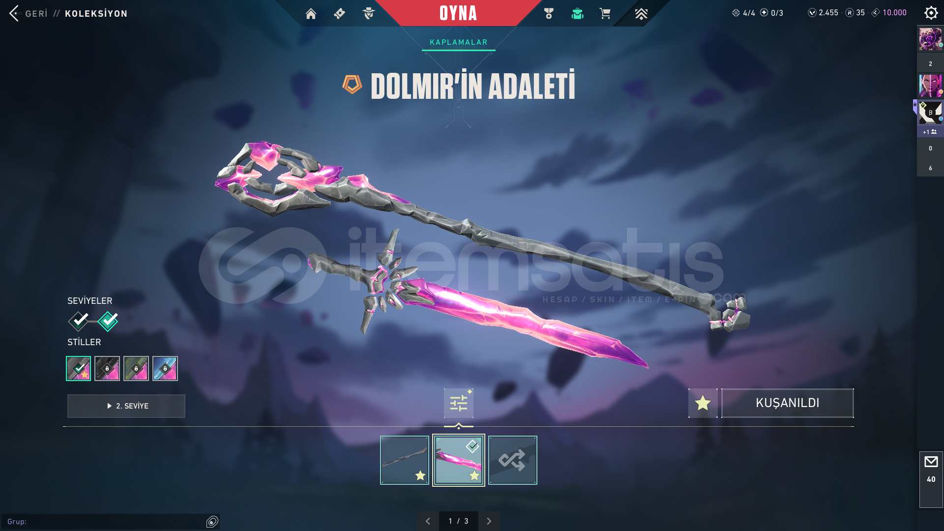Valorant skinli E-Postalı hesaptırEN YÜKSEK DİA 1 GÖRMÜŞ HESAPHESAPTA Kİ SKİNLER ŞUNLARDIRHESAPTA DOLMİRİN İNTİKAMI SETİ FULL ALINMIŞTIR EKSTRA OLARAK 2.455 VP BULUNMAKTADIR!-KAOS VANDAL-KURONAMİ VANDAL-GAİA VANDAL-CESUR YÜREK VANDAL-YILDIZ BELASI VANDAL-DOLMİRİN İNTİKAMI VANDAL-SERİ TETİK PHANTOM-EVRİM ASASI-DOLMİRİN BIÇAĞI-ASİL ODİN-D...