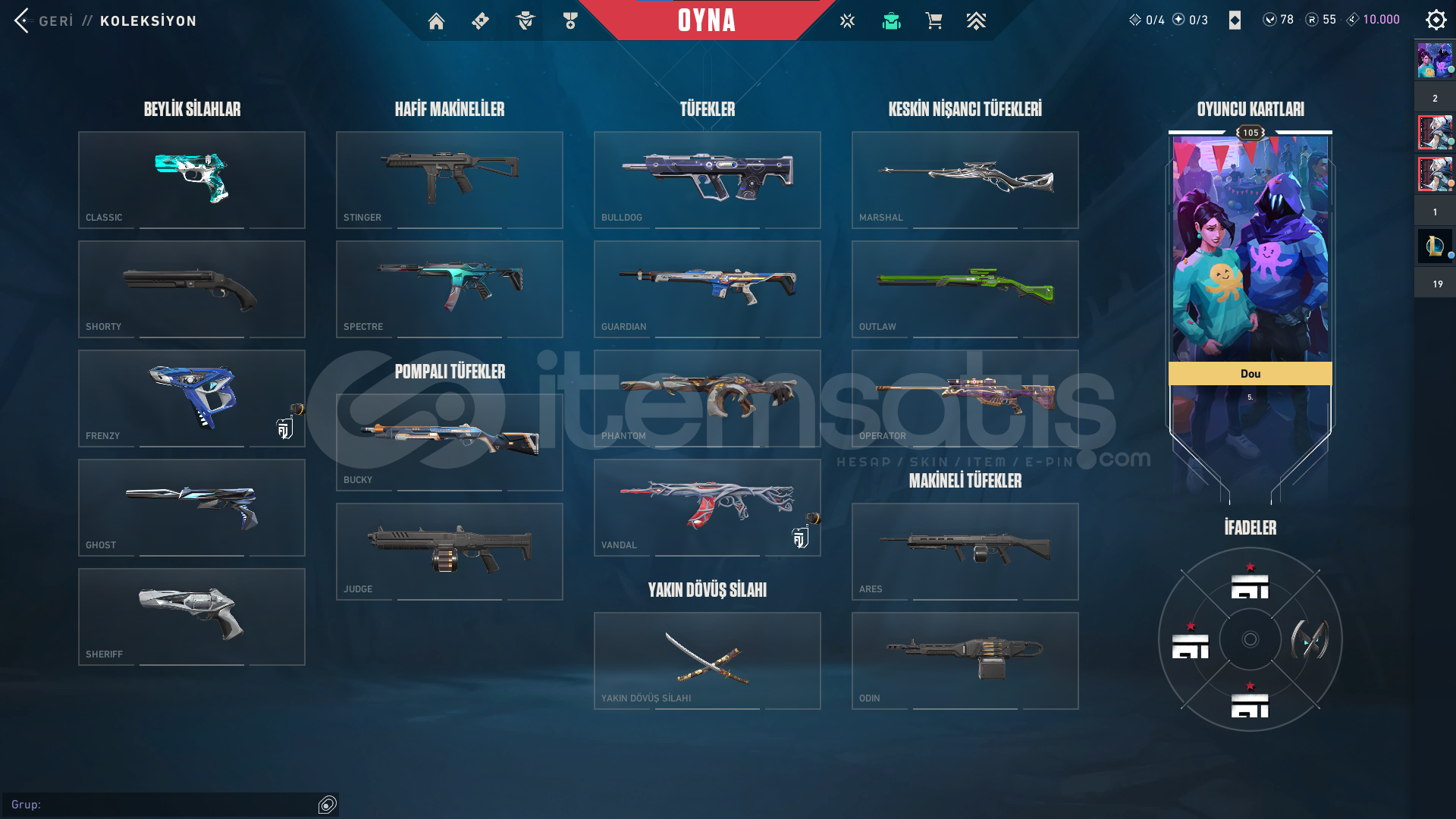 HESAP UYGUN FİYATLIDIR MAİL DEĞİŞİMİ YAPILIR HESAPTAKİ SKİNLER:FUT CLASSİCSOGUK CELİK CLASSİCİYON FRENZYANOMALİ GHOSTİYON SHERİFFASİL SPECTREZİFİRİ PHANTOMGAİA VANDALSAKURA VANDALFATİH MARSHALONİ KATANAFELAKETİN BICAKLARIKARTUS HANCERİ BPKÖKEN HİLAL BICAKSERİ BALTAGO 1. CİLT BICAKUZAY GEÇİDİ BP