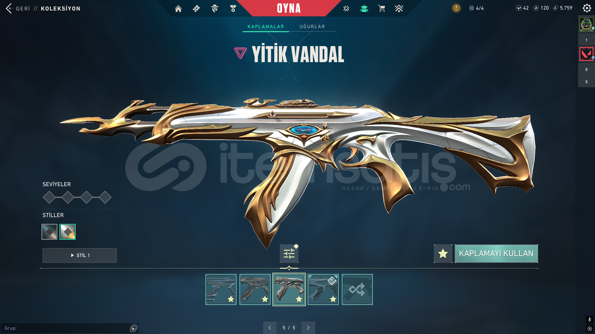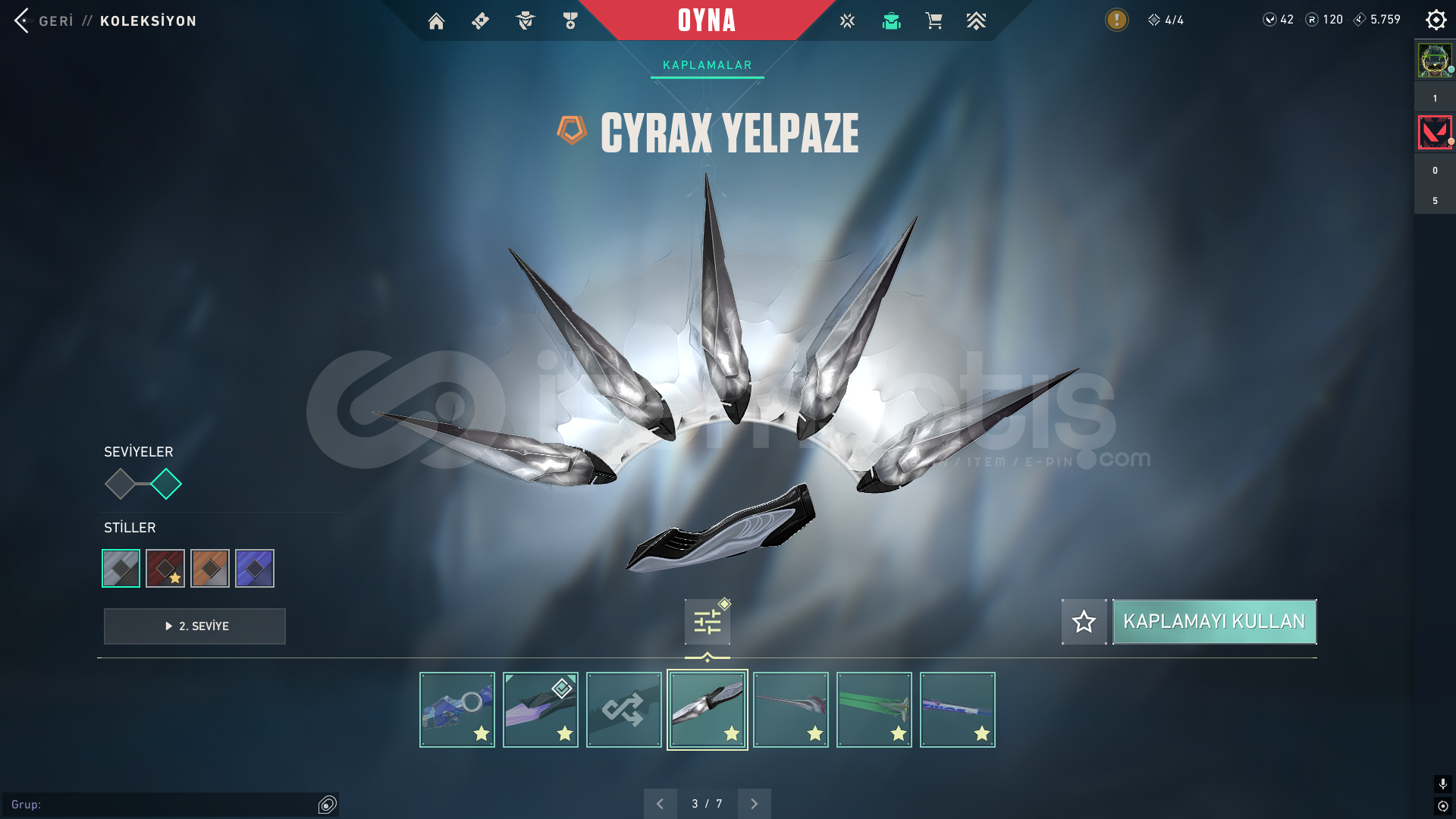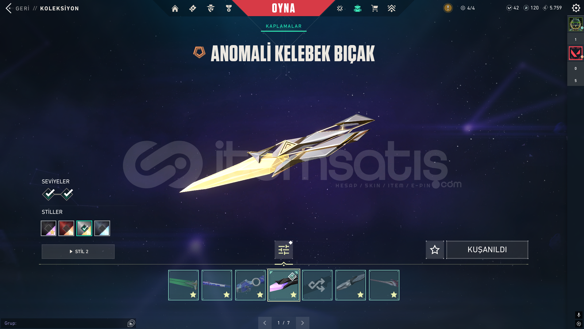 4 5 sezon battlepass açıldı peluş ayı varYağmacı opYağmacı SheriffCyrax setiAnomali bıçakValorant go 1. Cilt bıçakCyrax yelpazesiKuronami VandalUlu pençe VandalYitik VandalCyrax VandalAnomali phantomCampions phantomaktif yüce ranktafatih ghostcyrax ghostİçi dolu mail değişen ömür boyu garanti hesap