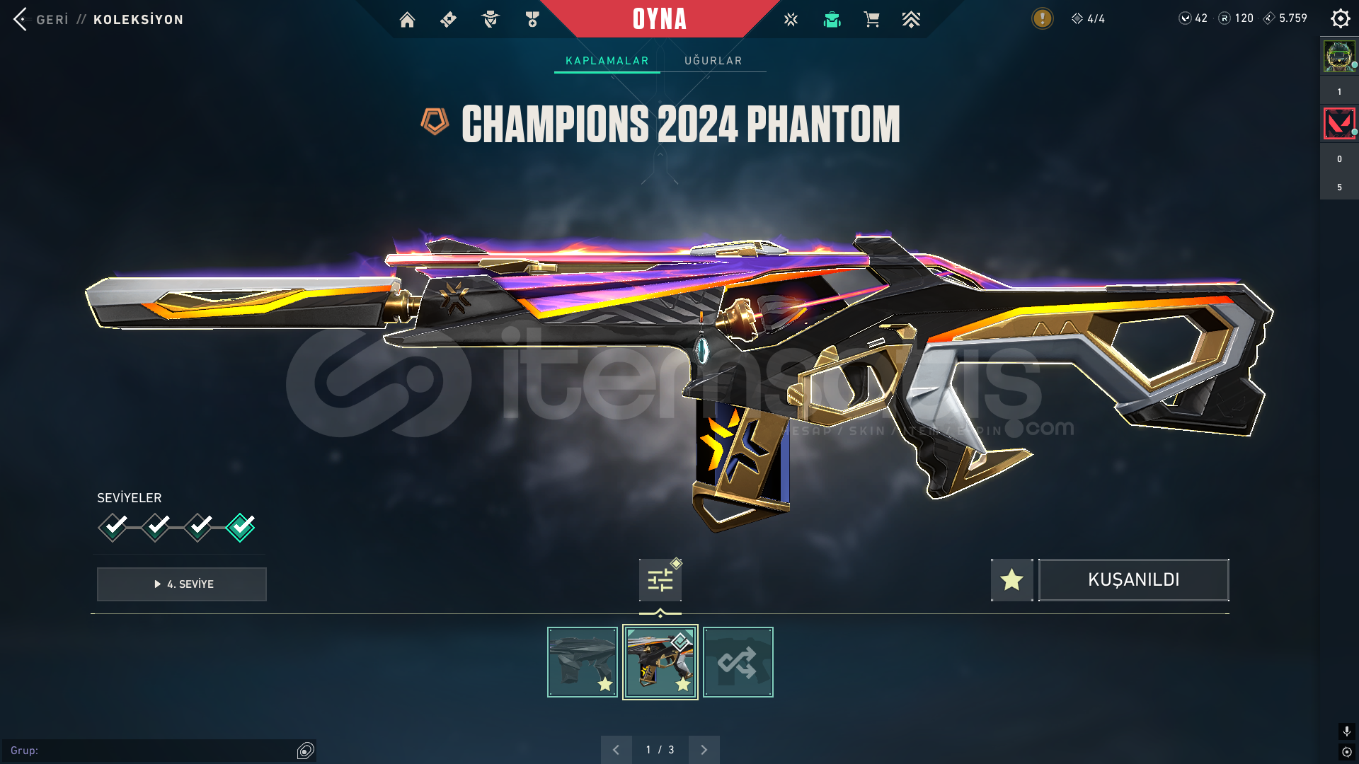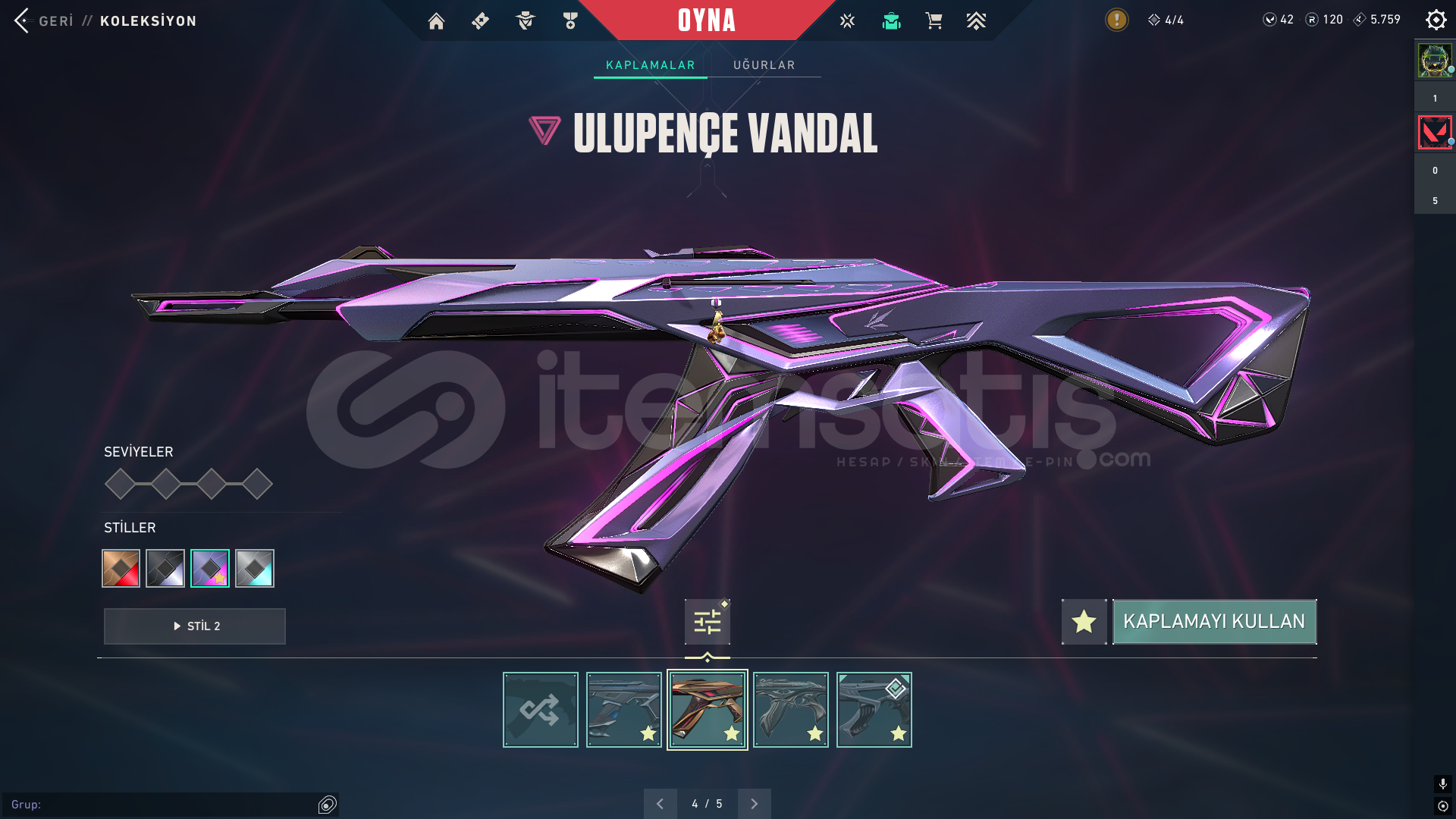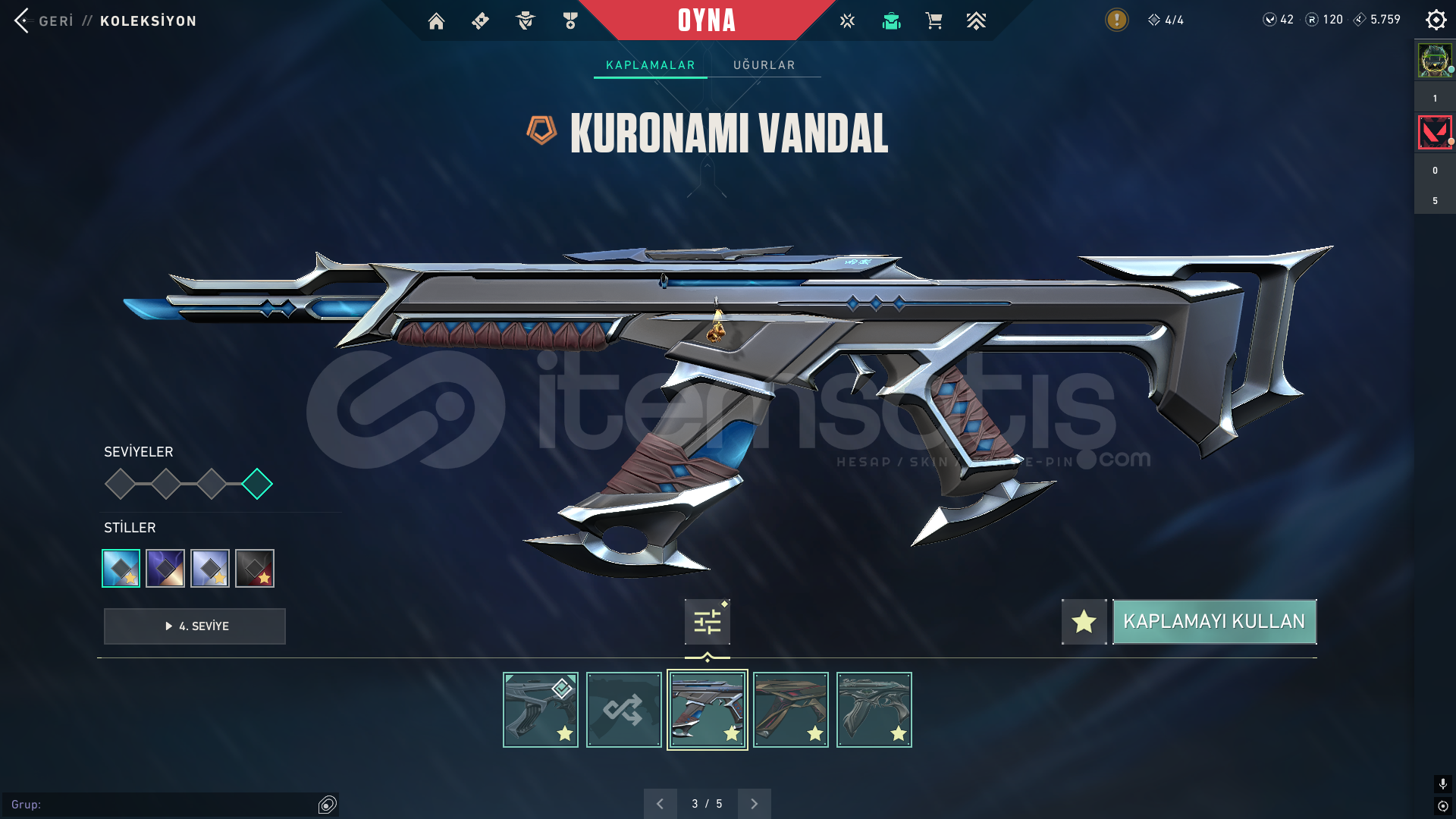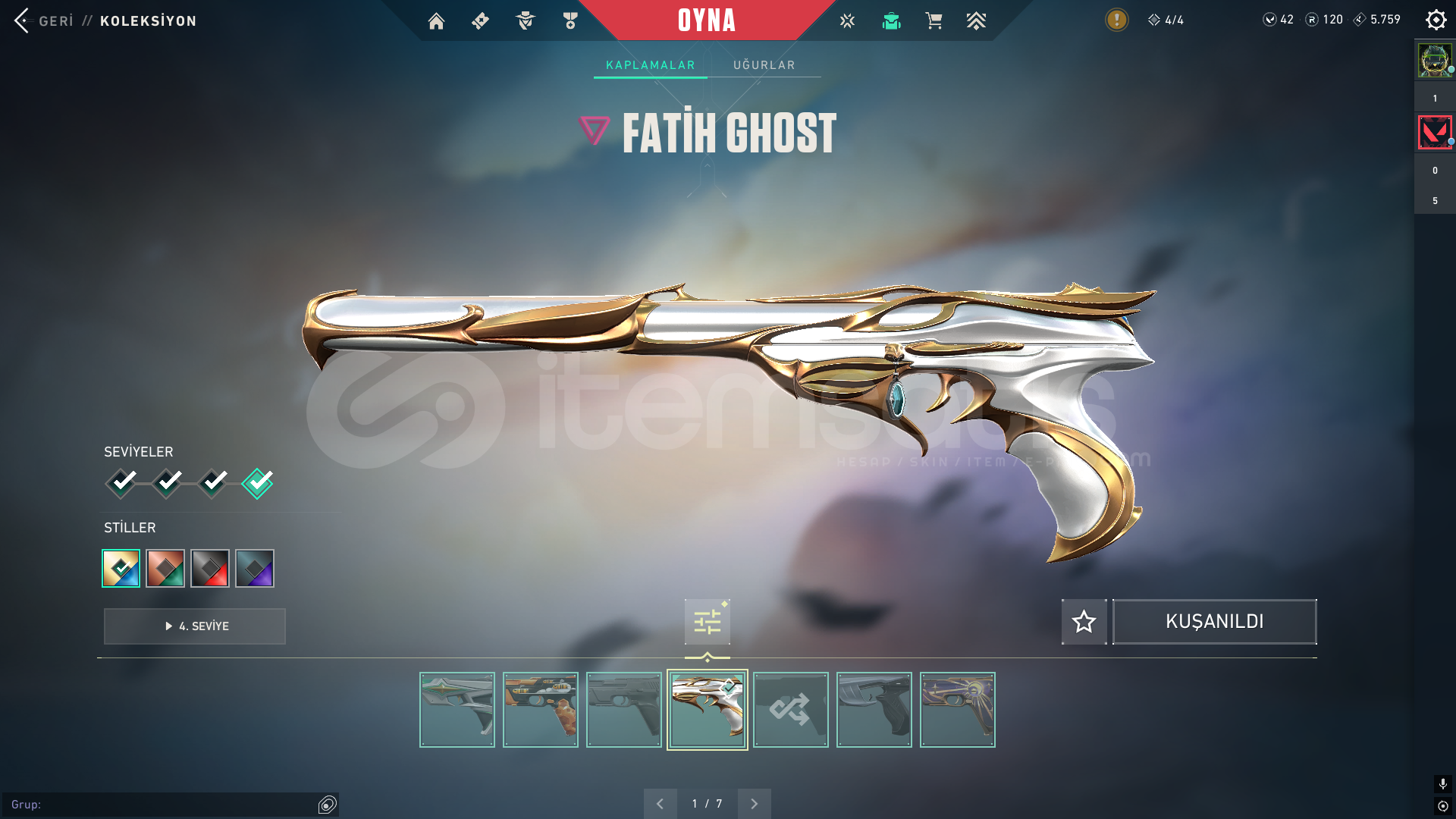 4 5 sezon battlepass açıldı peluş ayı varYağmacı opYağmacı SheriffCyrax setiAnomali bıçakValorant go 1. Cilt bıçakCyrax yelpazesiKuronami VandalUlu pençe VandalYitik VandalCyrax VandalAnomali phantomCampions phantomaktif yüce ranktafatih ghostcyrax ghostİçi dolu mail değişen ömür boyu garanti hesap