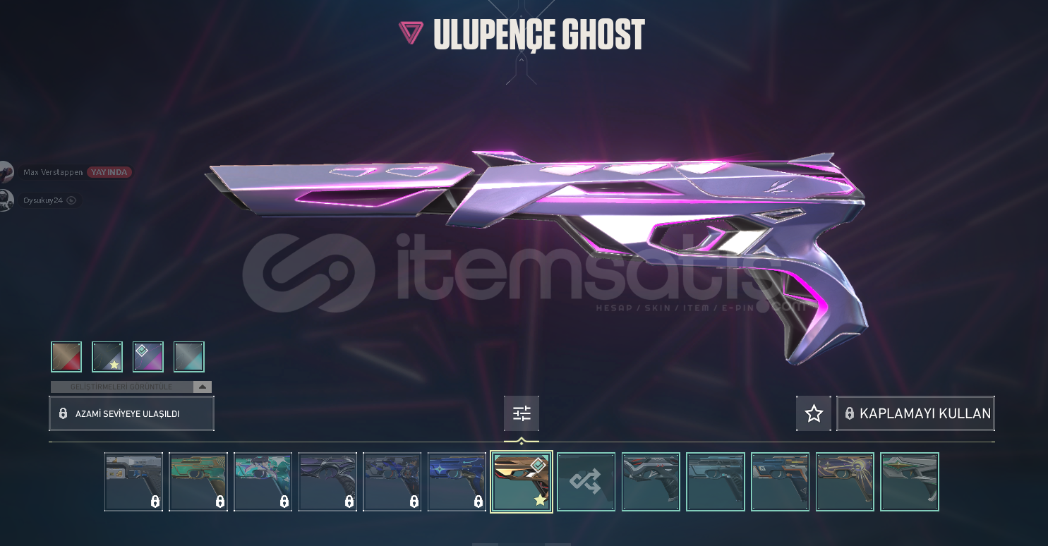 Ulupençe vandal/ghost/bıçakKuronami sheriffKaos operatörChampions 24 settFelaketin kalbi vandalFatih phantom/guardianİkililer Günü setiAsil vandalSoğukçelik vandalYıldız Belası vandalÖzel harekat phantomve haricinde 5 battlepass açıktır(aktif pass dahil)2 SEZON YÜCELİK 2, AKTİF SEZON YÜCELİK 1