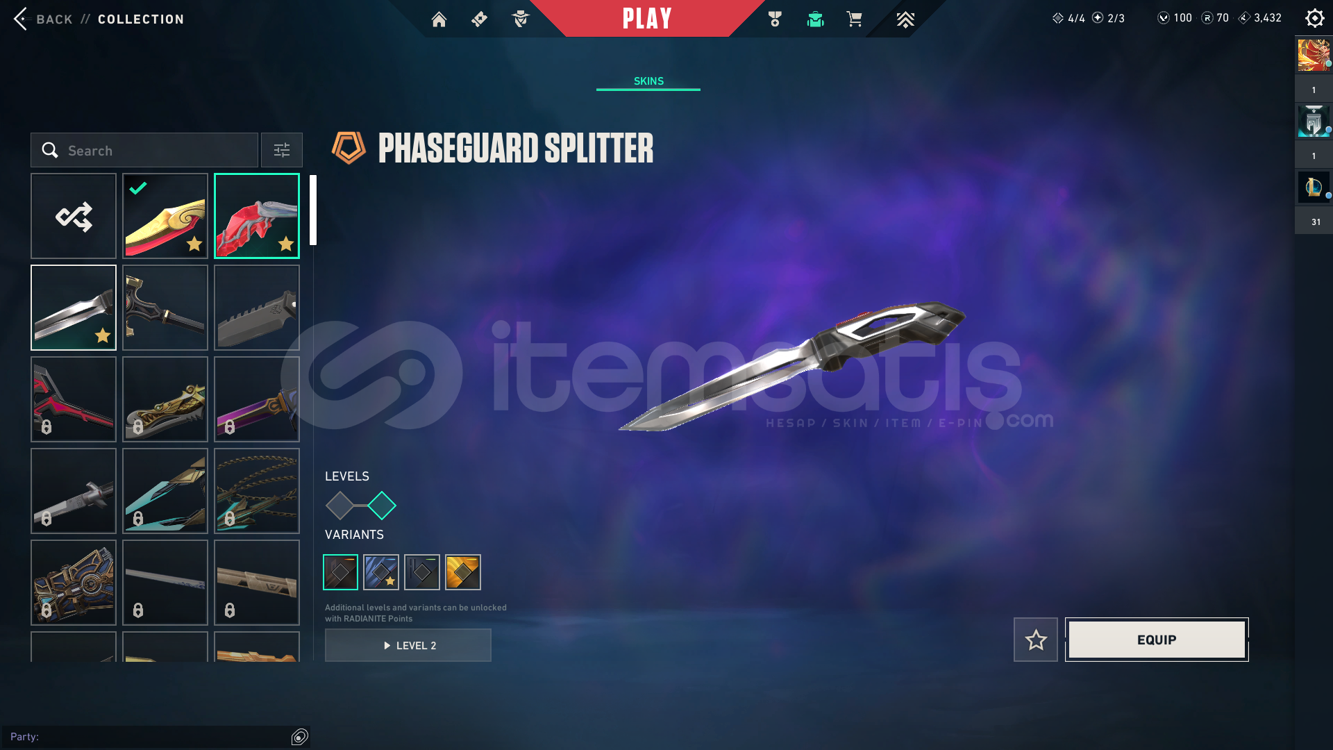 selamlar hesabı satma sebebim artık valo oynamayacağım yks yaklaşıyor derslerime ağırlık göstereceğim. birazda paraya ihtiyacım var bu yüzden satıyorum. Hesapta kuronomi vandal gaia vandal phaseguard vandal + 1750 vplik bi vandal daha var ismini unuttum. Phantomlarda iyon phantom protokol phantom var ghostlarda yağmacı ve phaseguard var. EN ÖNEMLİSİ HESAPTA ALAZ YELPAZE VAR. Oyuna yalnızca bir kere gelen ve en pahalı bıçaklardan birisi kendisi. Dediğim gibi phaseguard setide var hesapta. HESABIN İLK MAİLİNİ AKTİF OLARAK KİŞİSEL KULLANDIĞIM İÇİN VEREMİYORUM ANCAK;