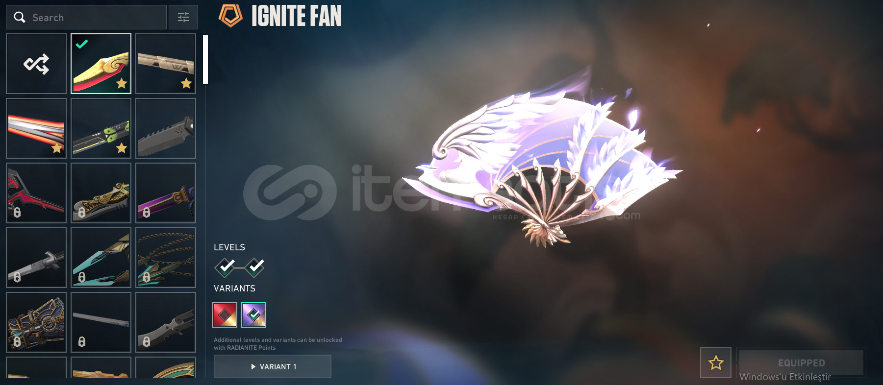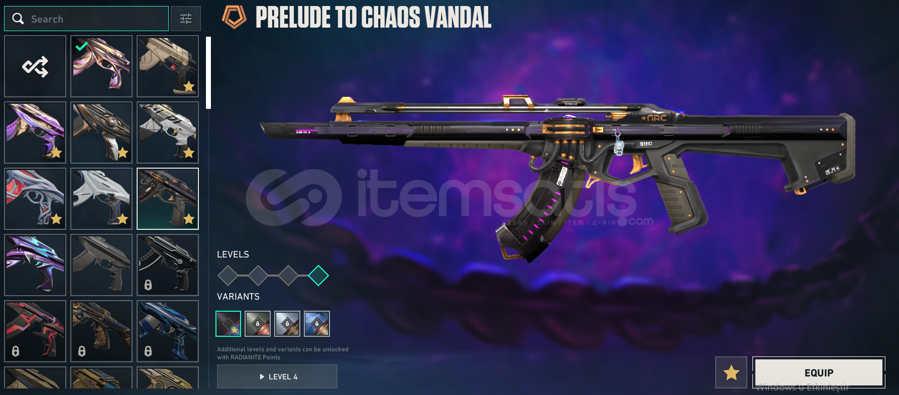 İçerisindeki skinler:Alaz ghostKaos sherrifRadiant phantomÖzel harekat phantomZifiri phantomAsil phantomSır çiçeği vandalKaos vandalZamanın ötesi vandalGaia vandalEgo vandalİyon vandalSır çiçeği outlawCesur yürek operatörRgx kelebekAlaz yelpaze