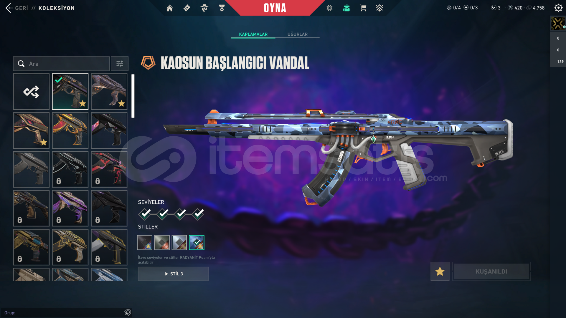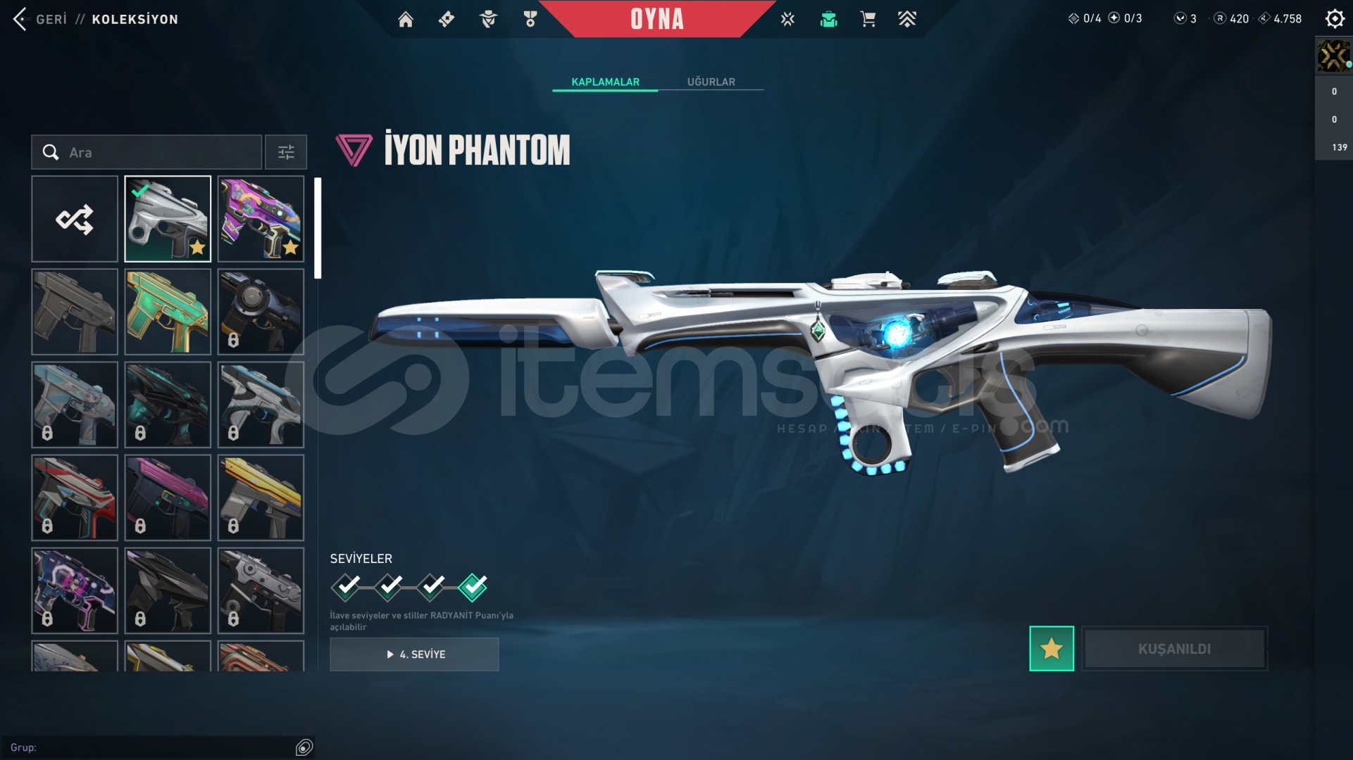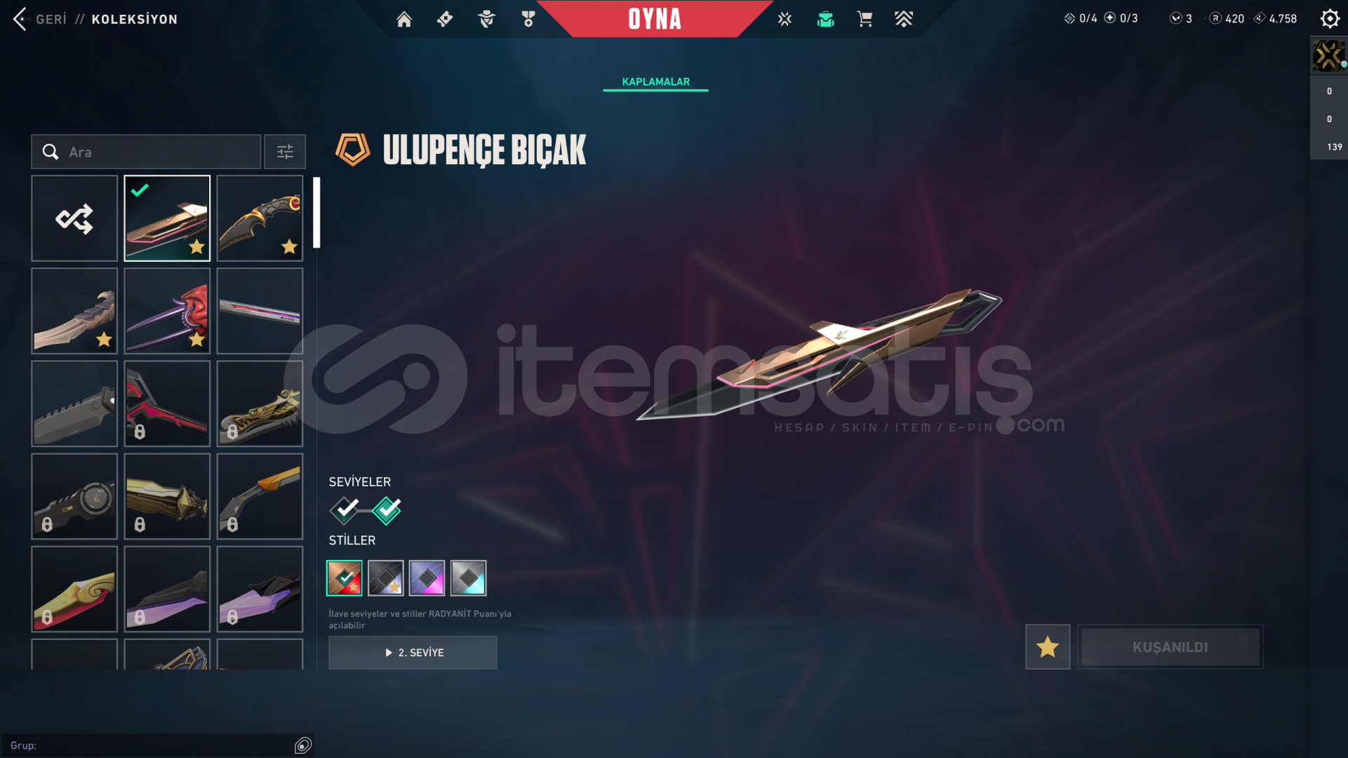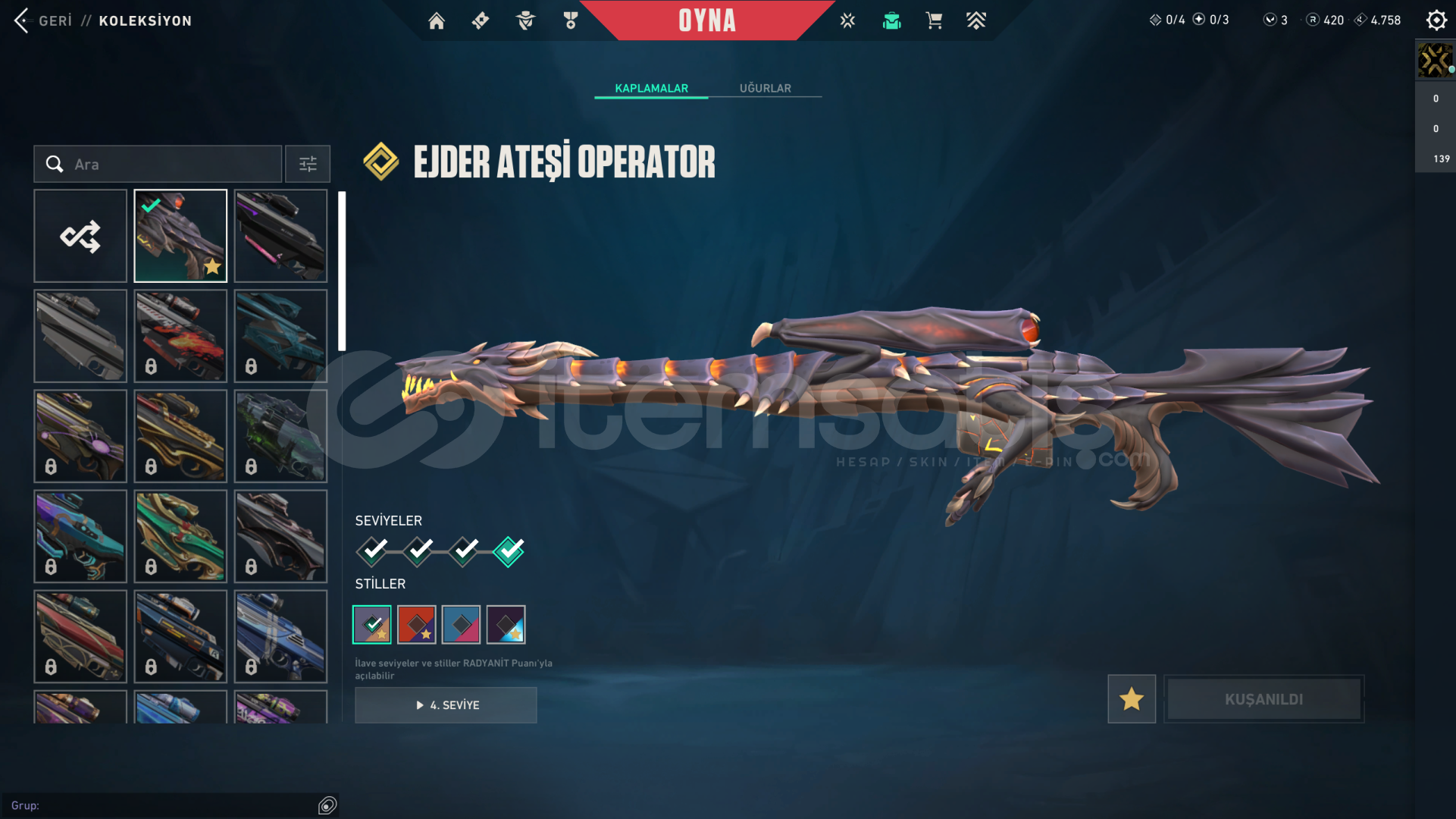 • Hesabın Envanter Değeri 31.025 VP'dir, Ve Ekstradan Harcanabilir 3 VP Ve 420 Radyanit Mevcuttur.