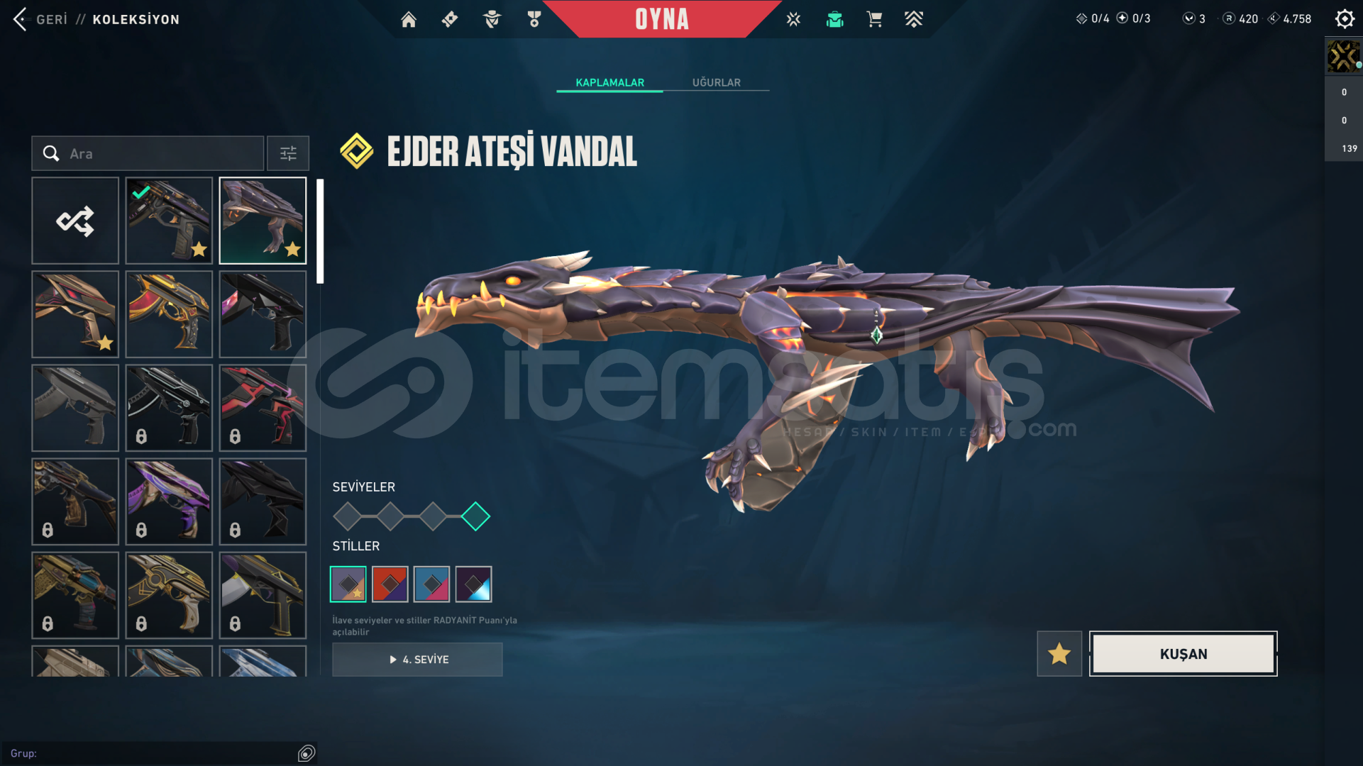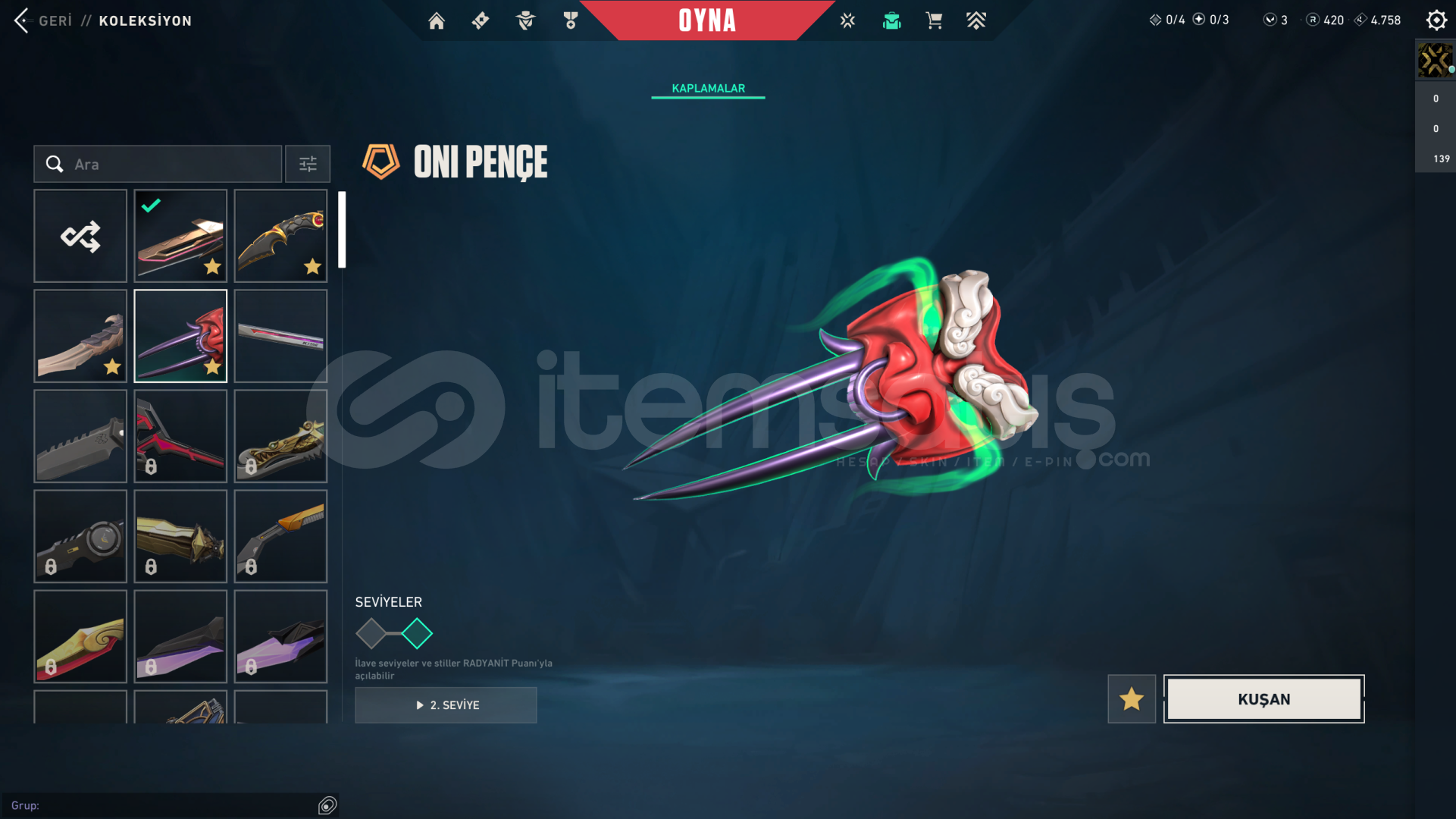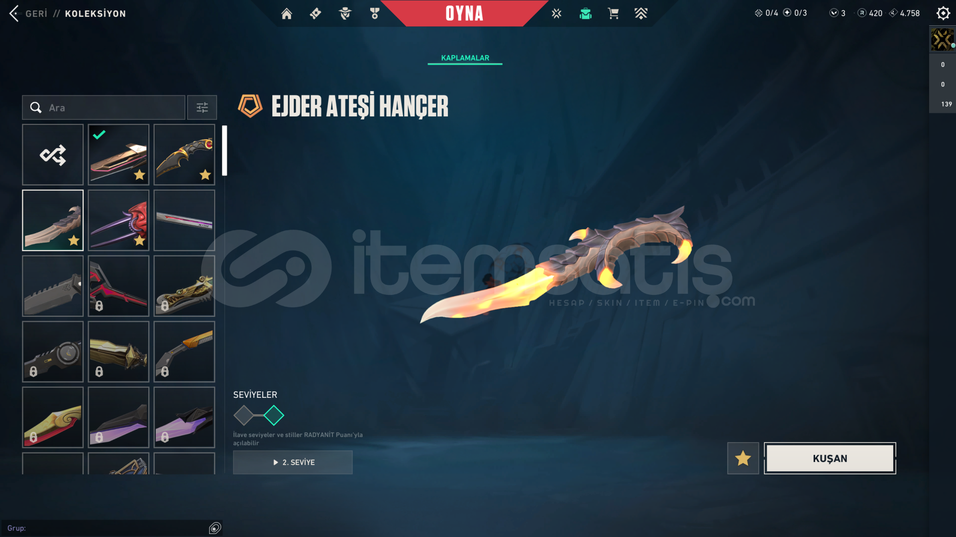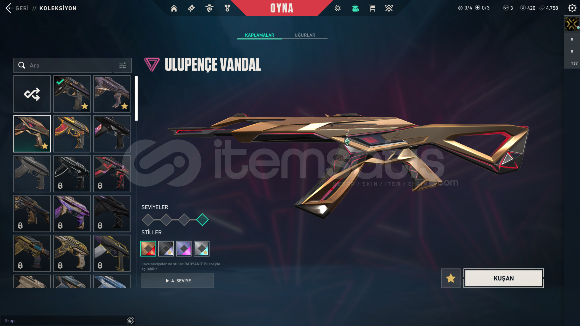 • Hesabın Envanter Değeri 31.025 VP'dir, Ve Ekstradan Harcanabilir 3 VP Ve 420 Radyanit Mevcuttur.