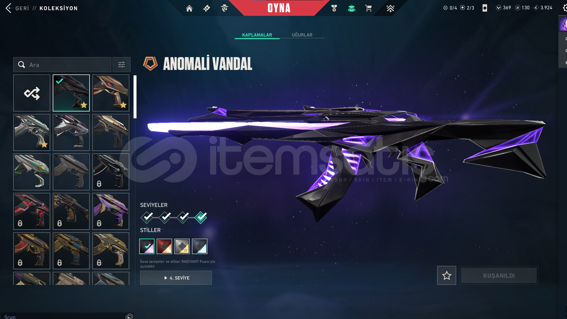 Merhabalar Sattıgım Bu Hesap Tamamen Bana Aittirİcindeki SkinlerAnomali VandalAnomali GhostAnomali Kelebek BicakSpectrum ClassicUlupençe VandalYitik Vandalİyon SheriffOni PhantomSeri Tetik OdinRgx 11Z Pro GuardianAyrıyeten Battlepass Skinleri BulunmaktadirHesabın Rankı Gold 1 PeaktırHesabın Seviyesi 170Ilk Maille Teslimat Yapılacaktır O Yuzden Kesinlikle Geri ÇekilmezAyrıyeten Hesapta 369 VP Bulunmaktadır