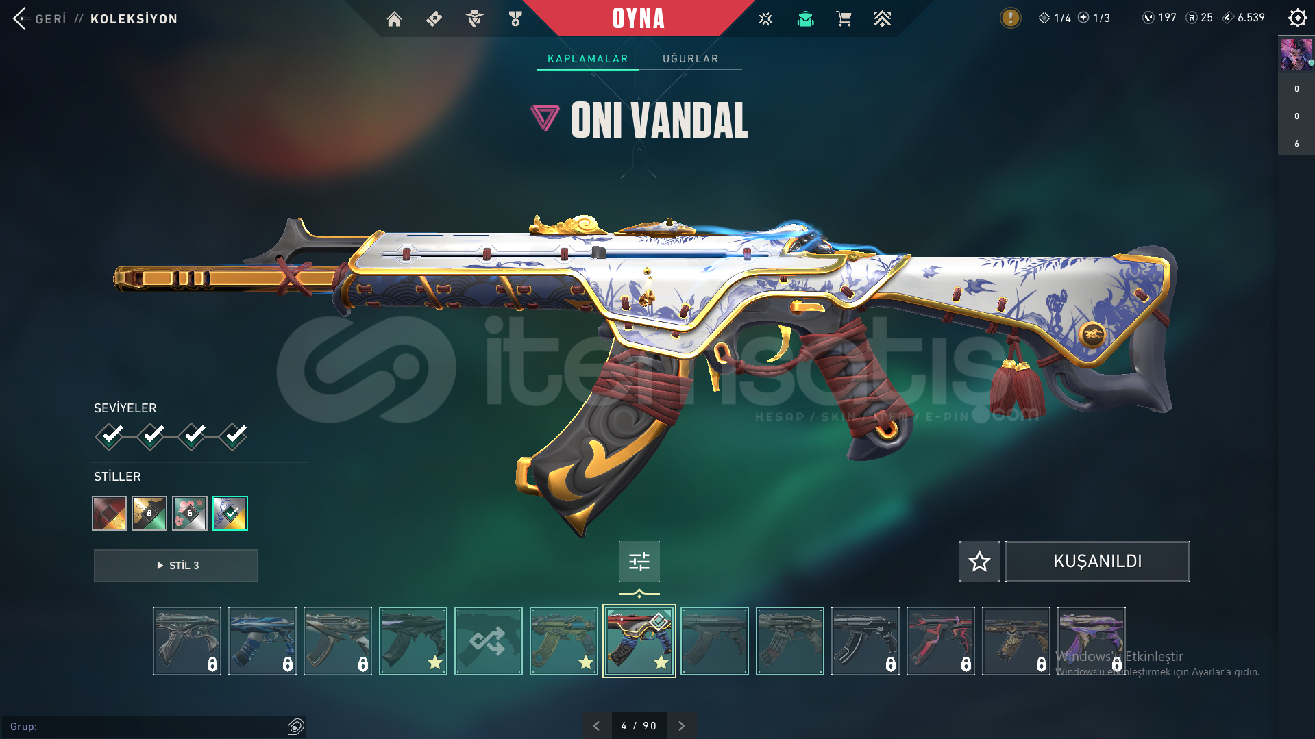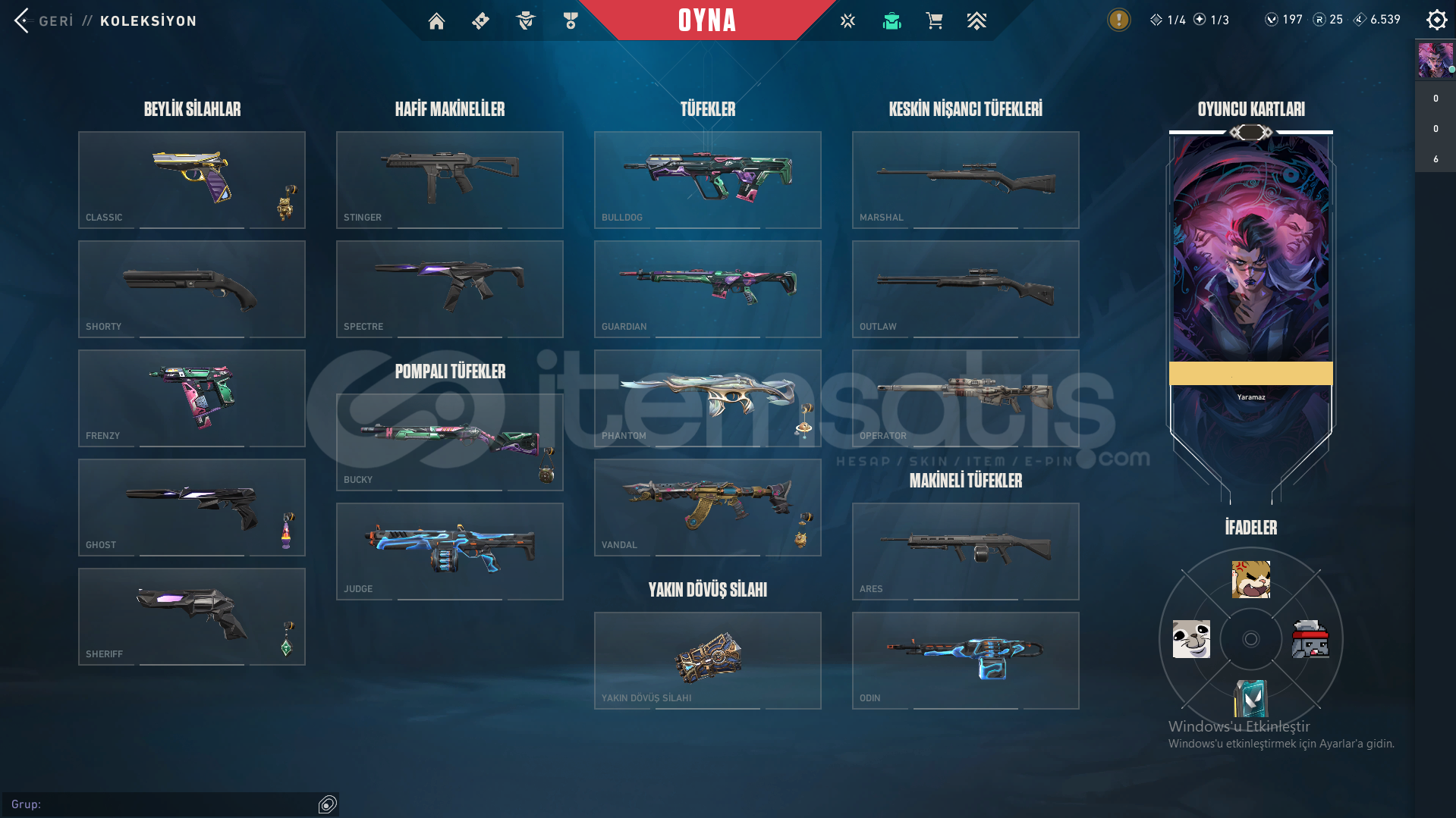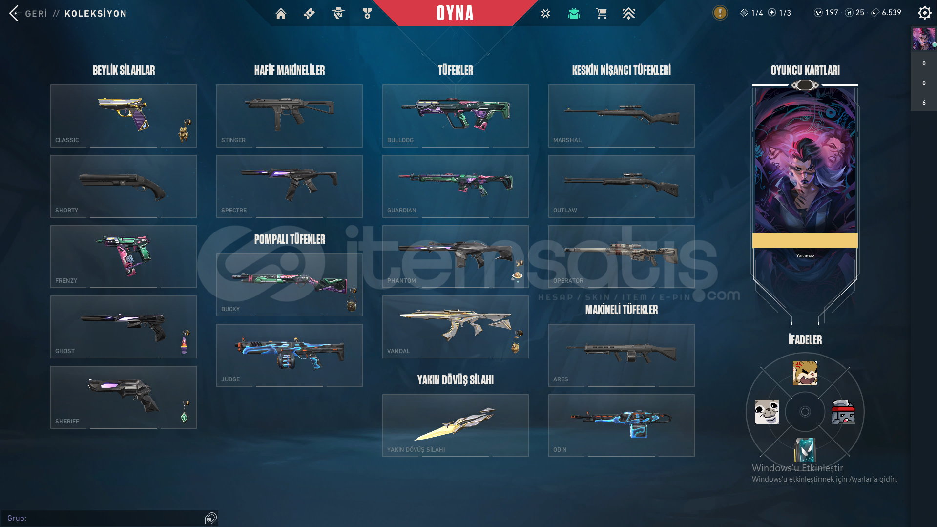 Ve çeşitli battlepassler ek olarak hesabın İçerisinde 197 VP Bulunmaktadır.
