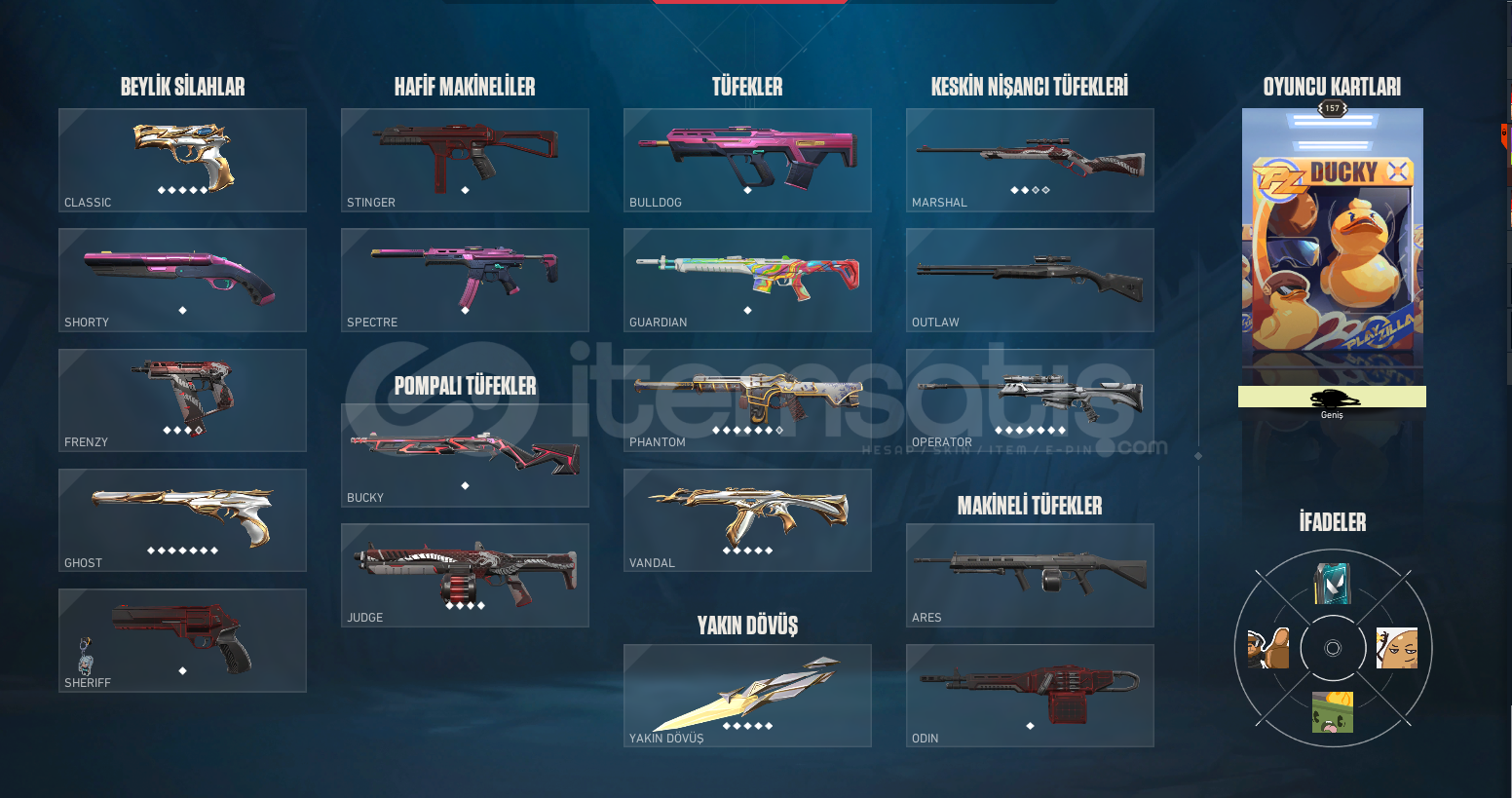 Merhaba, hesabı üzerinize devir edeceğim ilk maili şahsi mailim olduğu için herhangi bir problem çıkmaz.İçerik:Bıçak: Anomali kelebek, Valorant Cilt 1 (jett kunai), Delipop Hançer.Vandal: Gaia Vandal, Delipop Vandal, Yitik Vandal.Phantom: Afet Phantom, Oni PhantomOperatör: Yağmacı OperatörClassic: Yitik ClassicGhost: Fatih Ghost