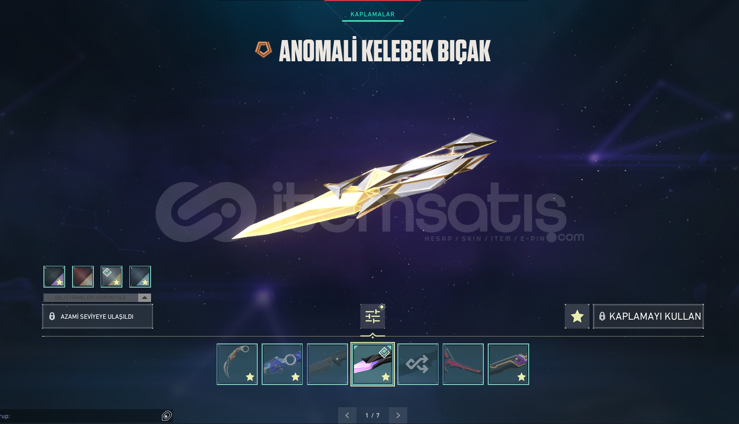 Bıçak: Anomali kelebek, Valorant Cilt 1 (jett kunai), Delipop Hançer.
