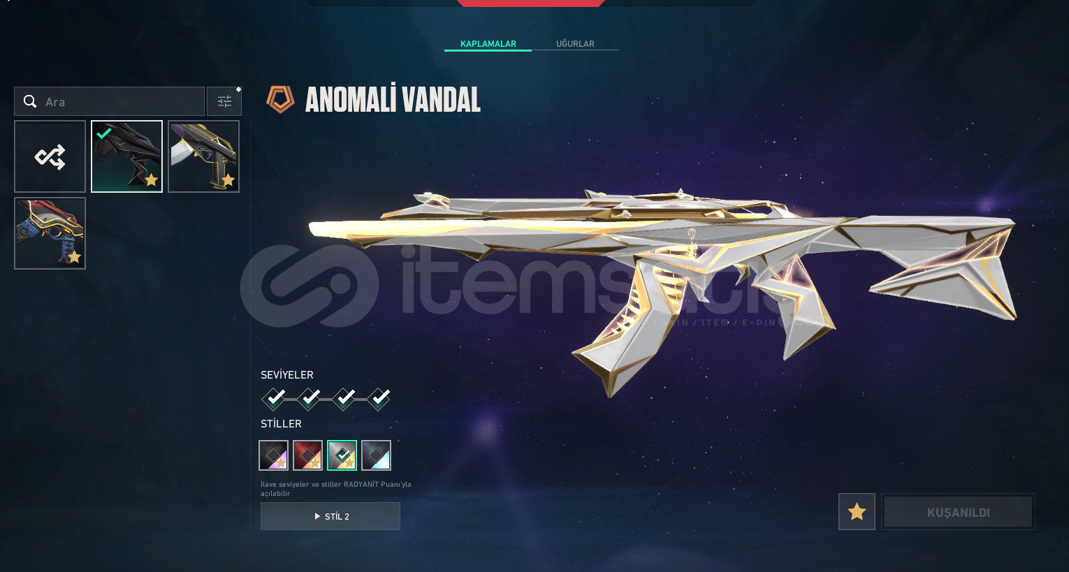 hesapta anomali setinin full hali var oni vandal anomali vandal ve asil vandal var