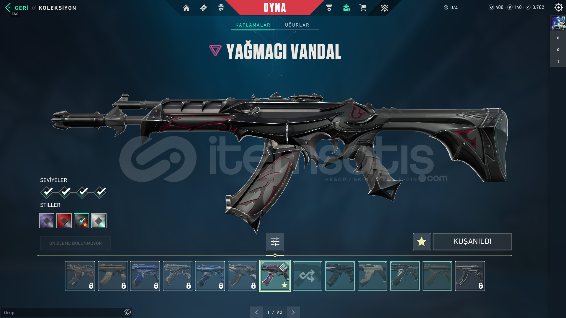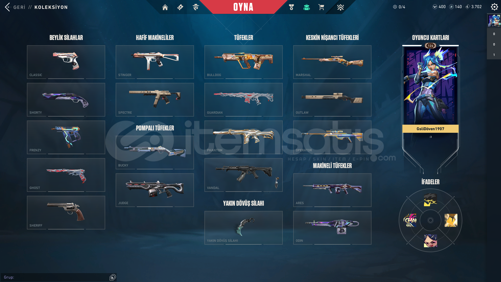 Valorant skinli E-Postalı hesaptırANOMALİ VANDAL YAĞMACI VANDAL FATİH PHANTOM GAİA GUARDİAN SERİ TETİK SHERİFF GAİA GHOST FATİH GHOST YAĞMACI KARAMBİT VAHŞİÇENE BALTARank: GOLD 2Sunucu: TRMağaza: TRMailli hesaptır bilgileri size devredilmektedir, mevcut bilgileri kendi bilgileriniz ile değiştirebilirsiniz.Ürünler fotoğraftakiler ile bire bir aynı hesaptır, farkl...