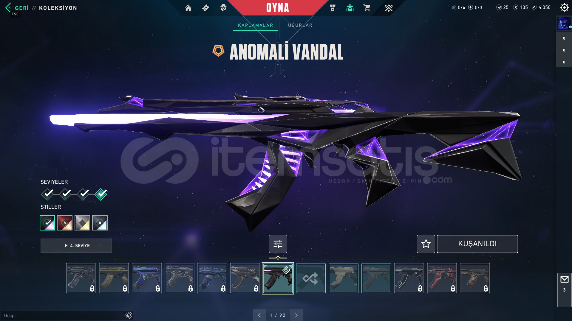 Valorant skinli E-Postalı hesaptırANOMALİ VANDAL BULUNAN HESAPTIR.Rank: DERECESİZSunucu: TRMağaza: EUMailli hesaptır bilgileri size devredilmektedir, mevcut bilgileri kendi bilgileriniz ile değiştirebilirsiniz.Ürünler fotoğraftakiler ile bire bir aynı hesaptır, farklı hesap değildir