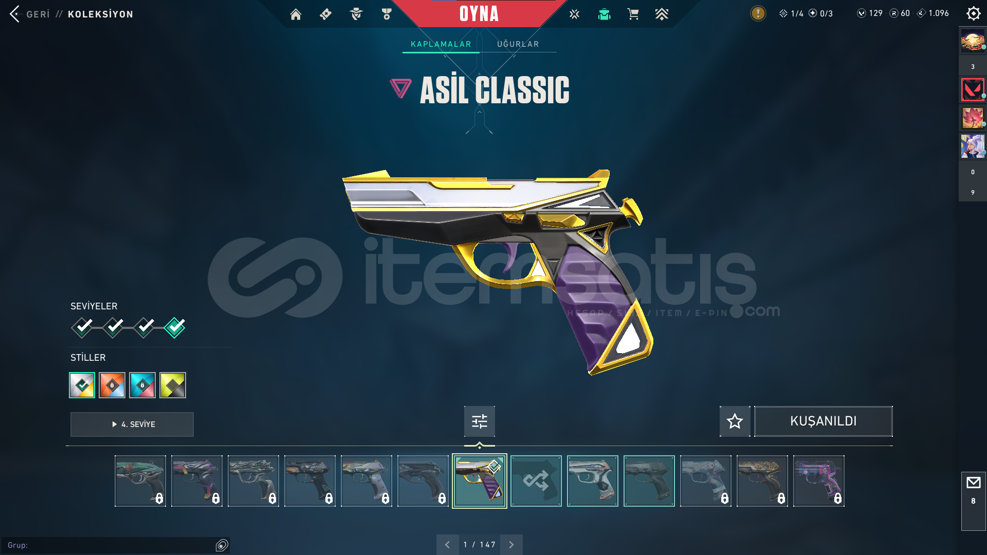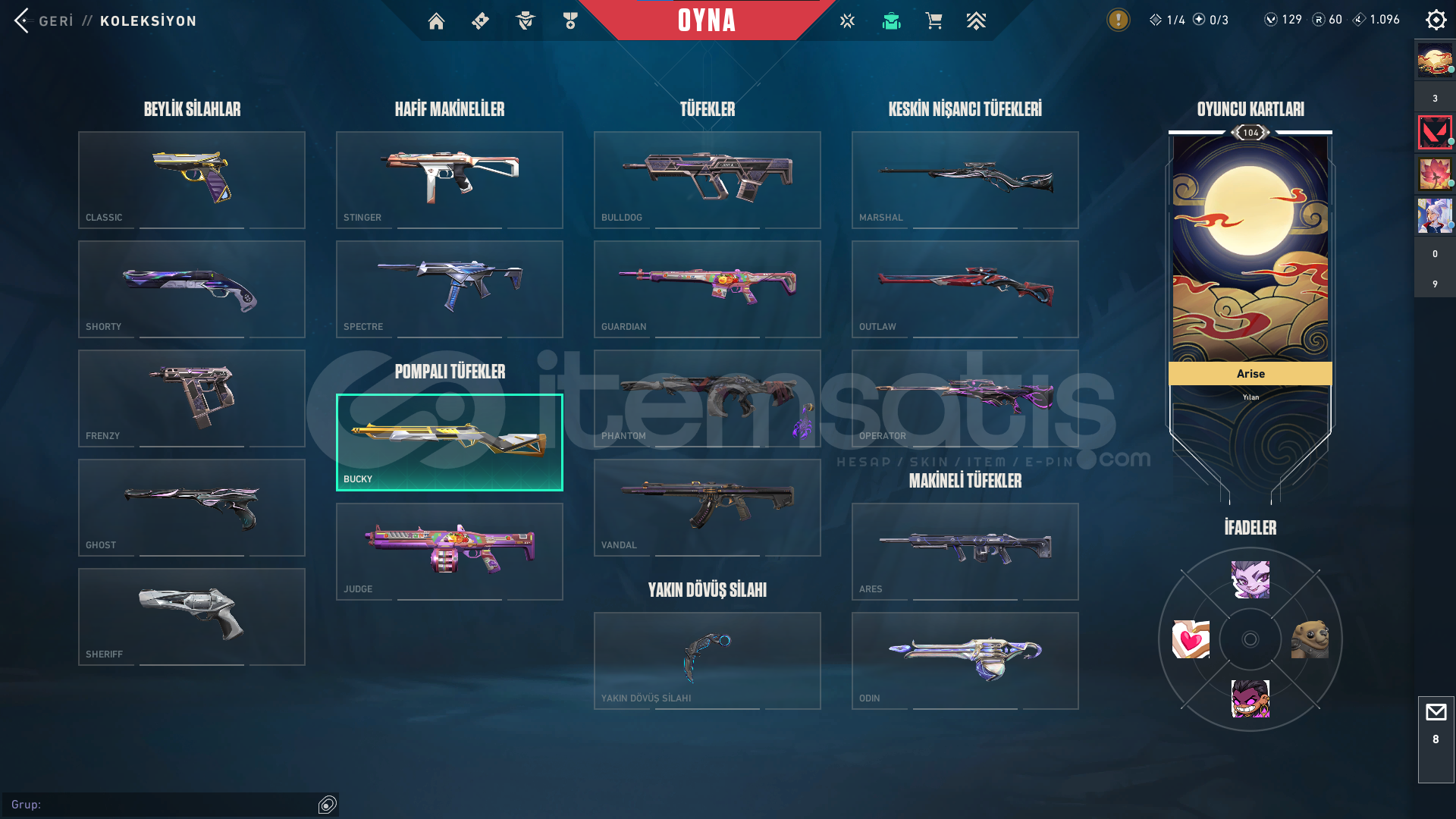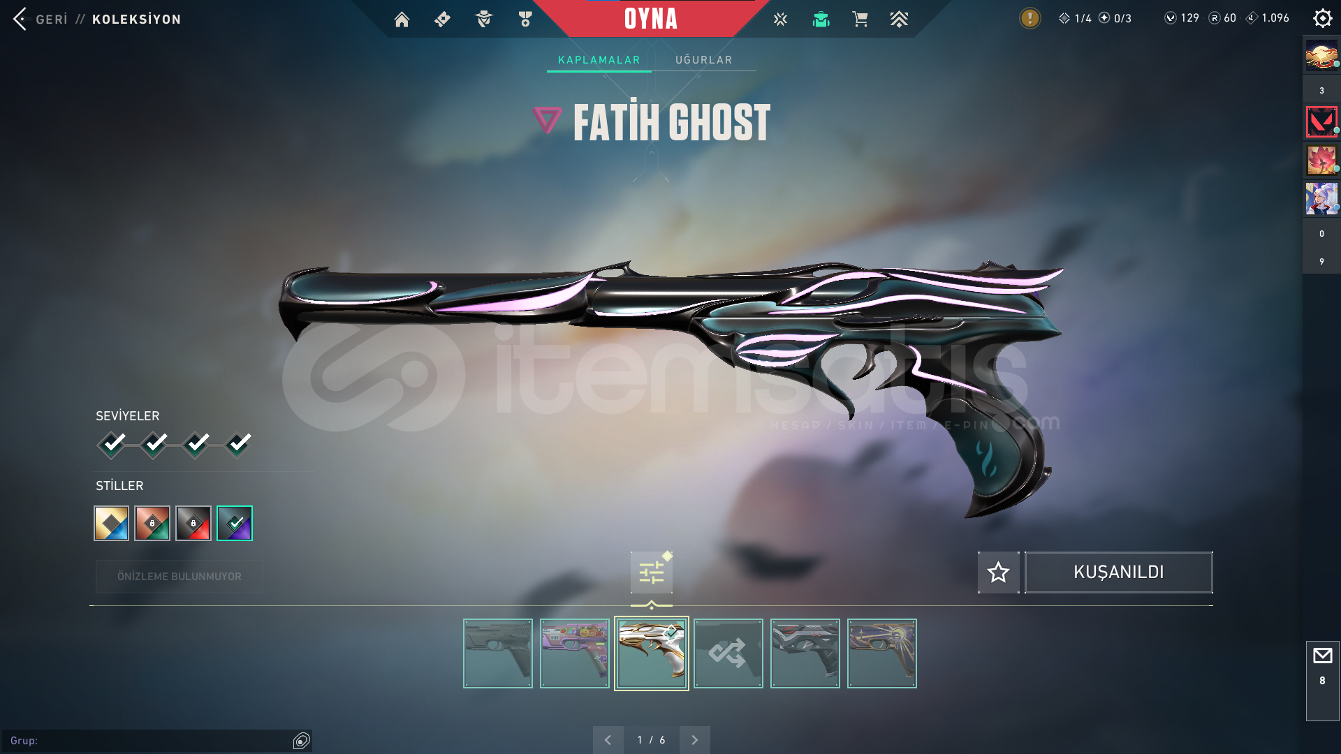 Classic : ASİL Stinger: BATTLE PAS Guardian : BATTLE PAS Outlaw: BATTLE PASshorty: BATTLE PAS Specter : BATTLE PAS Phontom : ZİFİRİ VE ONİ BATTLE PAS OPERATÖR: EVRİM ve BATTLE PASFrenzy: BATTLE PAS Bucky: ASİL Vandal : KAOS- ULUPENÇE -FAZ KORUYUCU BATTLE PAS ARES : BATTLE PASGhost: FATİH Judgde : BATTLE PAS BIÇAK : RGX Karambit- UZaylı Avcısı- BATTLE PAS Odin: EVORİ ve BATTLE PASsherif: İYON Bul Dog : BATTLE PAS ...