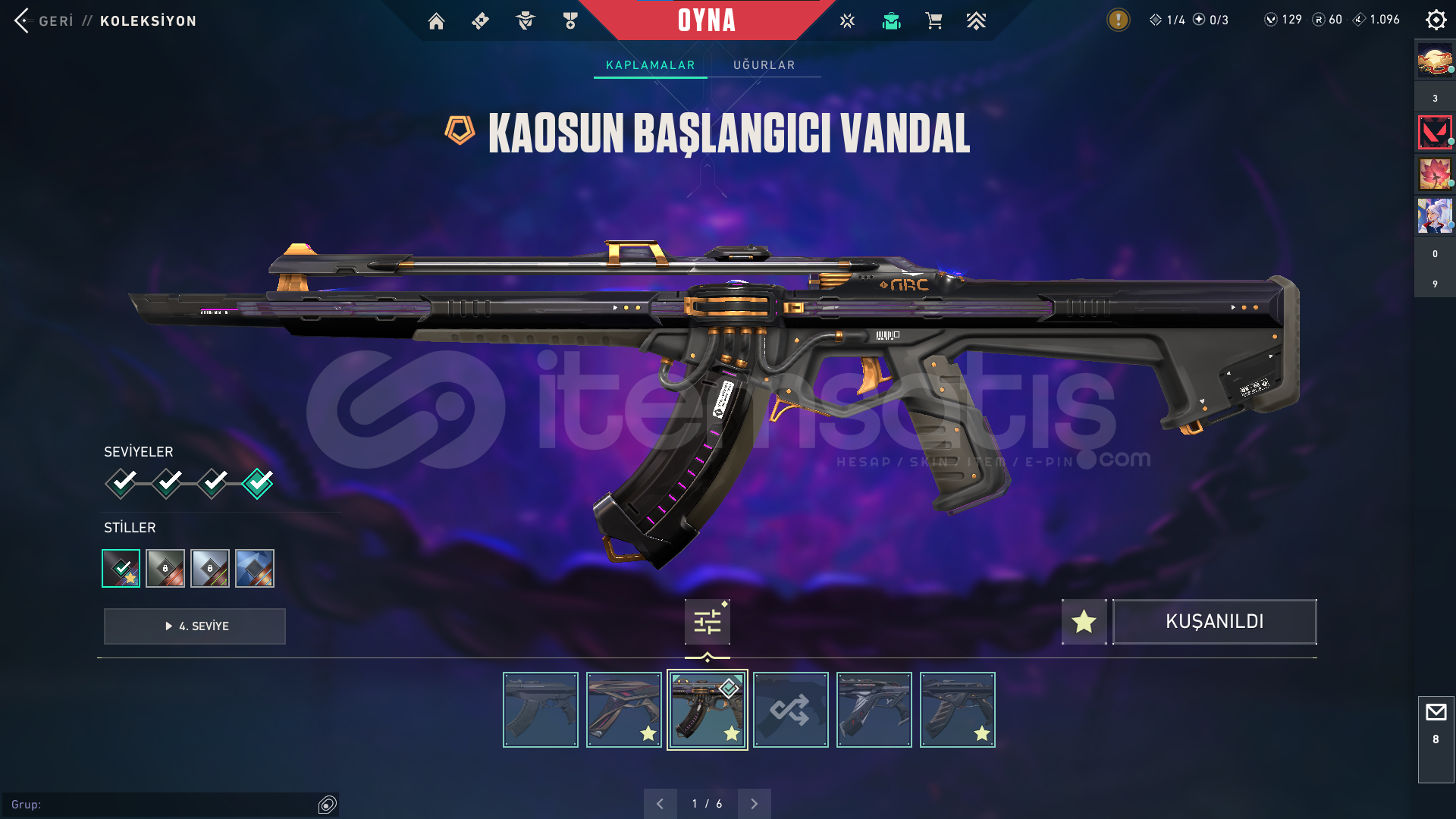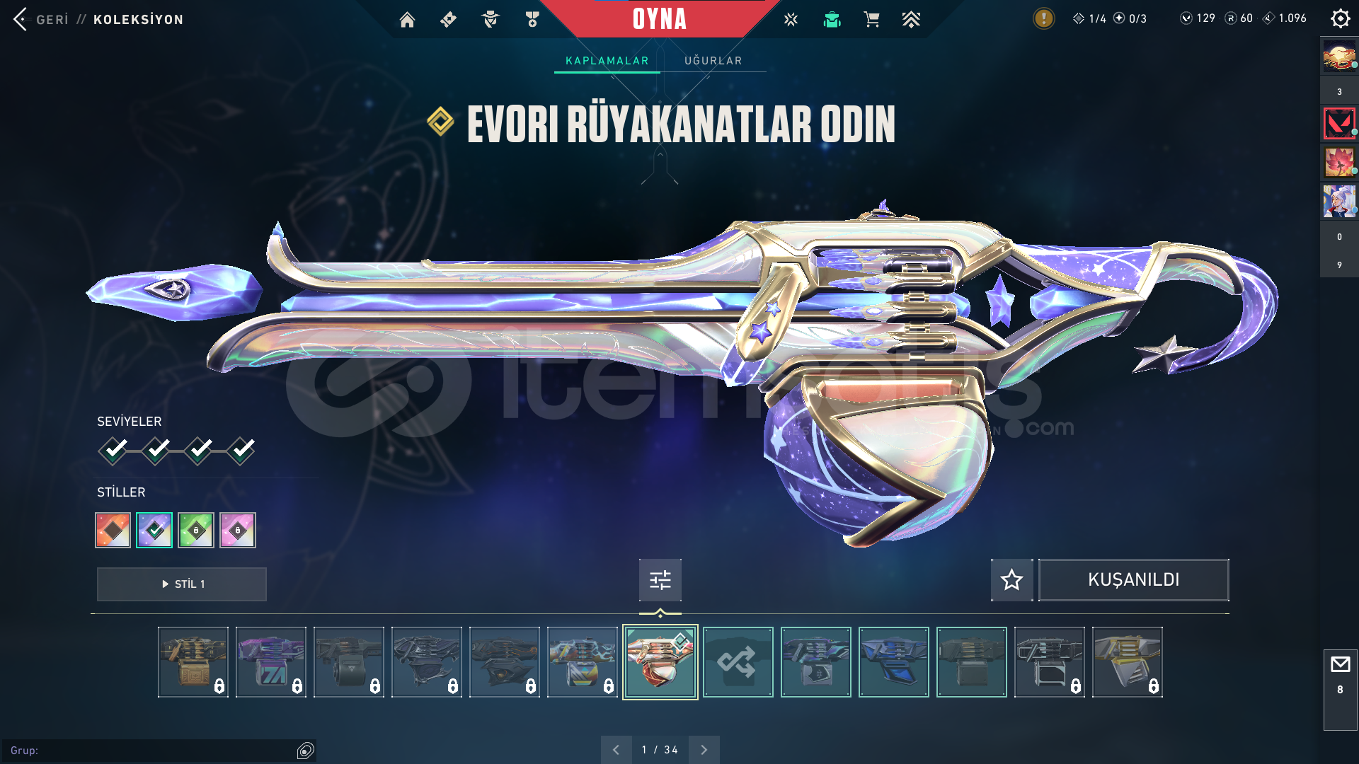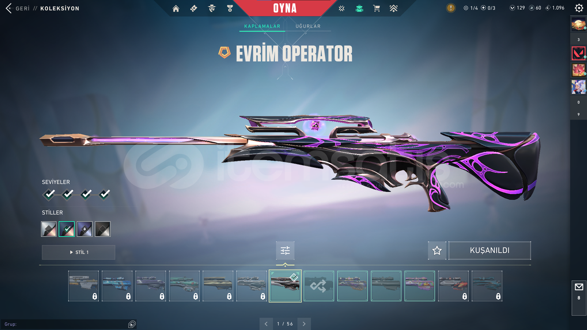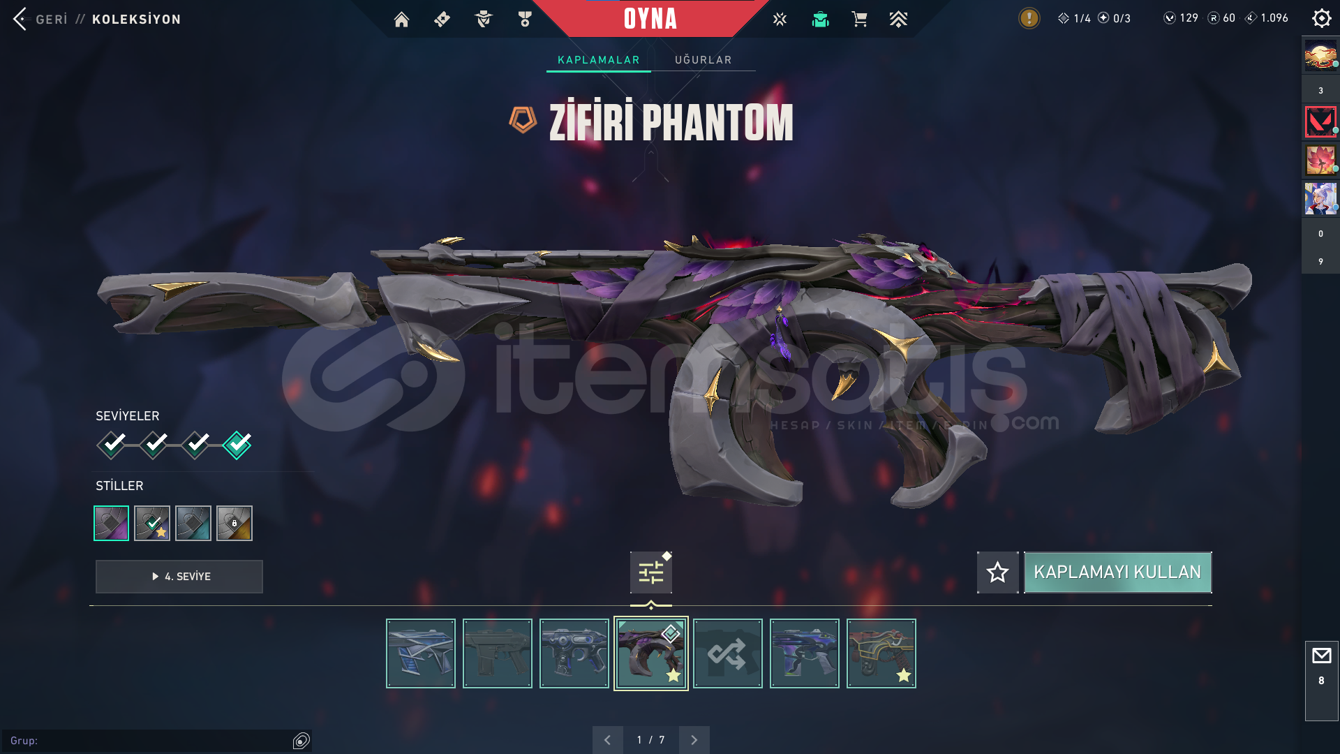 Classic : ASİL Stinger: BATTLE PAS Guardian : BATTLE PAS Outlaw: BATTLE PASshorty: BATTLE PAS Specter : BATTLE PAS Phontom : ZİFİRİ VE ONİ BATTLE PAS OPERATÖR: EVRİM ve BATTLE PASFrenzy: BATTLE PAS Bucky: ASİL Vandal : KAOS- ULUPENÇE -FAZ KORUYUCU BATTLE PAS ARES : BATTLE PASGhost: FATİH Judgde : BATTLE PAS BIÇAK : RGX Karambit- UZaylı Avcısı- BATTLE PAS Odin: EVORİ ve BATTLE PASsherif: İYON Bul Dog : BATTLE PAS ...
