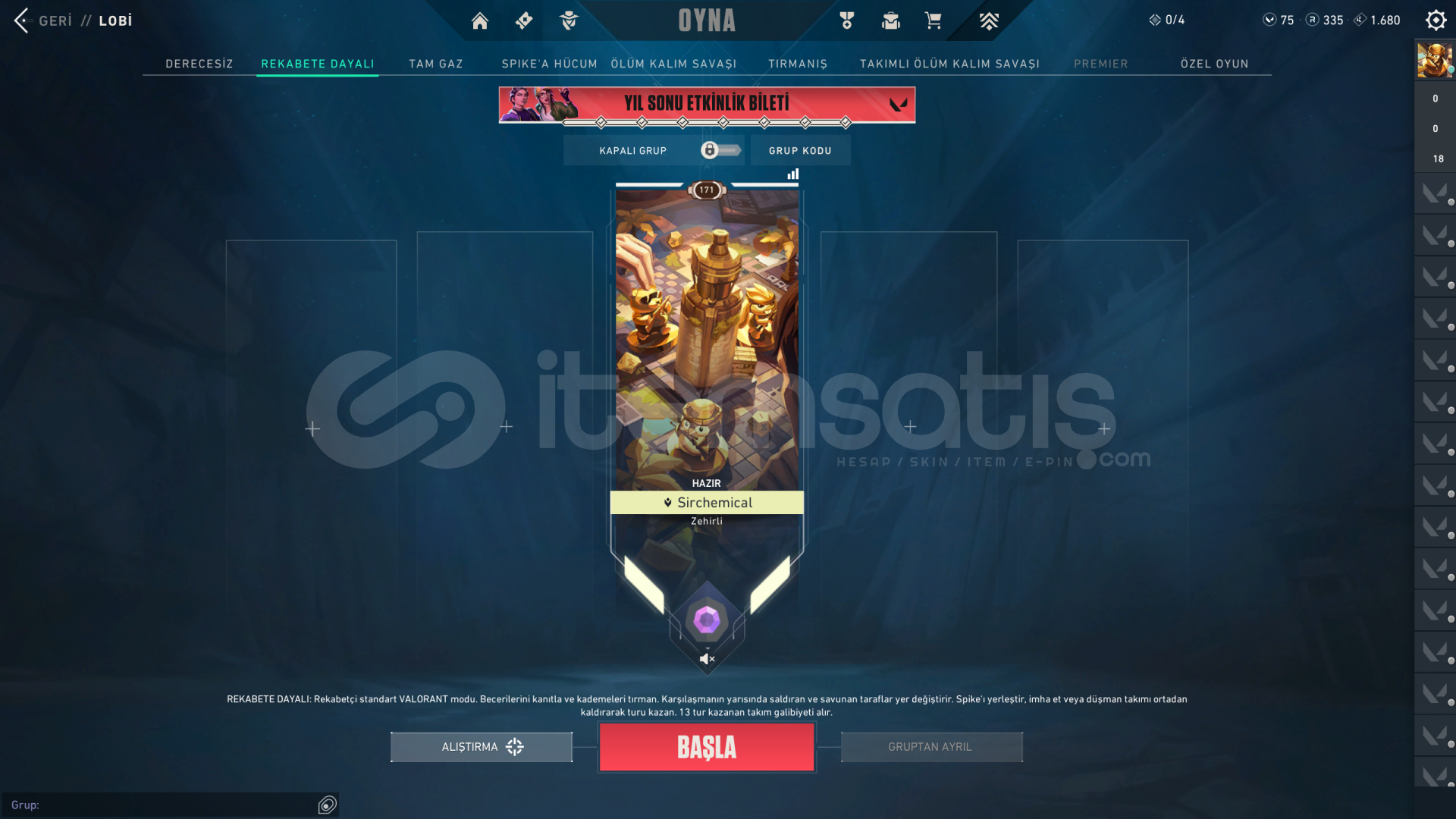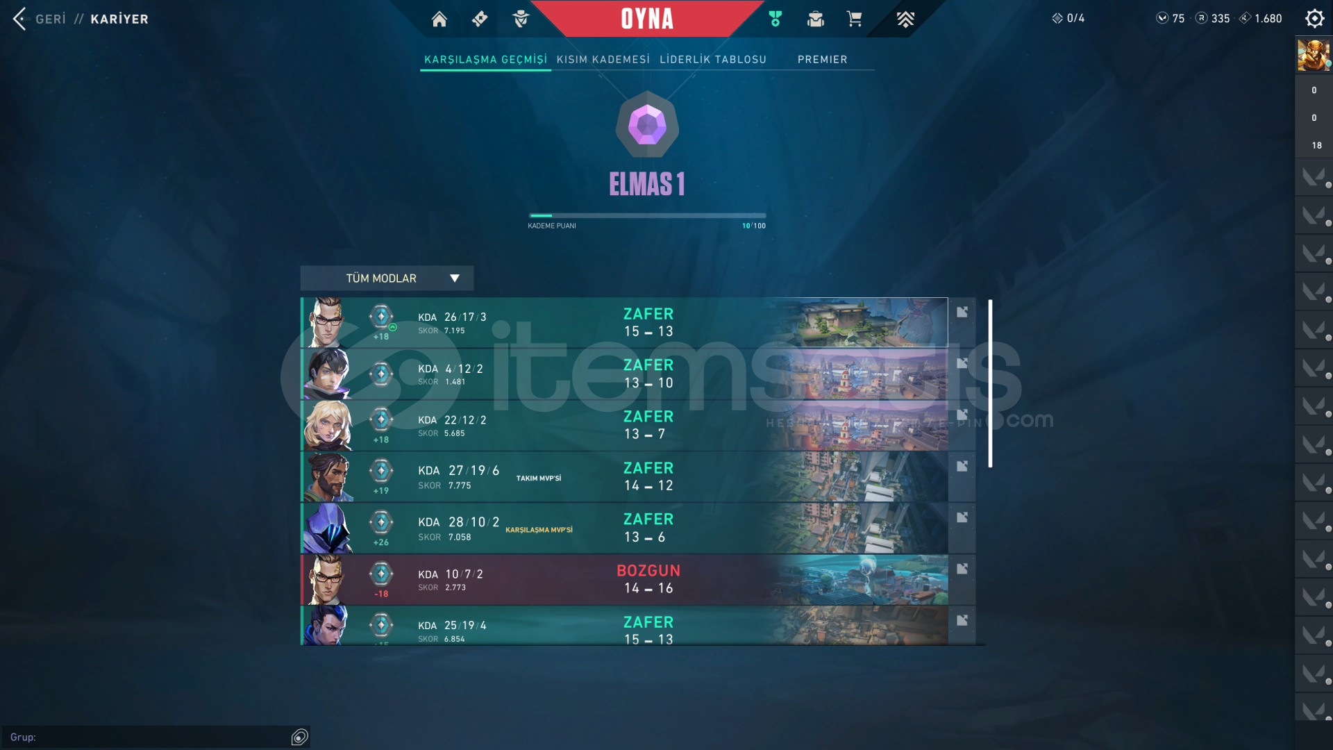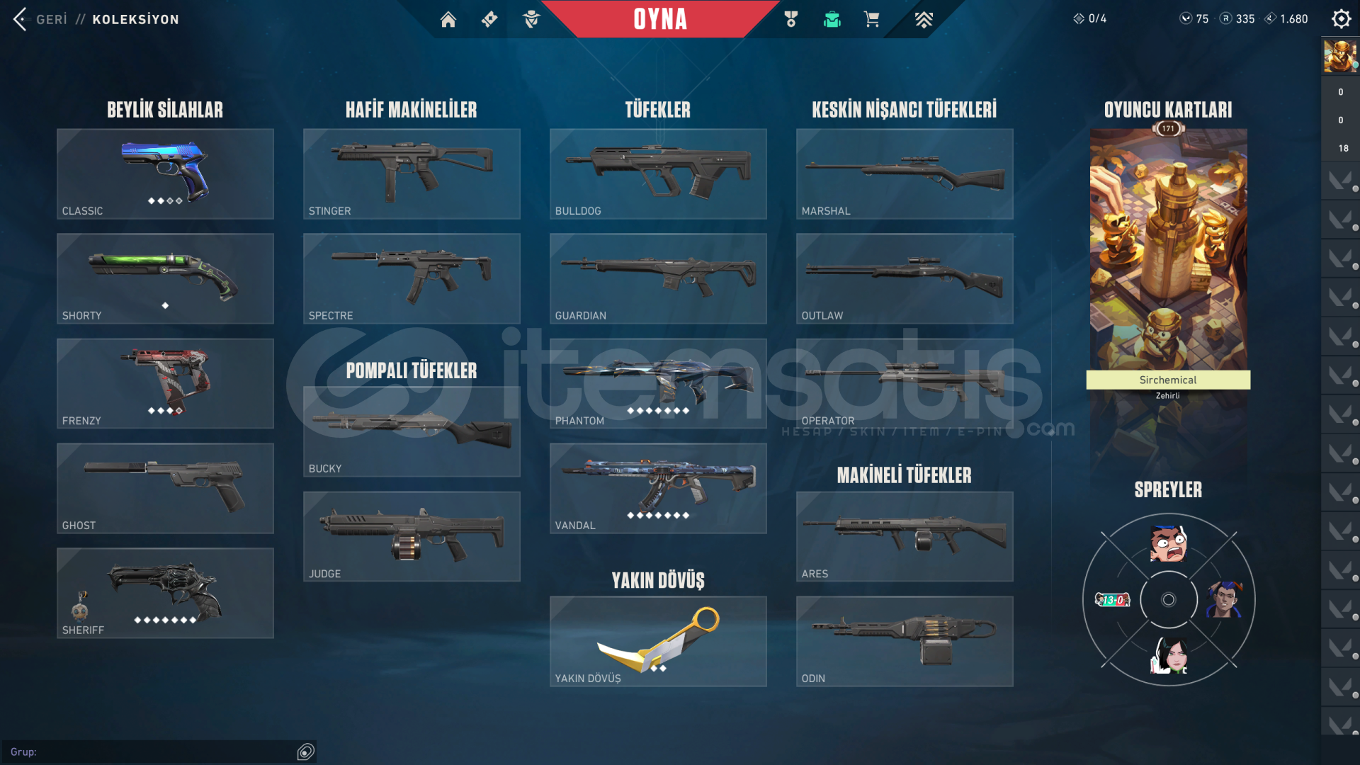 hesabın rankı şuan ki ranki platdir içinde kaos vandal arcane vandal ejder vandal yağmacı sheriff asil karambit anomali phantom bulunmaktadır