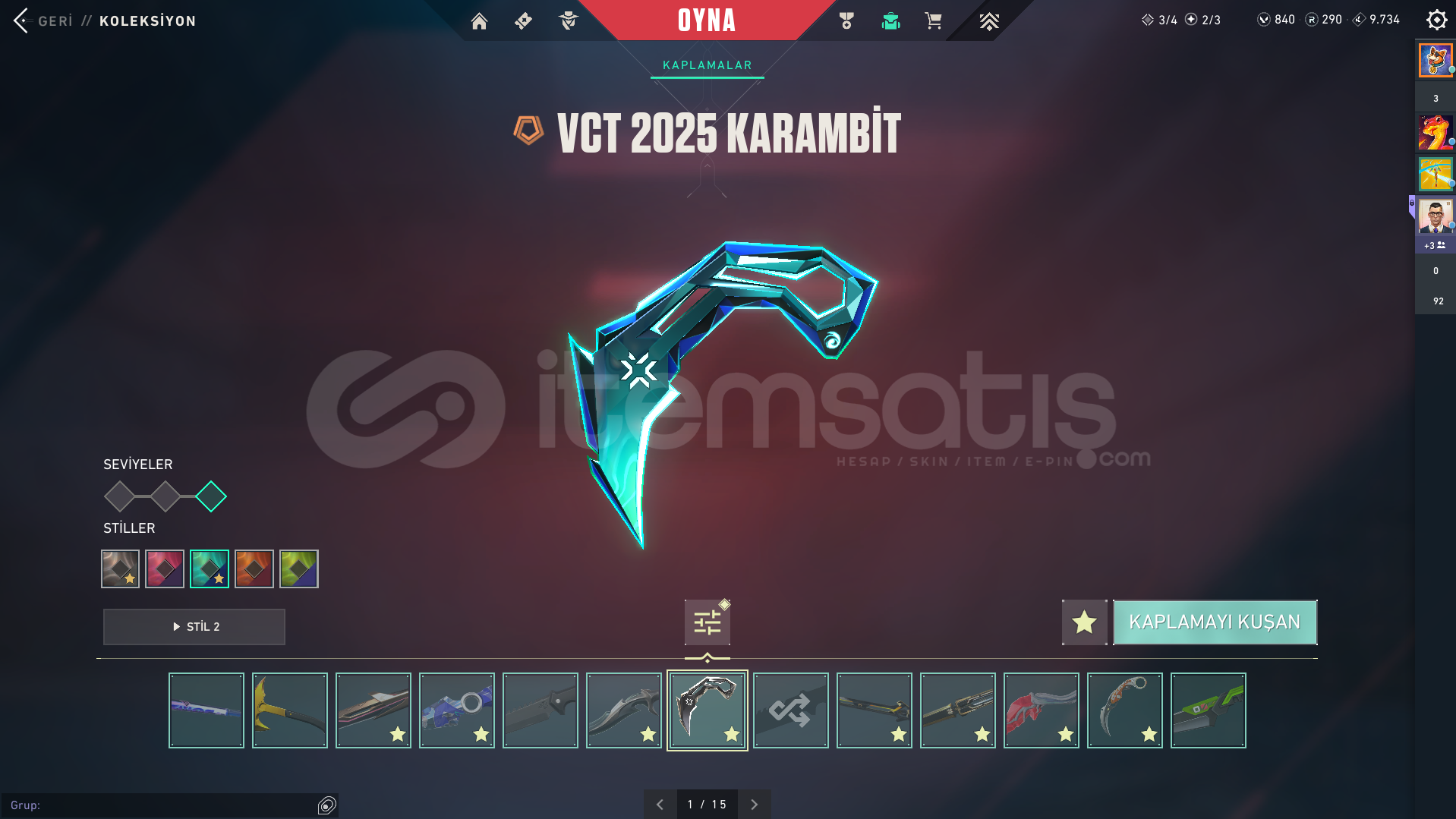 BIÇAKLAR:VCT 2025 KARAMBITCHAMPIONS 2025 KELEBEKCHAMPIONS 2024 KILIÇKURONAMI BIÇAKULUPENÇE BIÇAKVALORANT GO 1. CILT JETT BIÇAĞIYİTİK BIÇAKGAİA BIÇAKHIZLI VE ÖLÜMCÜL KARAMBITVE BP BIÇAKLARI..VANDAL:CHAMPIONS 2025 VANDALKAOS VANDALGAIA VANDALEVORI VANDALASIL VANDALYAĞMACI VANDALEJDER VANDALSOĞUK ÇELİK VANDALVE BP VANDALLAR...PHANTOM:CHAMPIONS 2024 PHANTOMASIL PHANTOMFATİH PH...