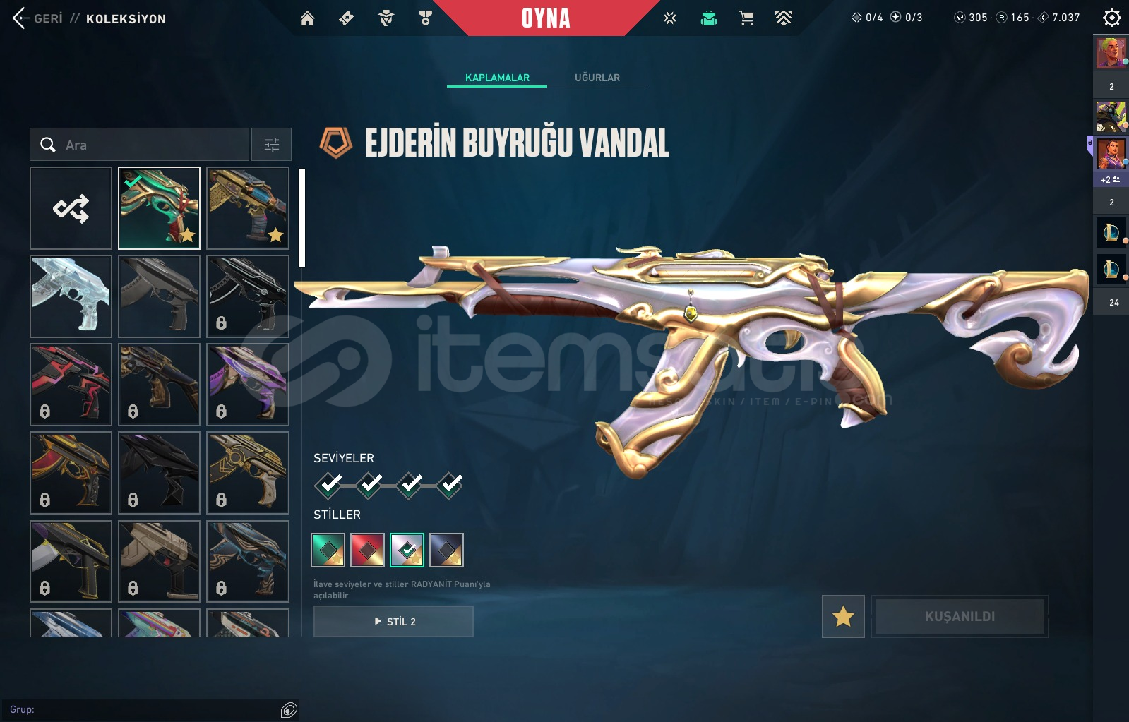 117 seviyegold2 PEAK Güncel bronzoni katanabattlepassarcane vandal(tek seferlik)ejderin buyrugu vandalzifiri phantomArcane vandal için aldığım hesabımı satıyorum hesap ilk satıcısından 1.5 yıldır bende geri alınma gibi durumlar söz konusu olamazPazarlık olur mesaj atabilirsiniz.