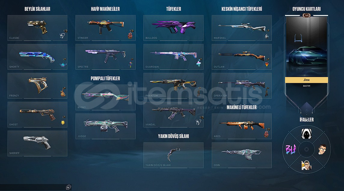 Classicler Vct x 2024 THshortyBatllepassFrenzyFatih 2.0GhostSihirpunkSherrifİyon + KaosStinger BattlepassSpectreIşık MuhafızlarıBuckyBattlepassJudgeFatihBulldogAraxysGuardian BattlepassPhantomChampions2024 + Yağmacı + FatihVandalYağmacı + Arcane + Asil + Cesur Yürek + Champions2025 + Gaia + Kaos + Kuronami + Yitik + BattlepasslerBıçaklar Yağmacı Karambit + Arcane Eldiven + champions2024 Katana + Fatih KılıçM...