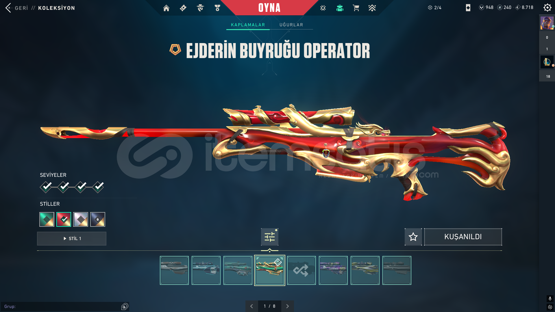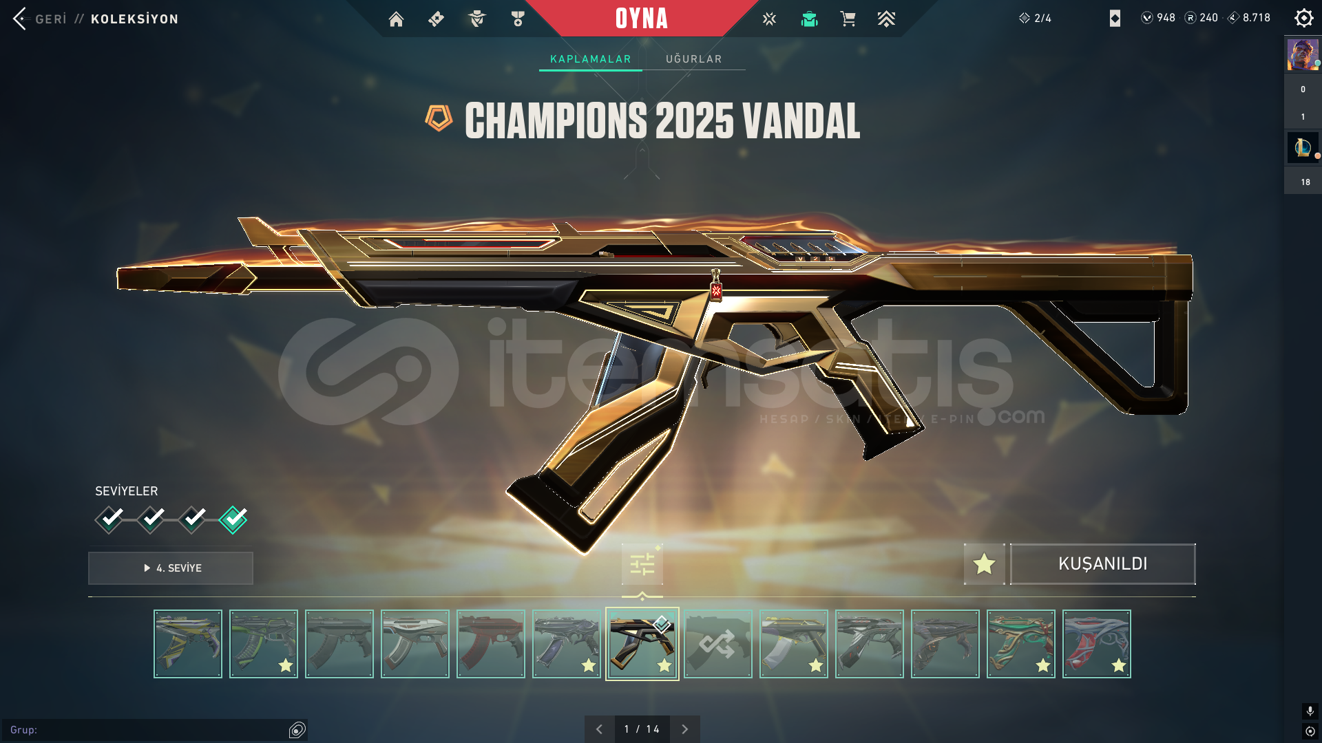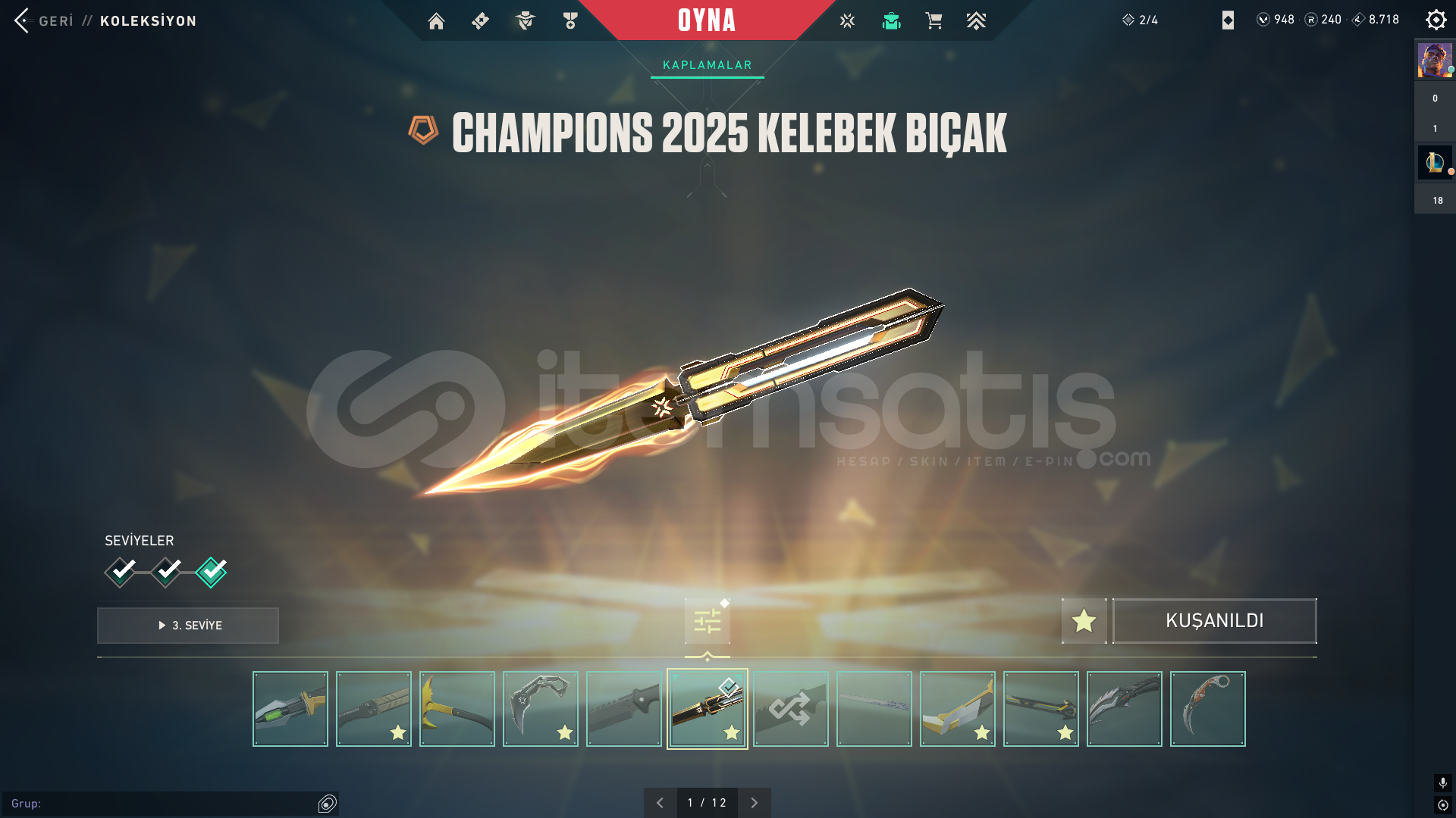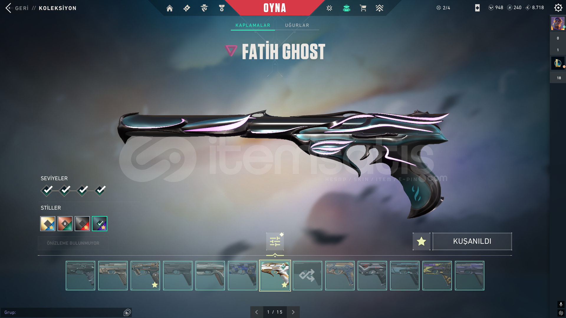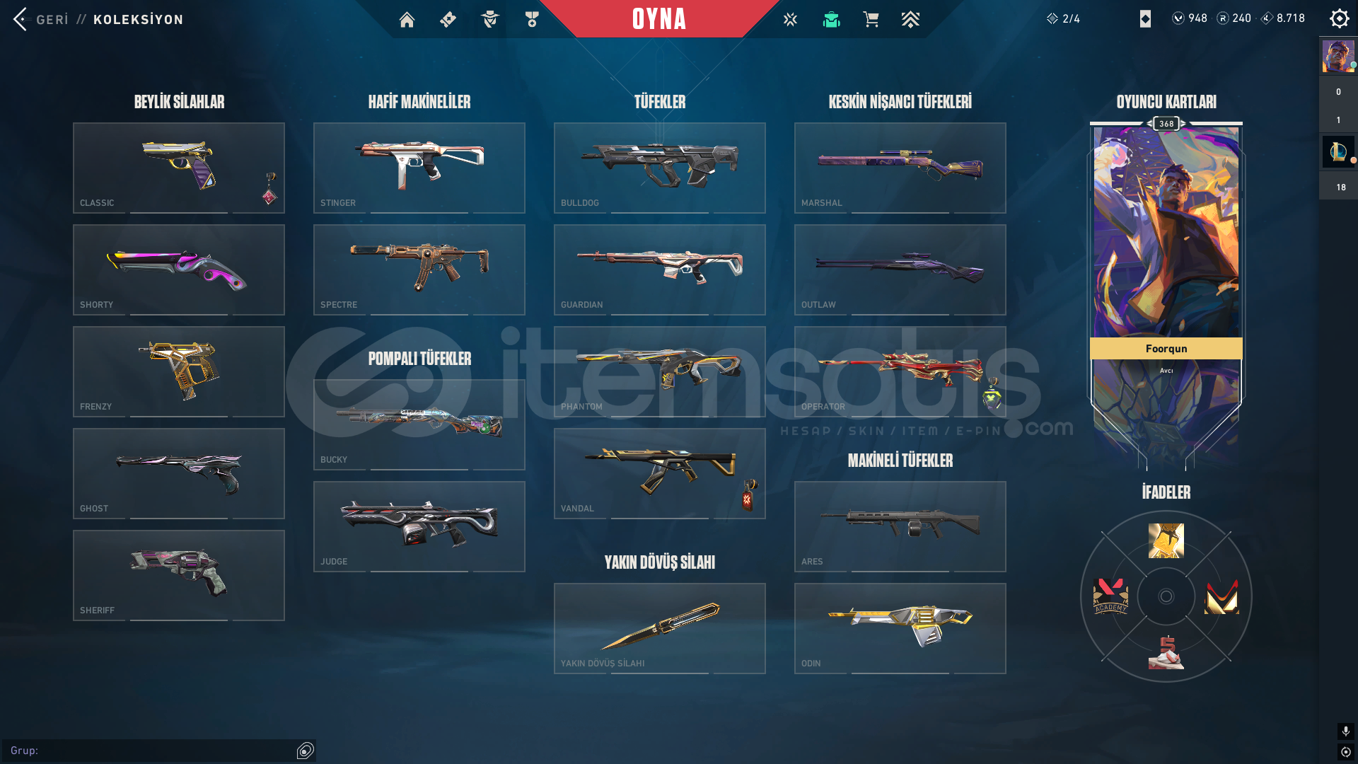 Hesap ilk sahibiyim. Maili aktif olarak kullandığım için devredemem ama mail değişikliği yapacağız tabiki. kişisel bilgilerimi de veririm garanti olarak. Hesap aktif olarak yücelik eloda. vandal ve phantom olarak tatmin edici skinler mevcut. bıçaklarda aynı şekilde. alacak kişiye iyi eğlenceler.