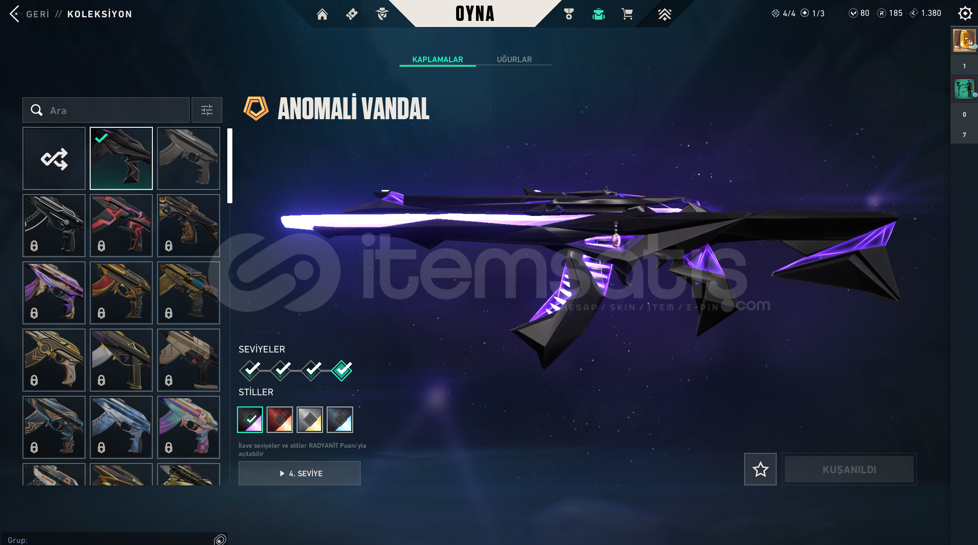 hesapta asil karambit, anomali vandal ve ecelin ısırığı ghost bulunmaktadır. hesap 63 level olup dia 1 rankındadır. ufak bir miktar pazarlık olur.