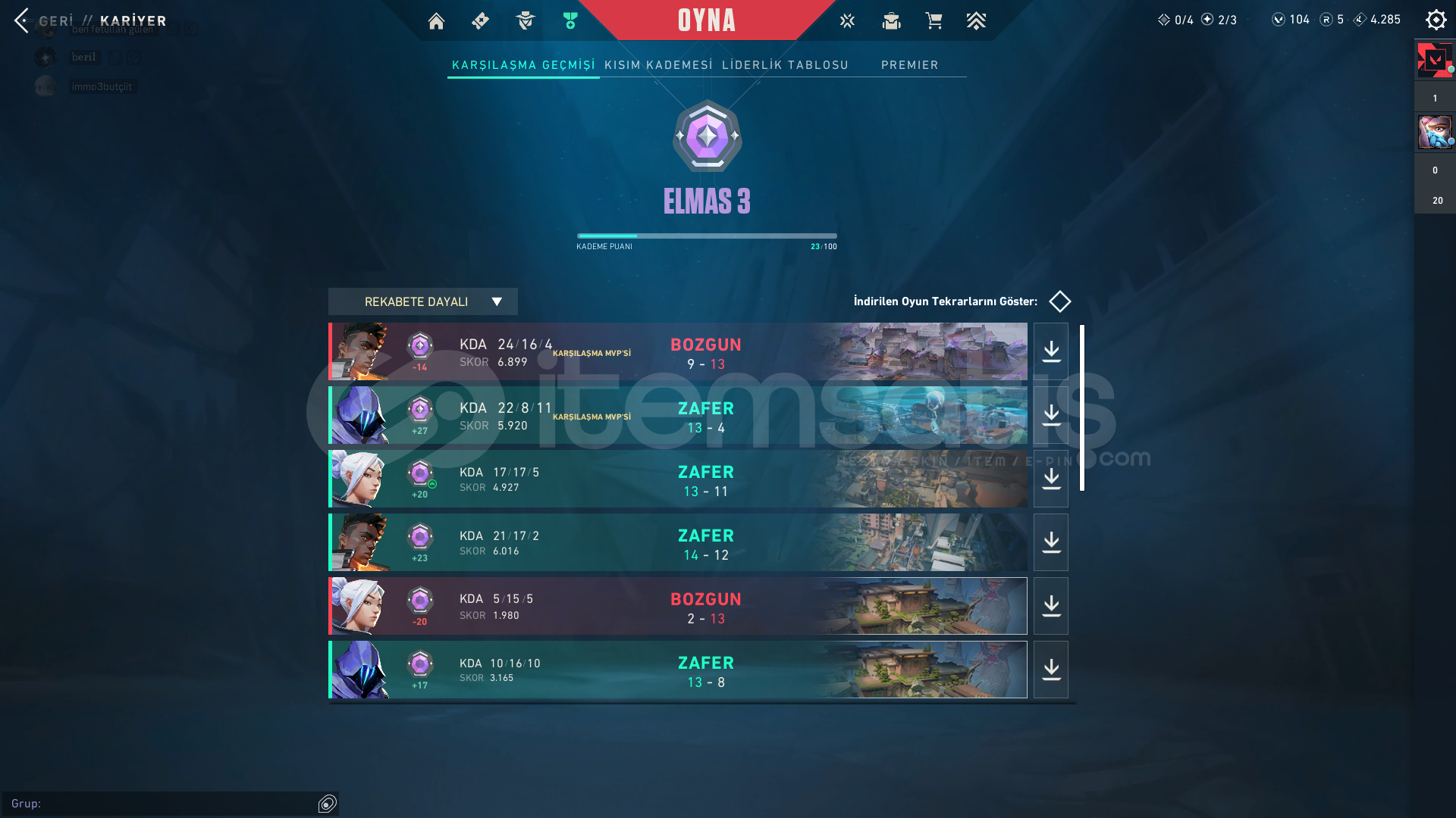 1 tane battlepass alınmıştır peak dia3 güncel rankıda dia3
