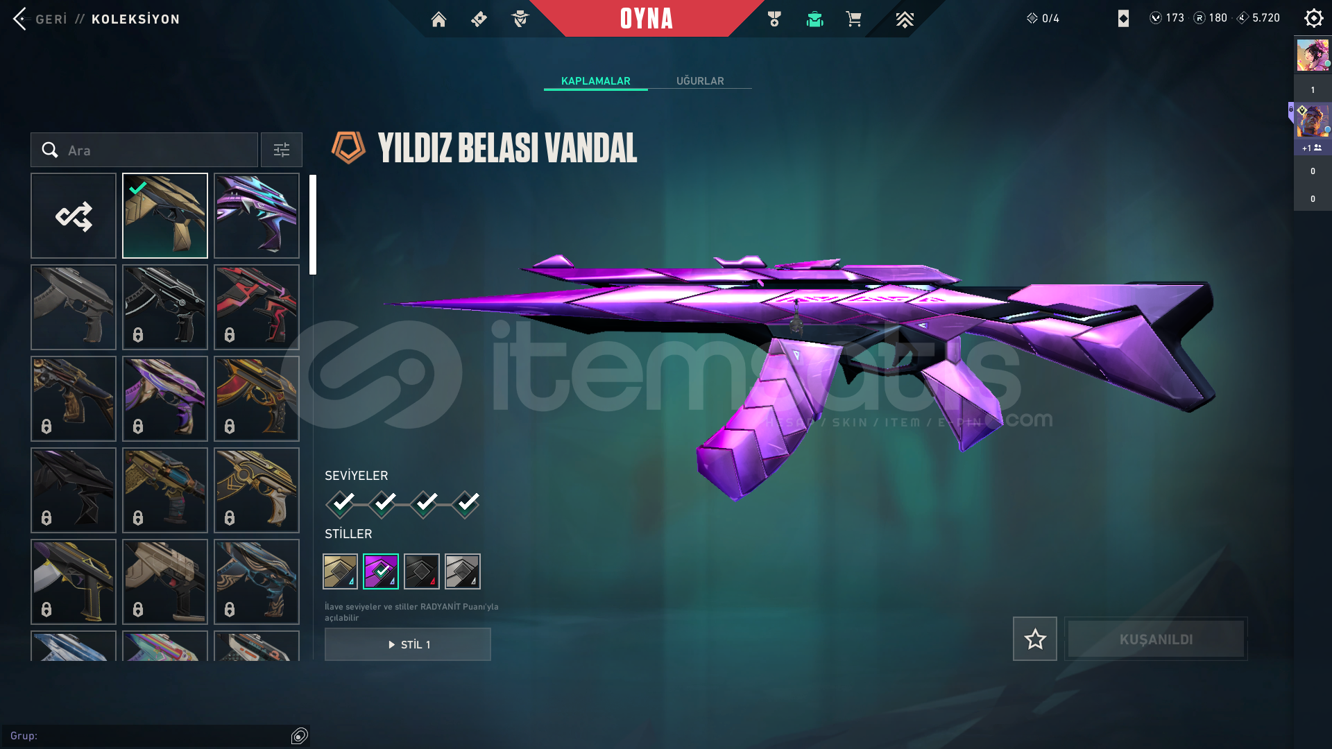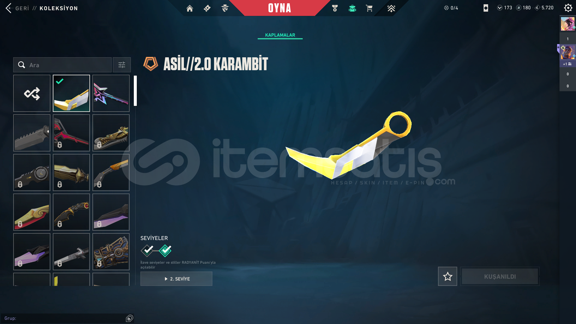 ASİL KARAMBİT YILDIZ BELASI VANDAL SHİRPUNK OPERATÖR SARMAL PHANTOM SON BP FULL GÜMÜŞ 2MAİL DEĞİŞEN