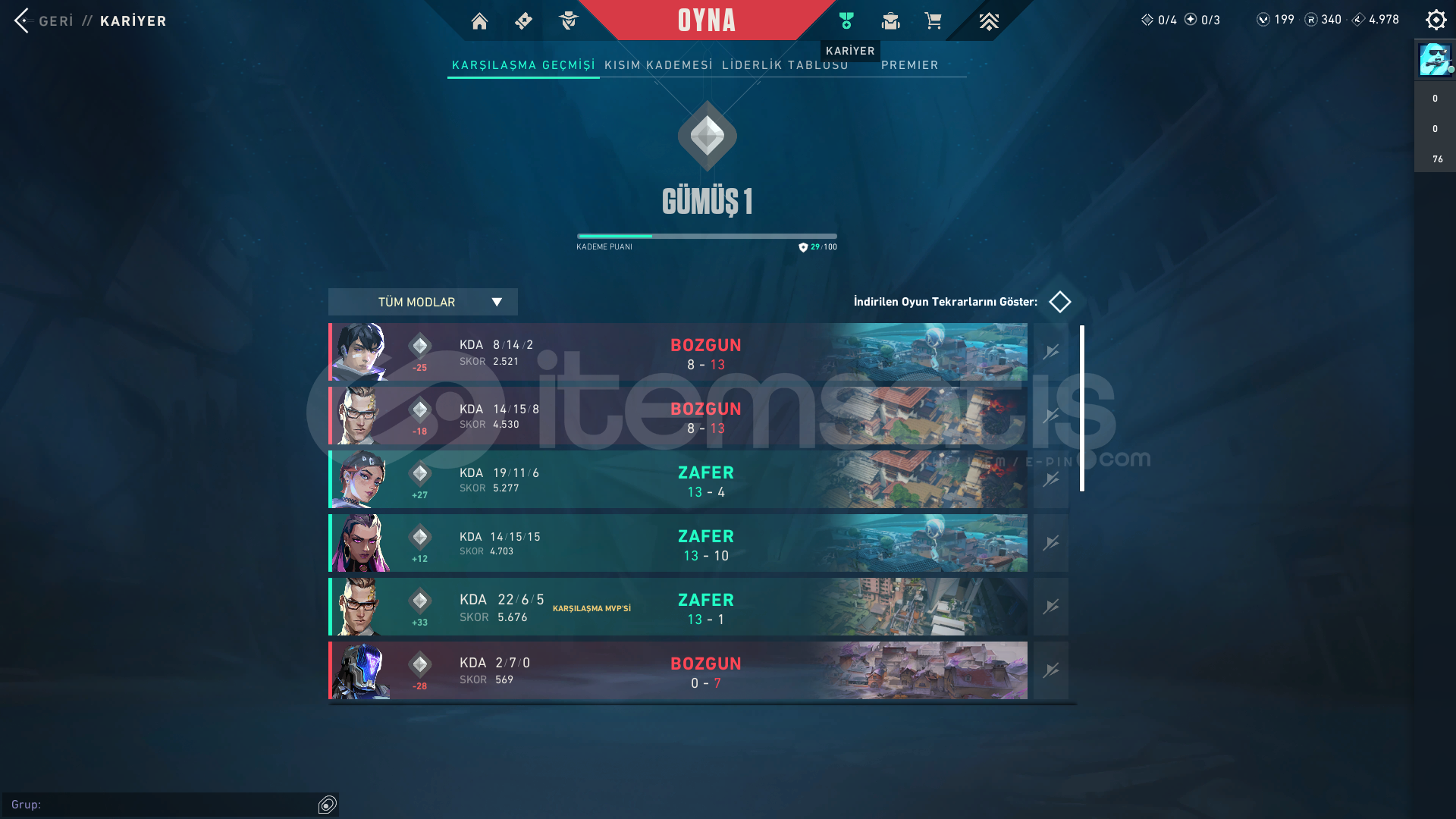 Hesap Özellikleri RANK : GUMUS 2SKİN SAYISI : 5VP : 199TELEFON : ONAYSIZMAİL DEĞİŞMEKTEDİR OTOMATİK TESLİMDİRİSİM DEĞİŞME HAKKI MEVCUT