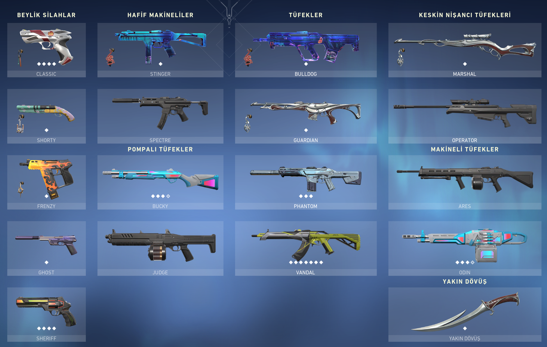 Hesapta bulunan özel skinler aşağıdaki gibidir.