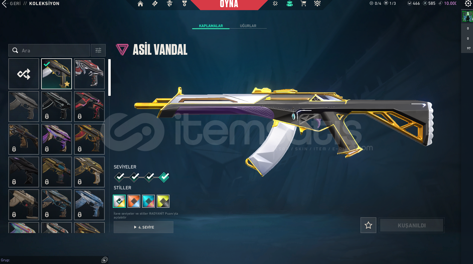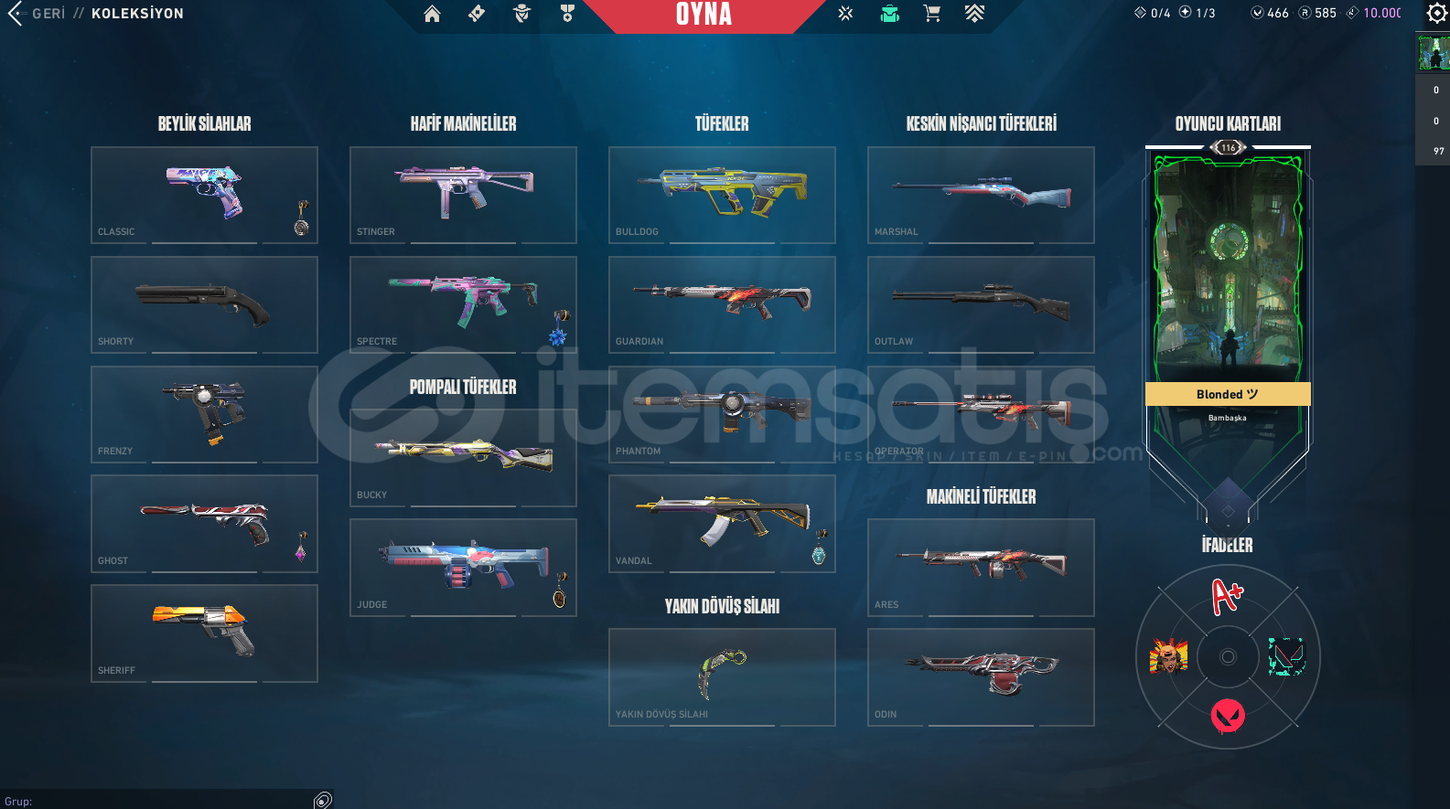ALACAĞINIZ HESABIN MAİL ŞİFRE TÜM BİLGİLERİ DEĞİŞİR.GÖRSELDE GÖRDÜĞÜNÜZ HESAP TESLİM EDİLECEKTİR.SİLAH RENKLERİNİ SKİN OLARAK SAYMIYORUZ.DİĞER BÜTÇEYE UYGUN İSTEK SKİNLİ İLANLAR İÇİN BİZE ULAŞIN.