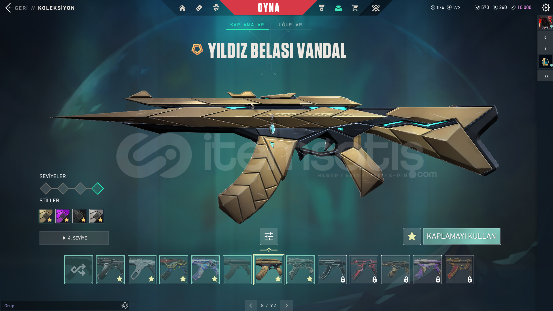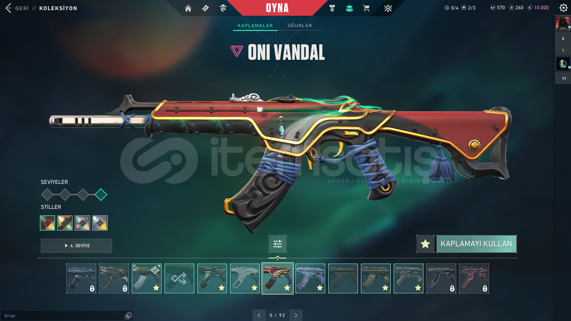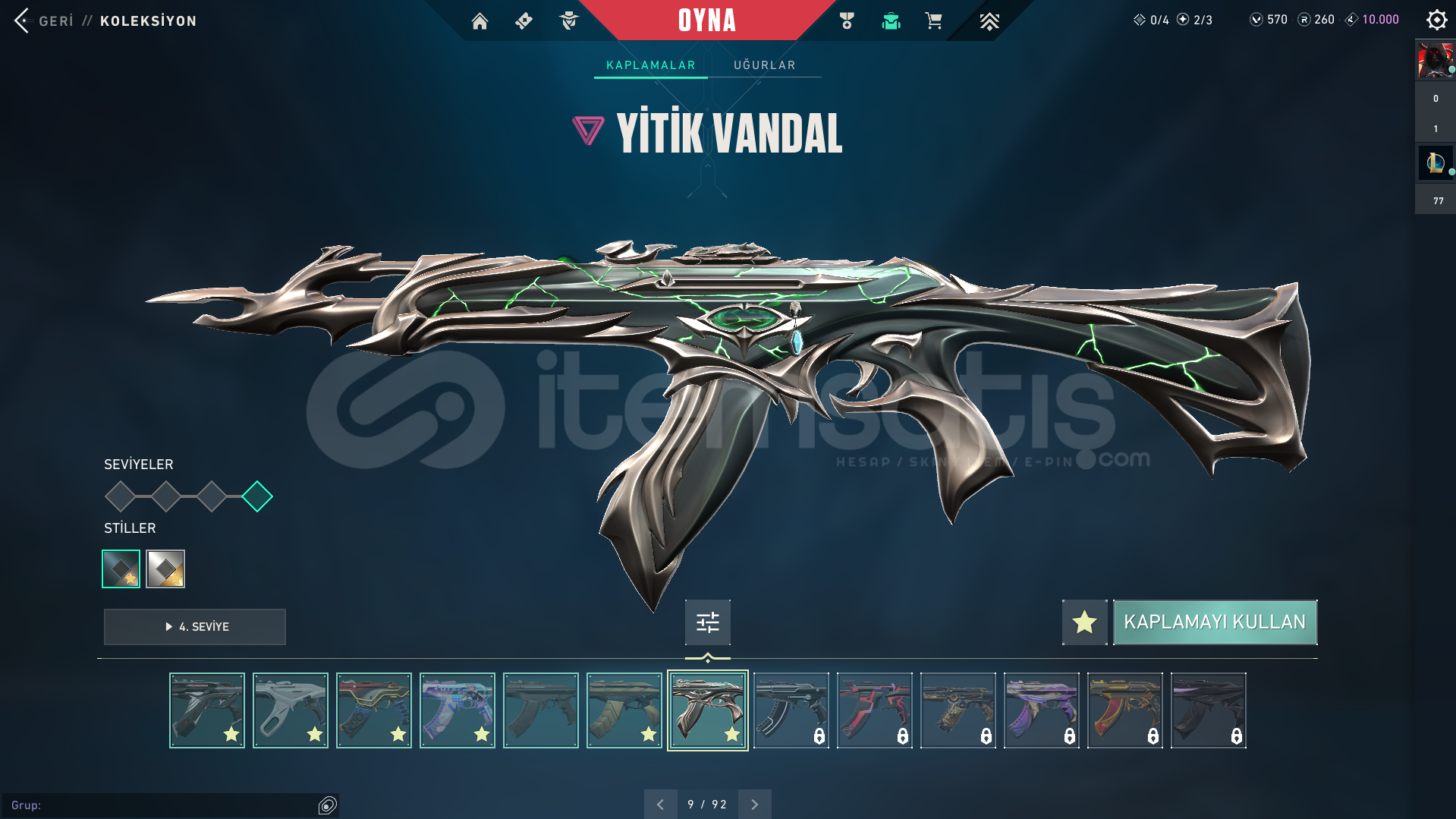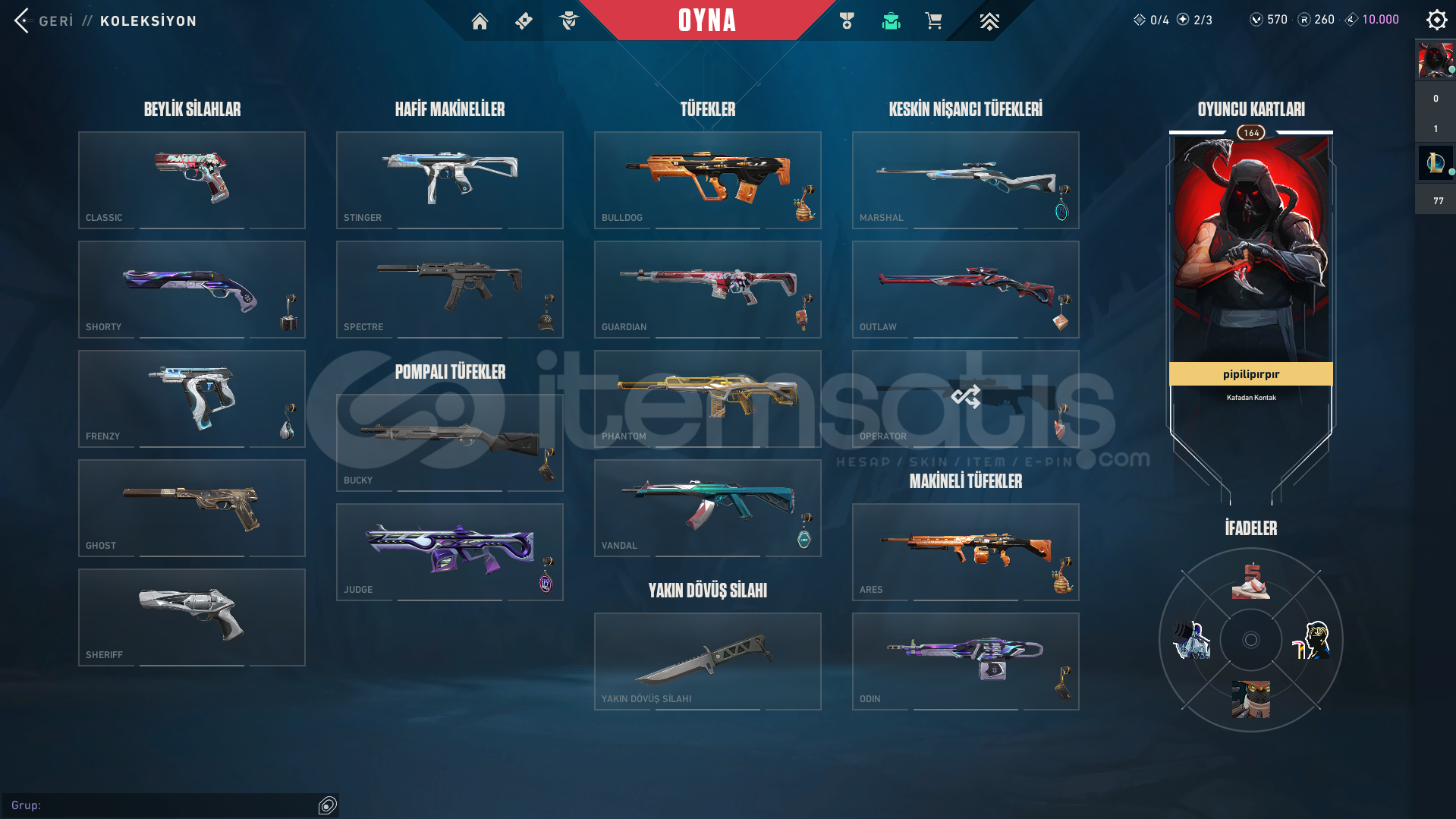 ASİL VANDAL YILDIZ BELASI VANDAL ASİL VANDAL YİTİK VANDAL İYON VANDAL ONİ VANDAL RGX PHANTOM SİHİRPUNK OPERATOR İYON SHERİFF UZAYLI AVCISI BIÇAĞI POPSTAR IŞIK ÇUBUĞU BULUNAN HESAPTIR.