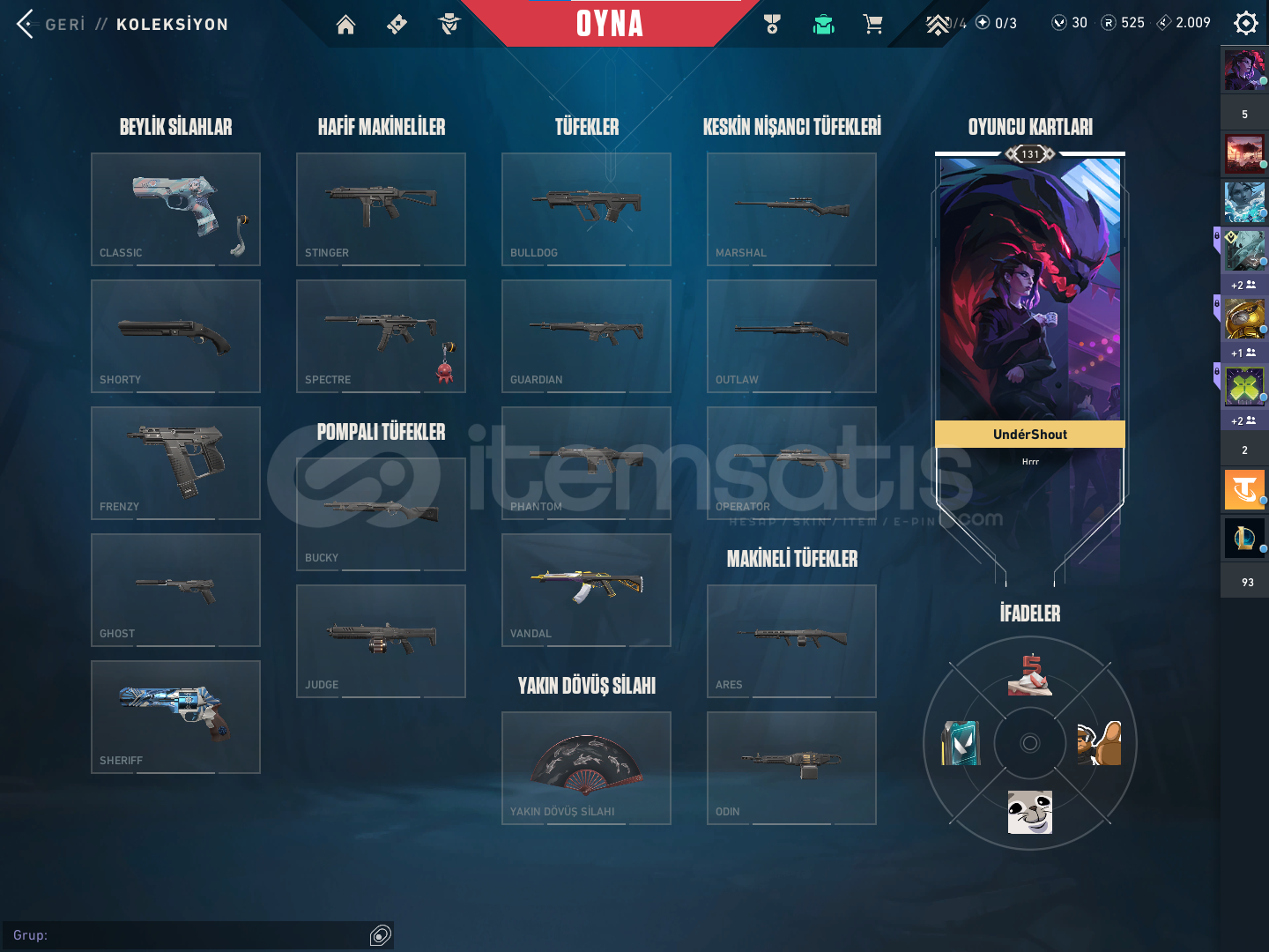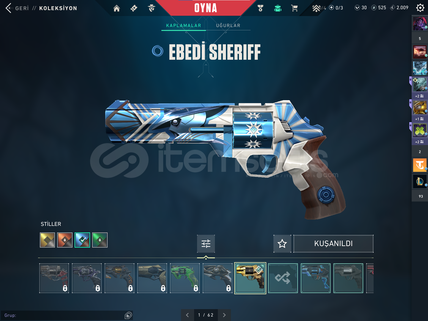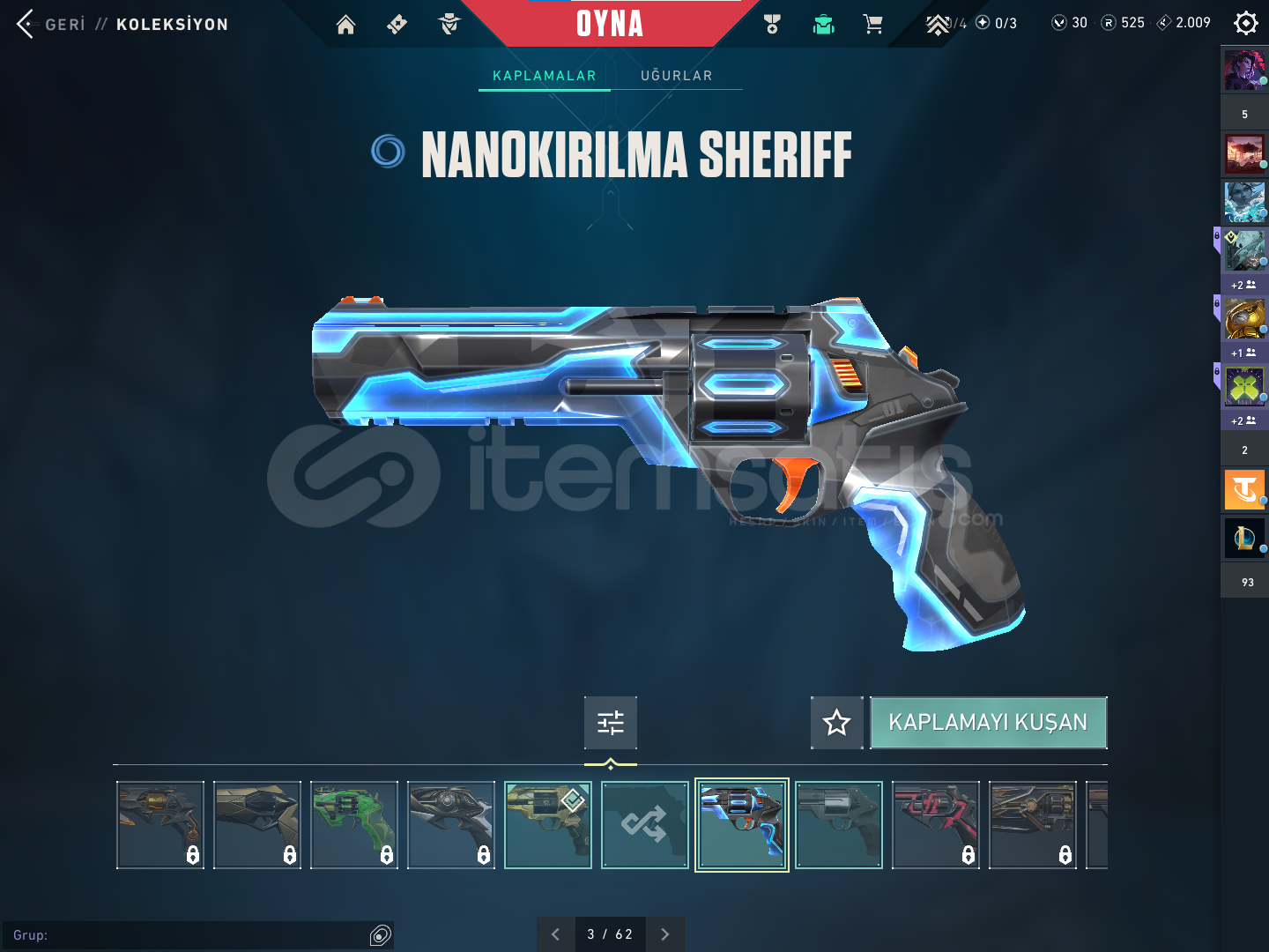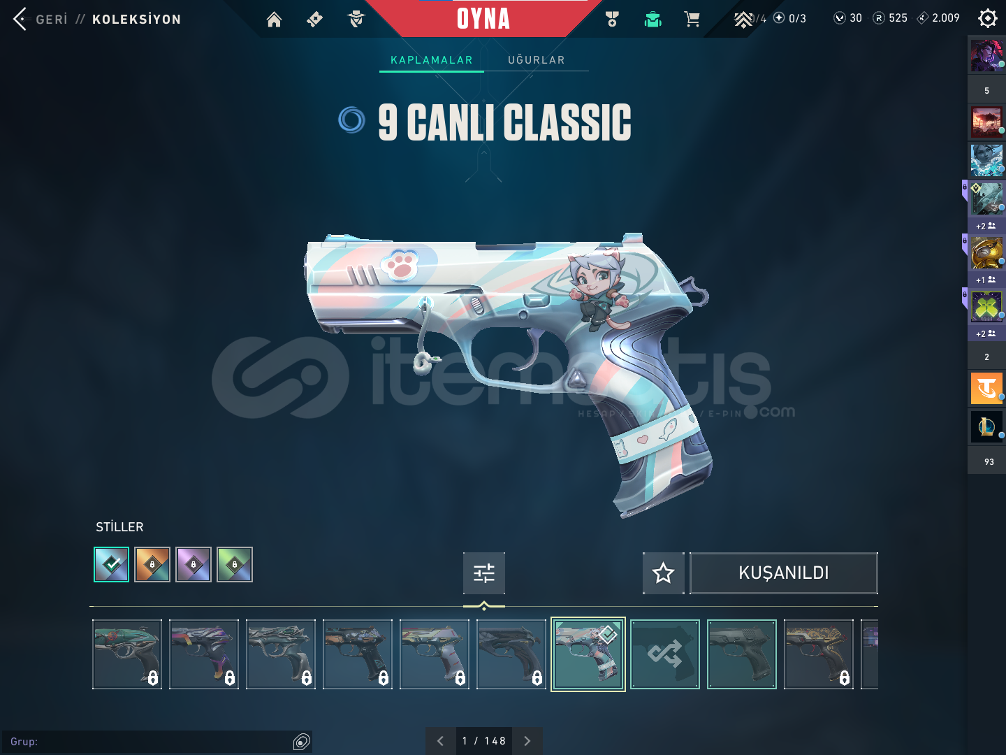 Hesapta Asil vandal + Denge Yelpaze + 9 Canlı Classic + Ebedi Sheriff + Nanokırılma Sheriff mevcut.