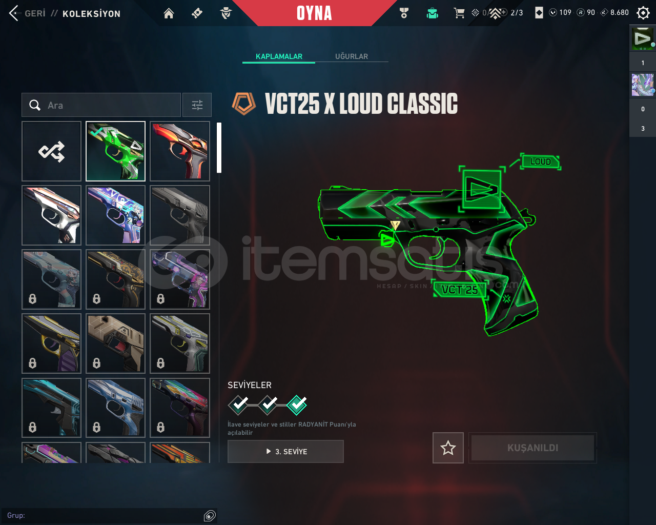 200+ BAŞARILI İŞLEM GÜVENCESİ ! 🎯 VALORANT🏆 Rank: Ascendant 2🎨 SkinlerGaia VandalEvorí Rüyakanatlar VandalOni VandalBubble Pop VandalByteshift VandalChampions 2025 VandalAfet PhantomYitik Operator🔪 BıçaklarRGX KarambitByteshift KnifeBubble Pop Light Stick🔫 DiğerVCT25 x LOUD Classic2x Battlepass✔️ Mail...