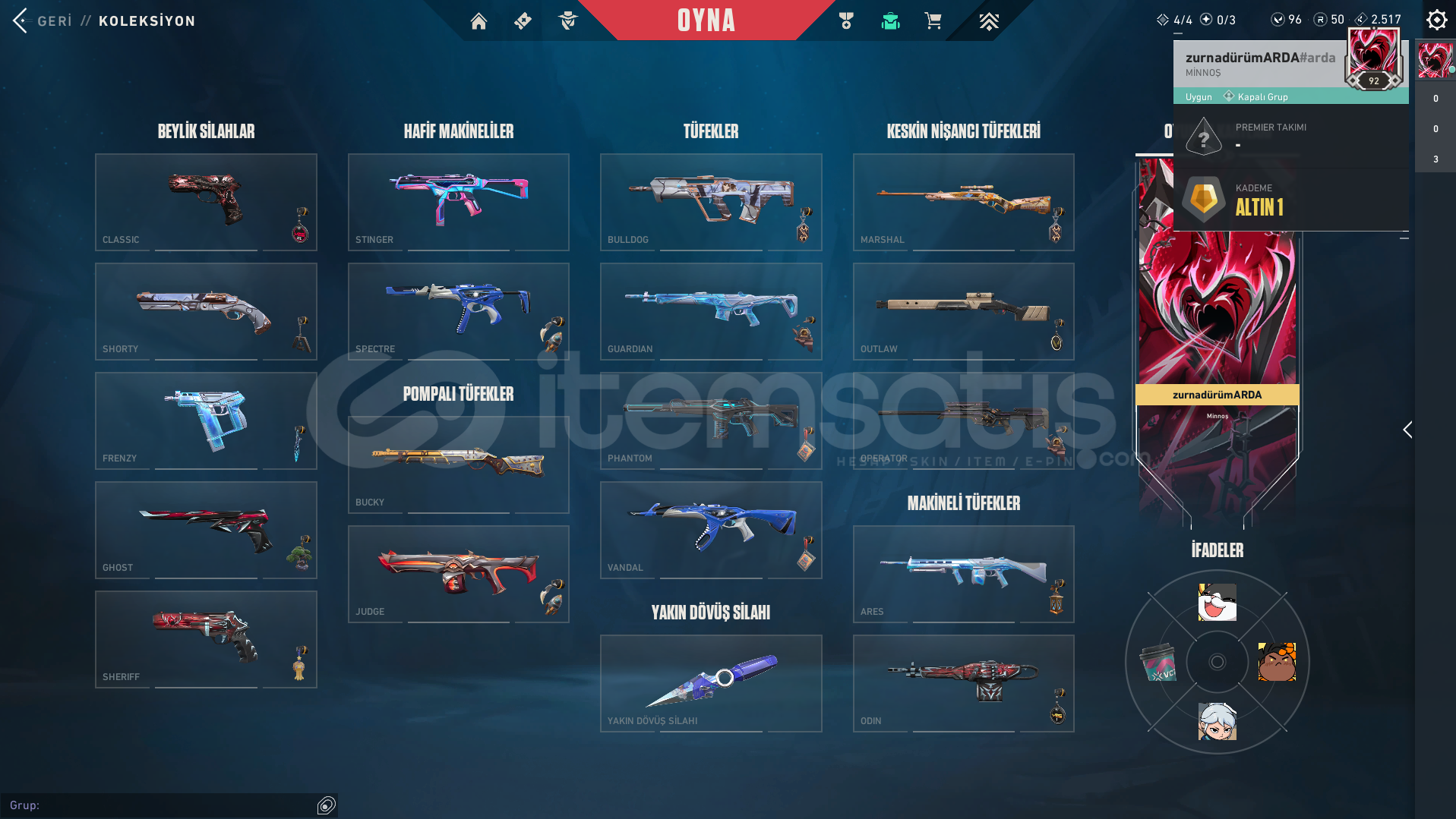 Hesapta Savaş bileti Skinleri ve İYON Vandal İYON Spactre RGX 11z Pro Phantom Oni Bucky Kaosun Başlangıcı Operator VALORANT GO! 1. Cilt Bıçak uzayllı avcısı bıcak gold rank var email değişen hesaptır