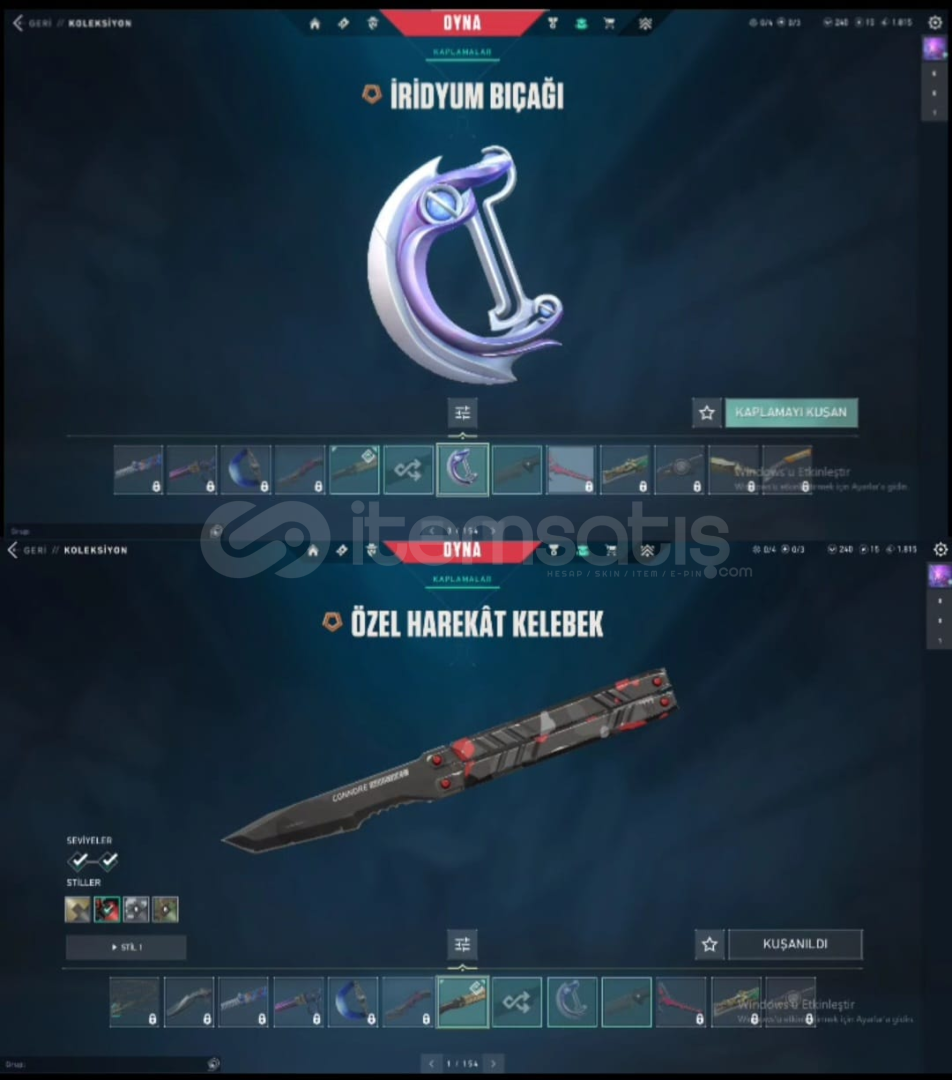 😳 Ekstra : iridyum bıçağı , özel harekat kelebek , fatih guardian , asil phantom , yıldız serüveni vandal , ufkun sınırı vandal , ışık muhaffızları vandal