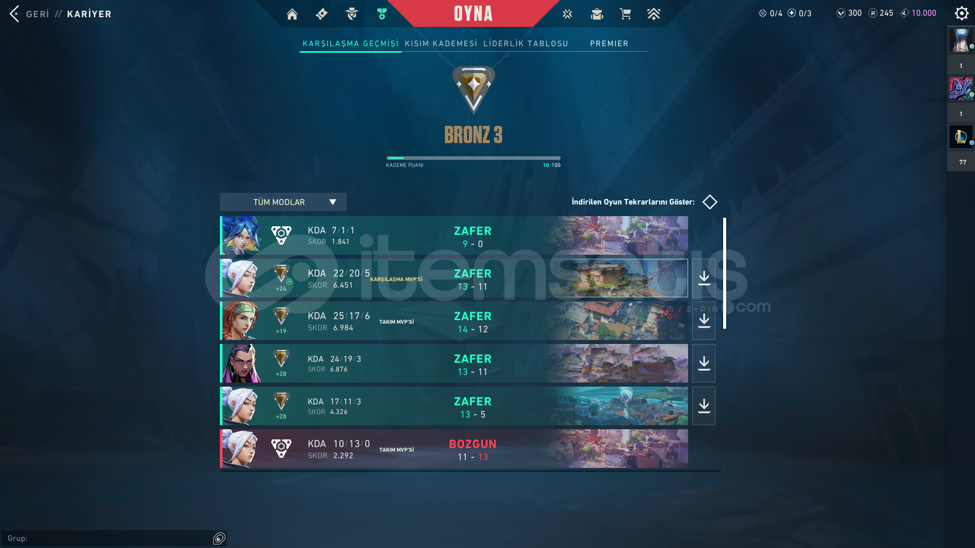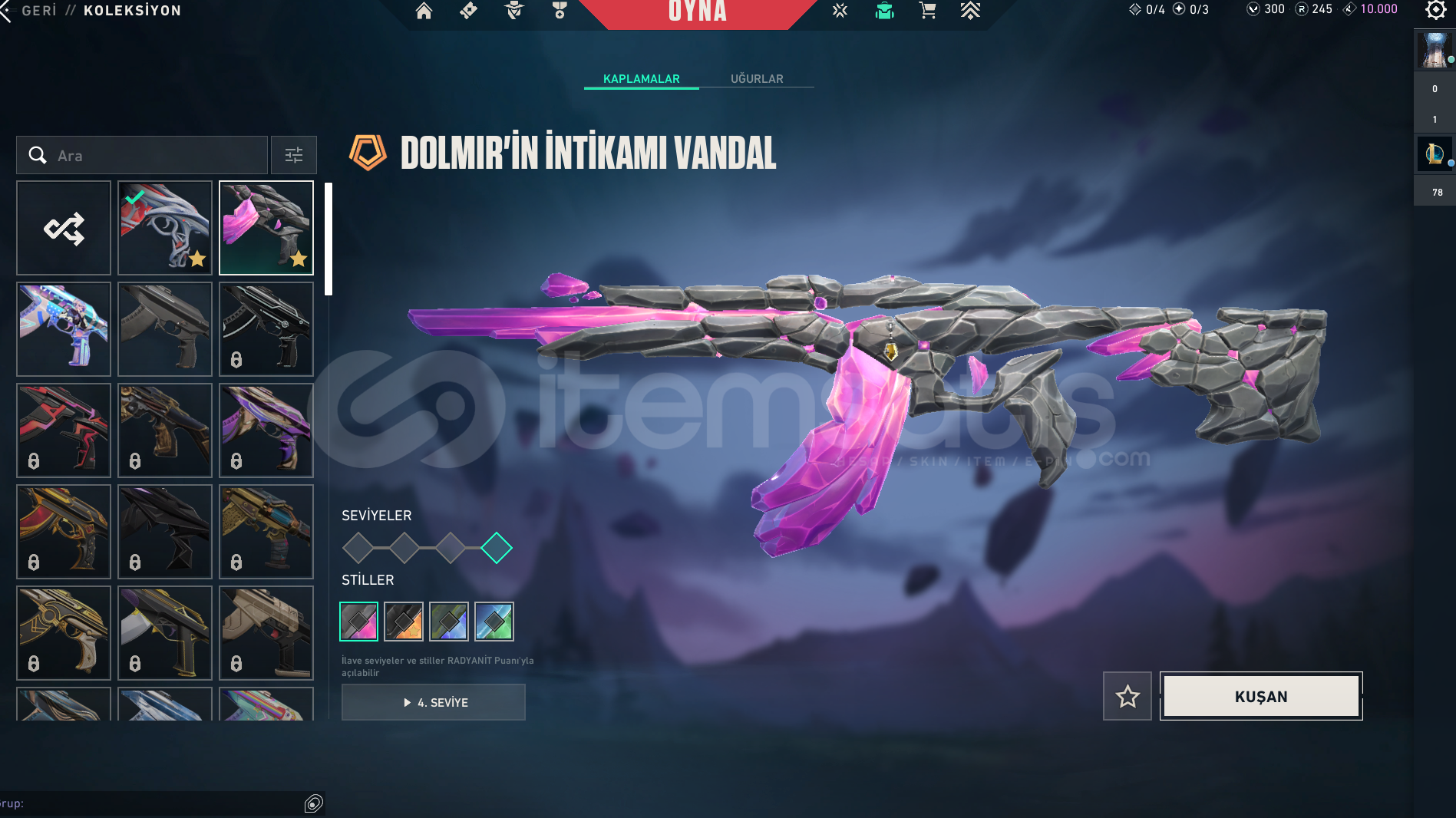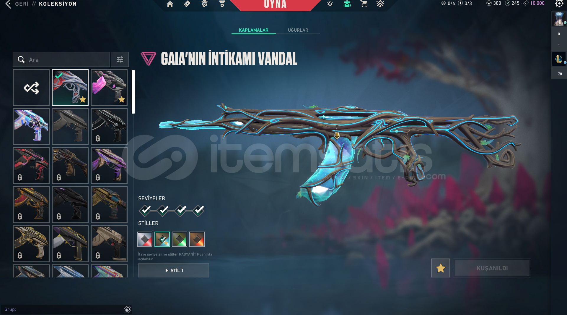 Bu Valorant hesabı, Bronz 3 derecesinde olup içinde dikkat çekici ve popüler kaplamalar barındıran özenli bir koleksiyona sahiptir. Hesapta ORA Phantom, Gaia’s Vengeance Vandal, Polmir’in İntikamı Vandal, Cesur Yürek Ghost, Uzaylı Avcısı bıçak ve Popstar bıçak gibi sevilen skinler bulunmaktadır. Hesap, ilk açıldığı orijinal Gmail adresiyle birlikte teslim edile...