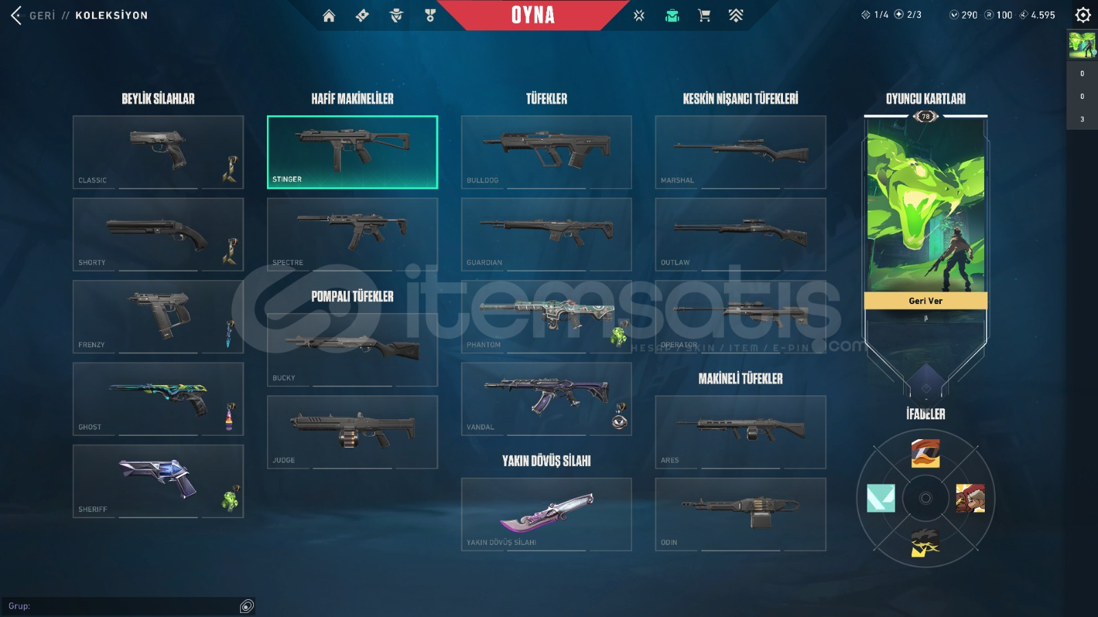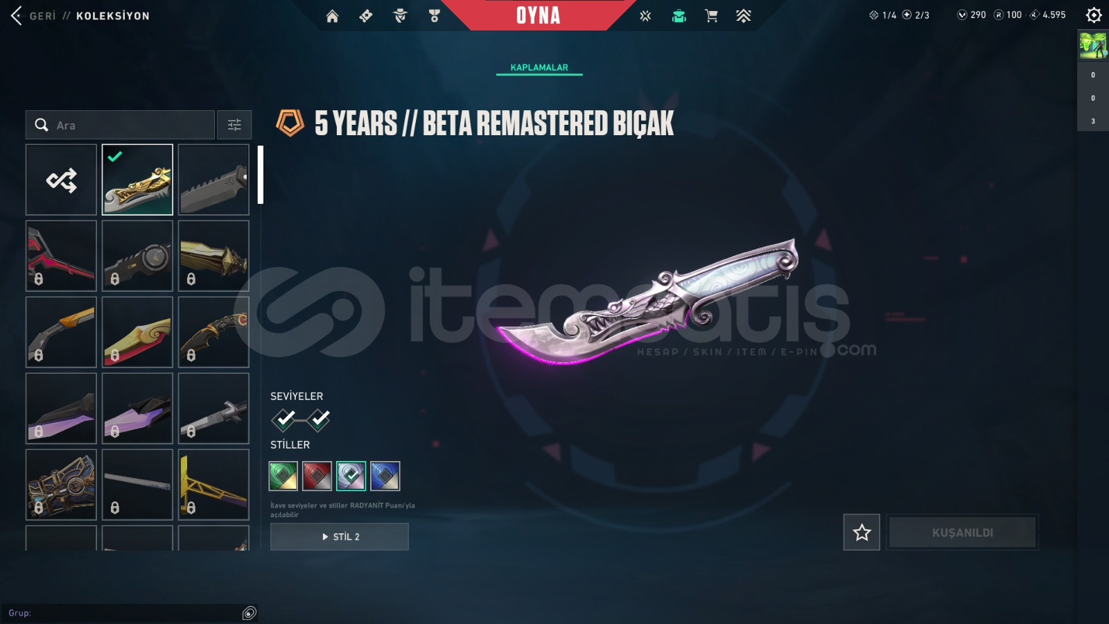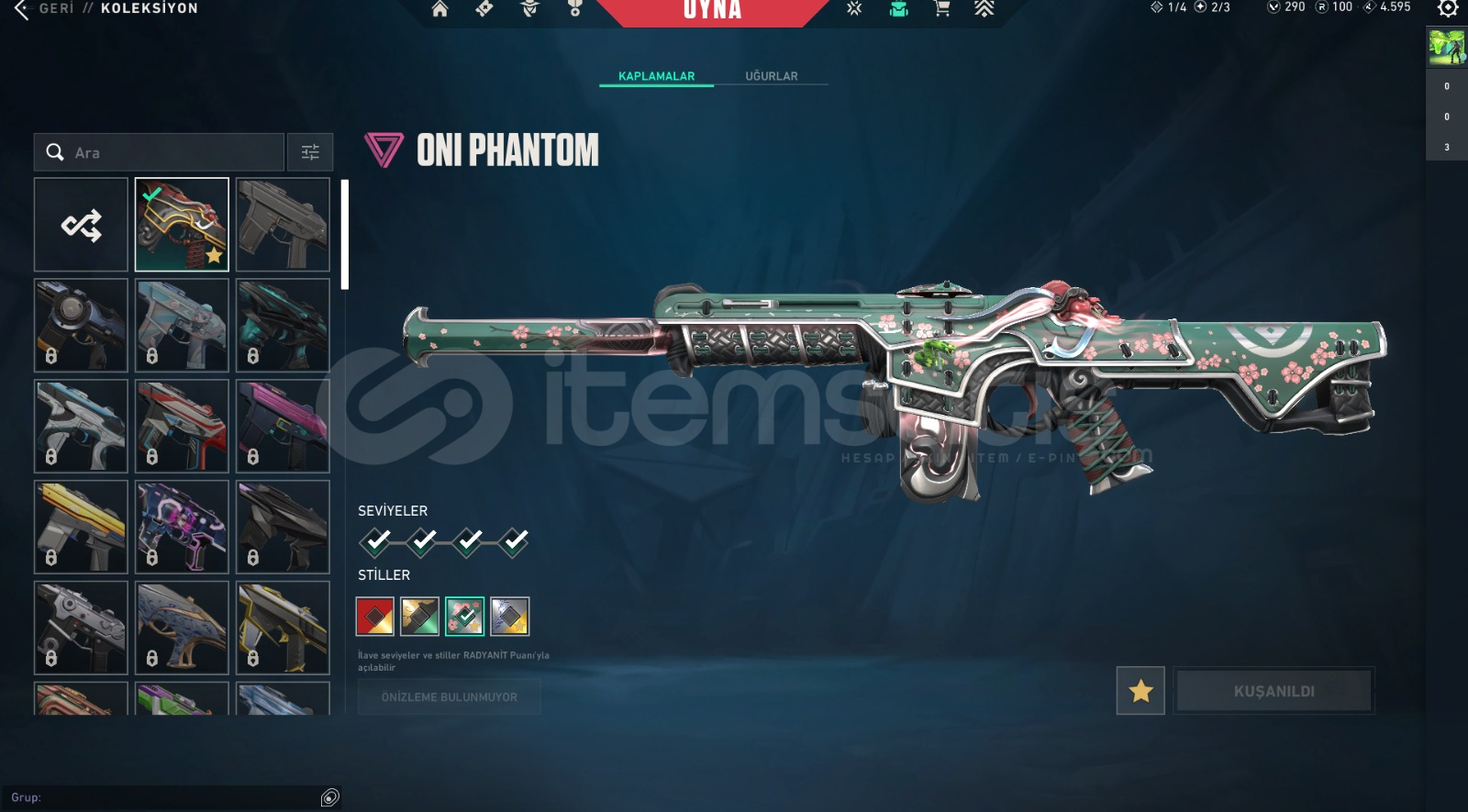 ⭐️Hesapta yağmacı vandal, oni phantom, beta bıçağı ve 2 adet battle pass skini bulunmaktadır.