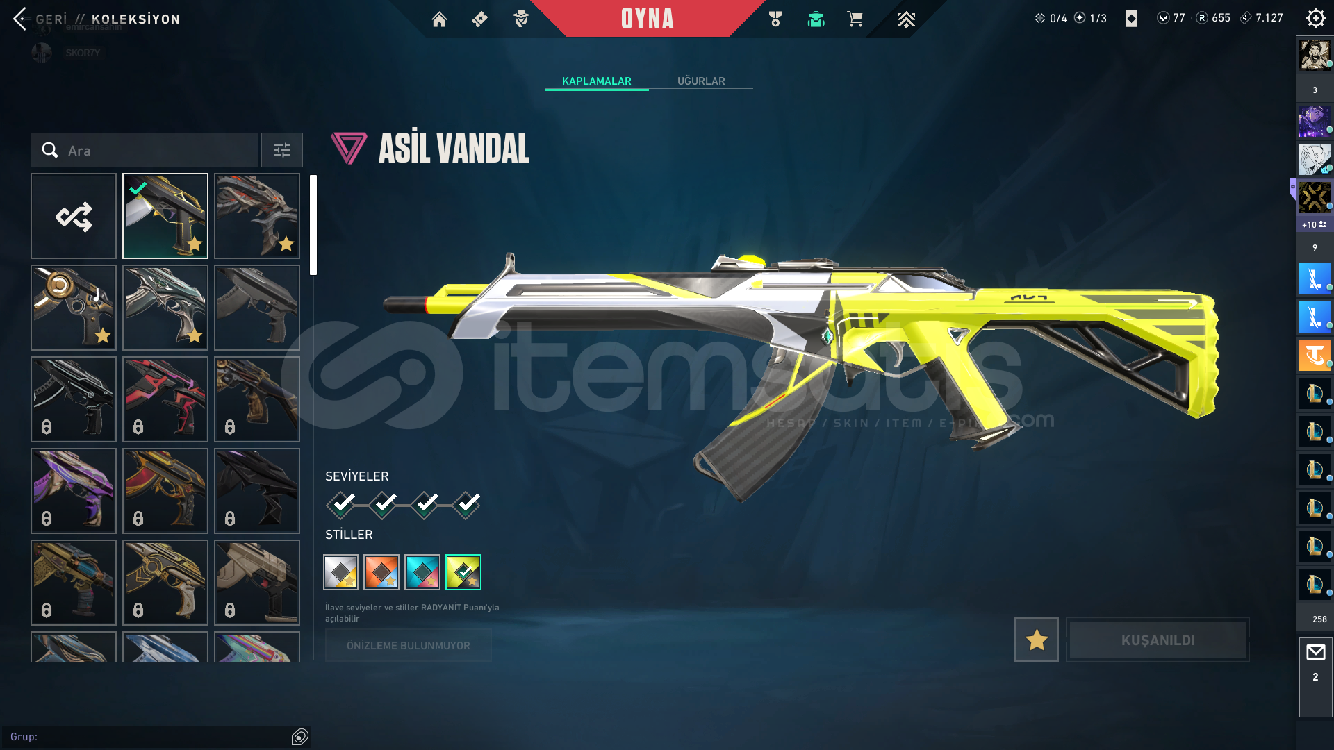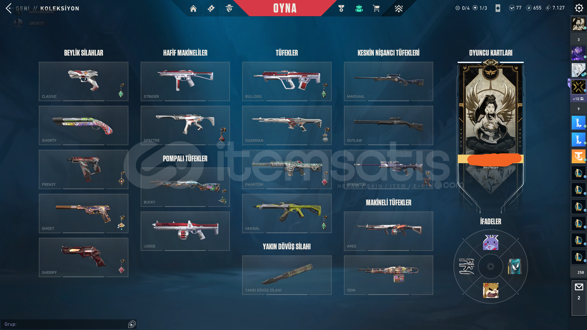 AYNI ZAMANDA LOL HESABI OLUP İÇİNDE 98 KOSTÜM VARDIR VANDAL--- ASİL VANDAL KÖKEN VANDAL YİTİK VANDAL FELAKETİN KALBİ VANDAL PHANTOM-- 2BP ONİ PHANTOM ASİL PHANTOM OPERATÖR-- YAĞMACI OPERATÖR 2BP SHERİFF-- ANOMALİ SHERİFF BIÇAK--- ÖZEL HAREKAT KELEBEK BP HANÇER