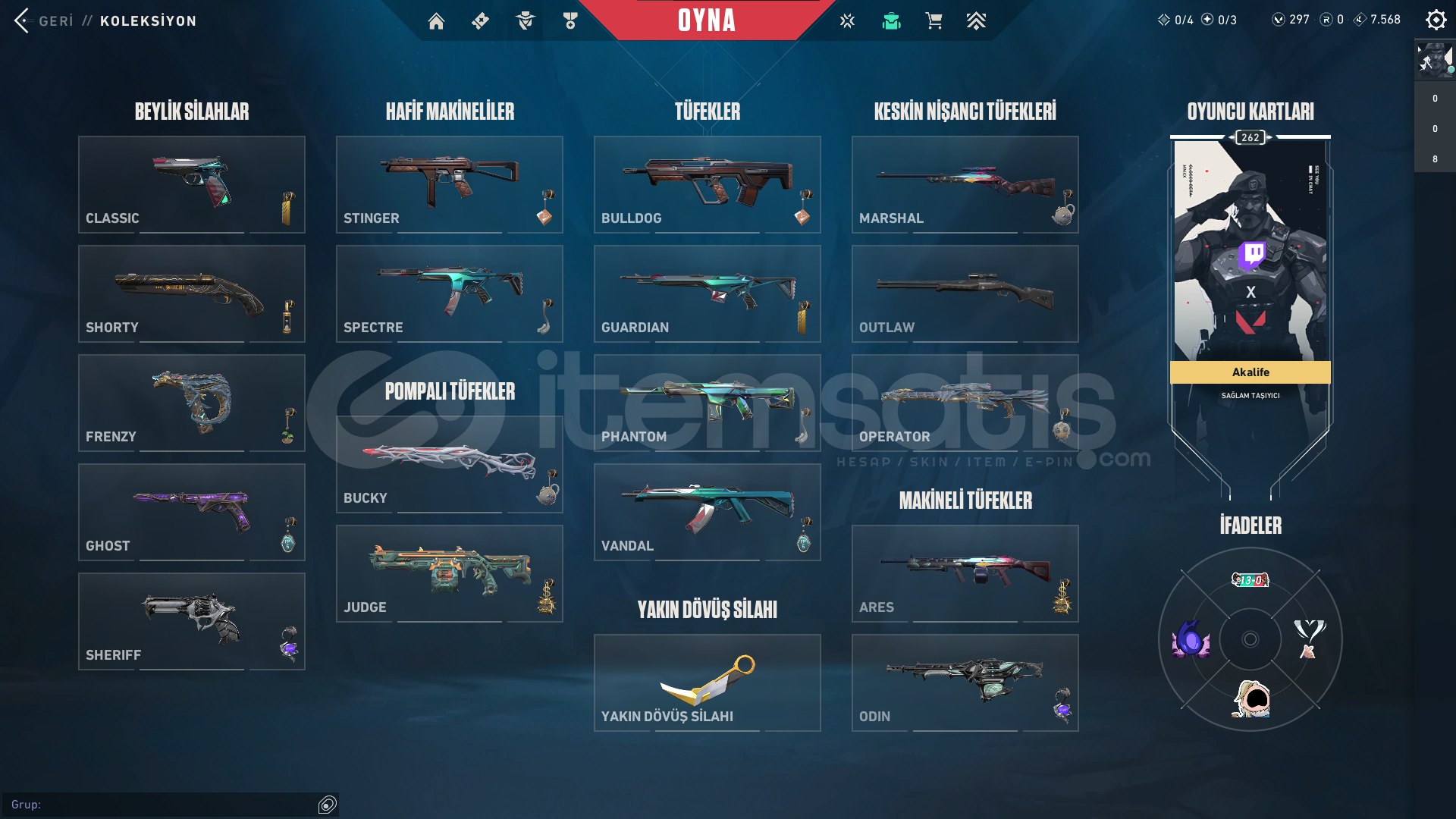 Üniversite İçin İzmir'e Gideceğimden Ötürü Satıyorum.Hesap İçeriği (Skin Setleri)Asil 1 Set; (Classic, Spectre, Guardian, Vandal, Asil Balta)Yağmacı 2 Set; (Ghost, Spectre, Phantom, Odin, Yağmacı Karambit)Hesap İçeriği (Diğer Skinler)Afet Ghost, Ejder Frenzy, Ejder Operator, Gaia Bucky, Gaia Vandal, Yağmacı Sheriff, Yağmacı Vandal, Asil Phantom, Asil Karambit, Yağmac...
