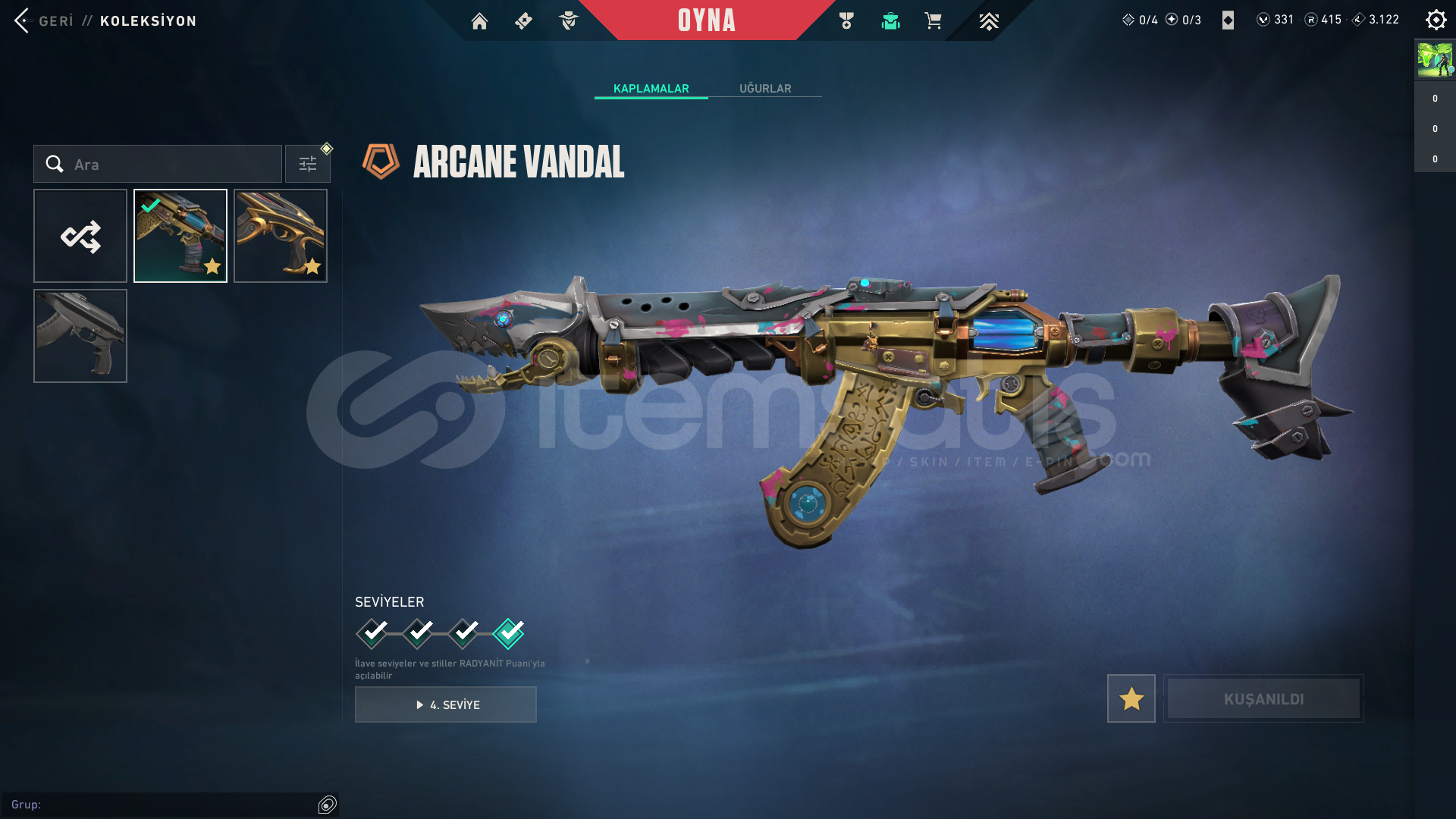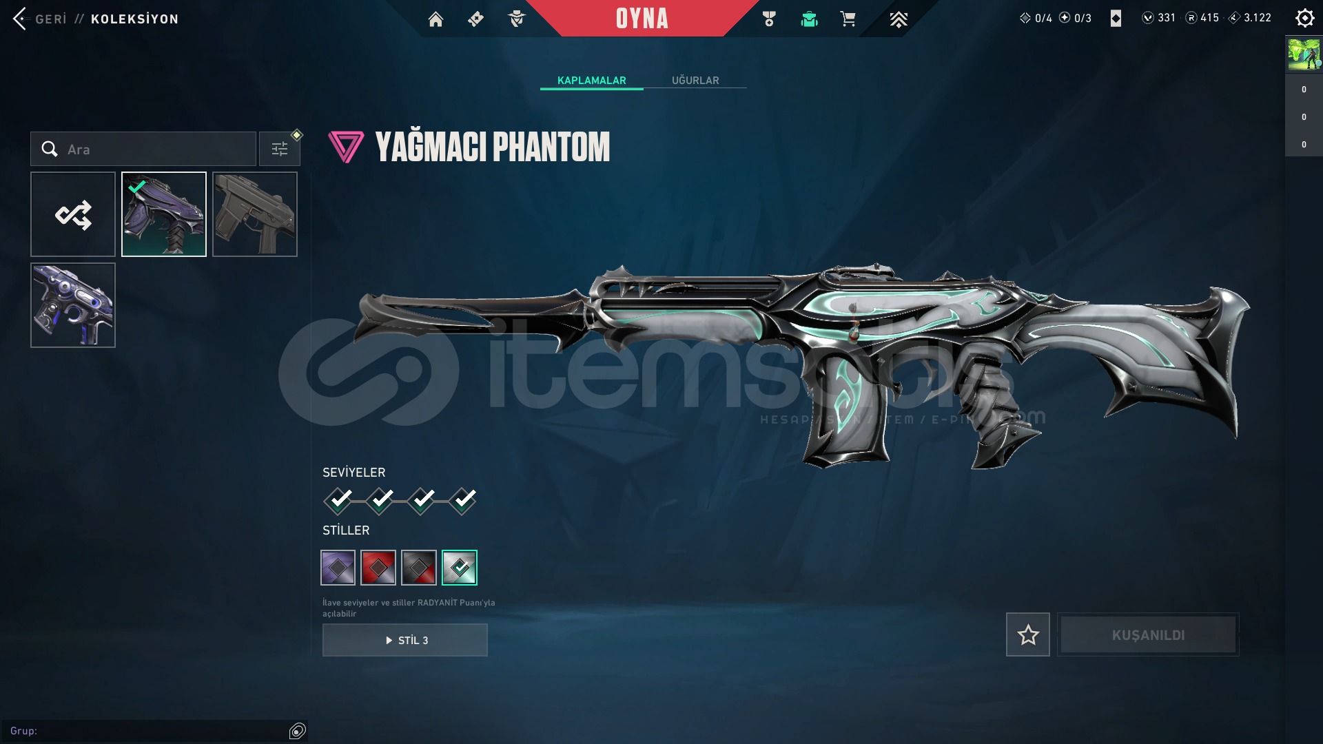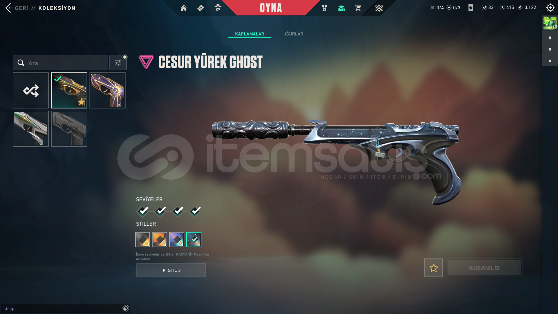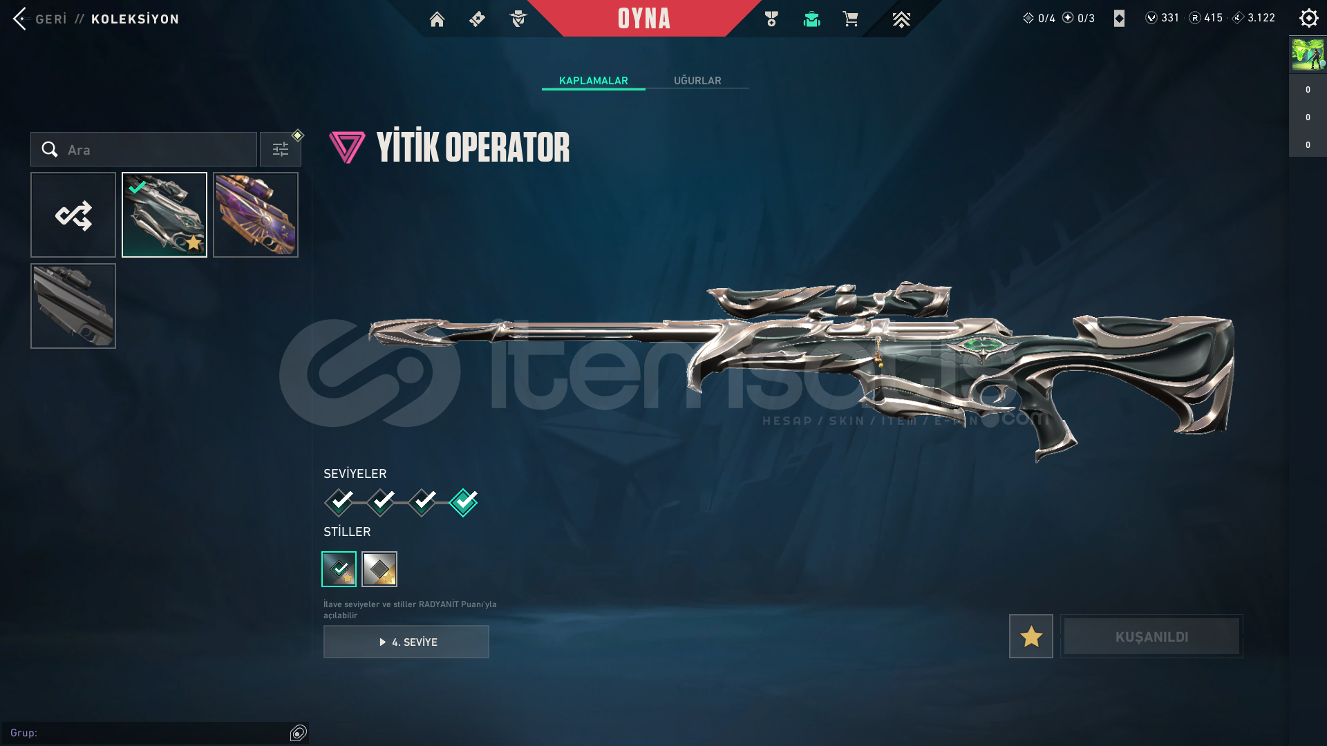 • hesapta 24 skin vardır