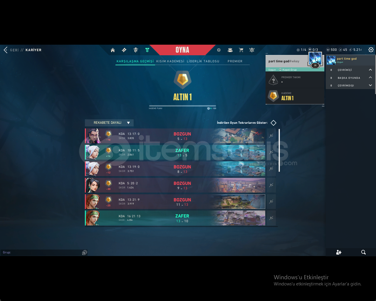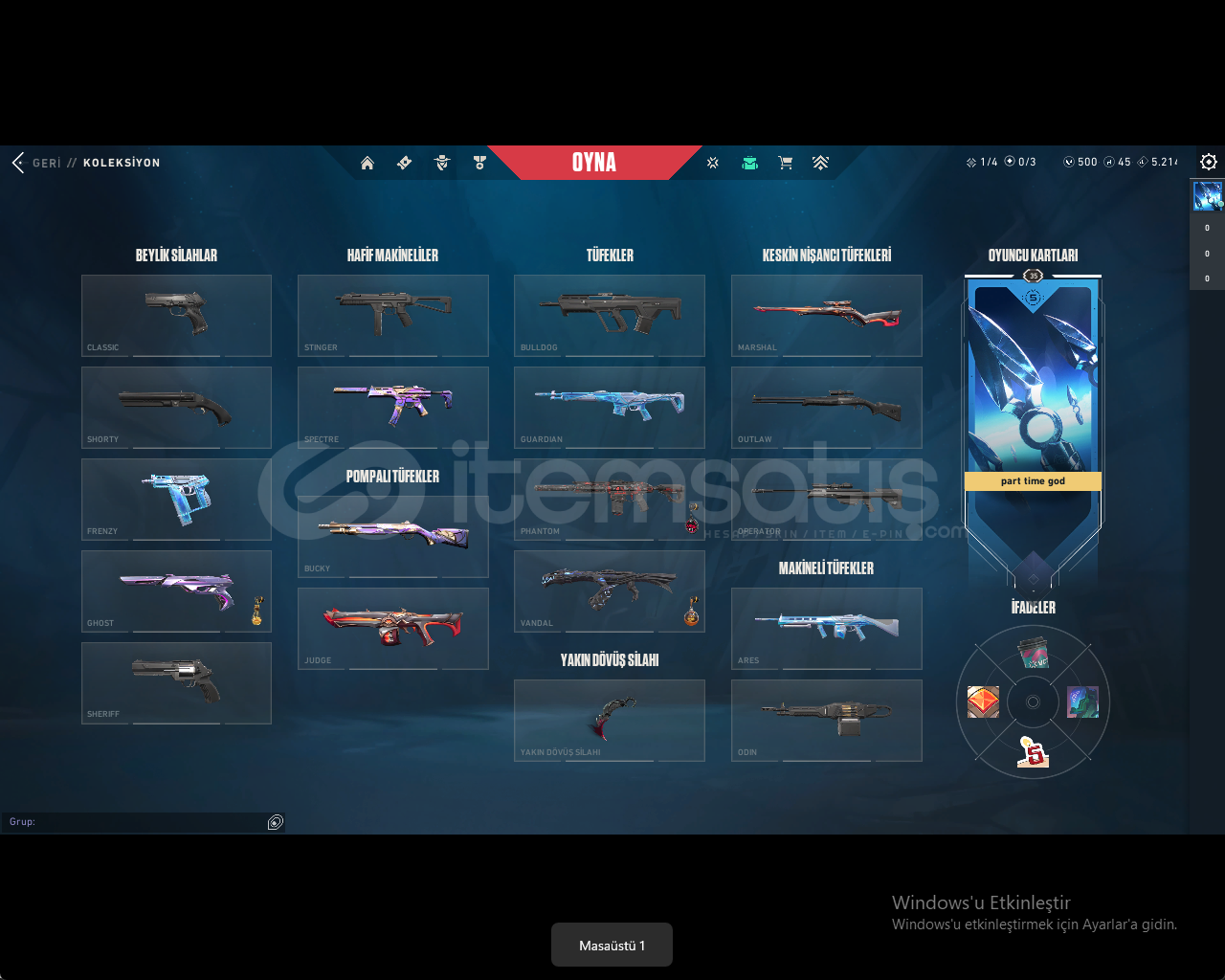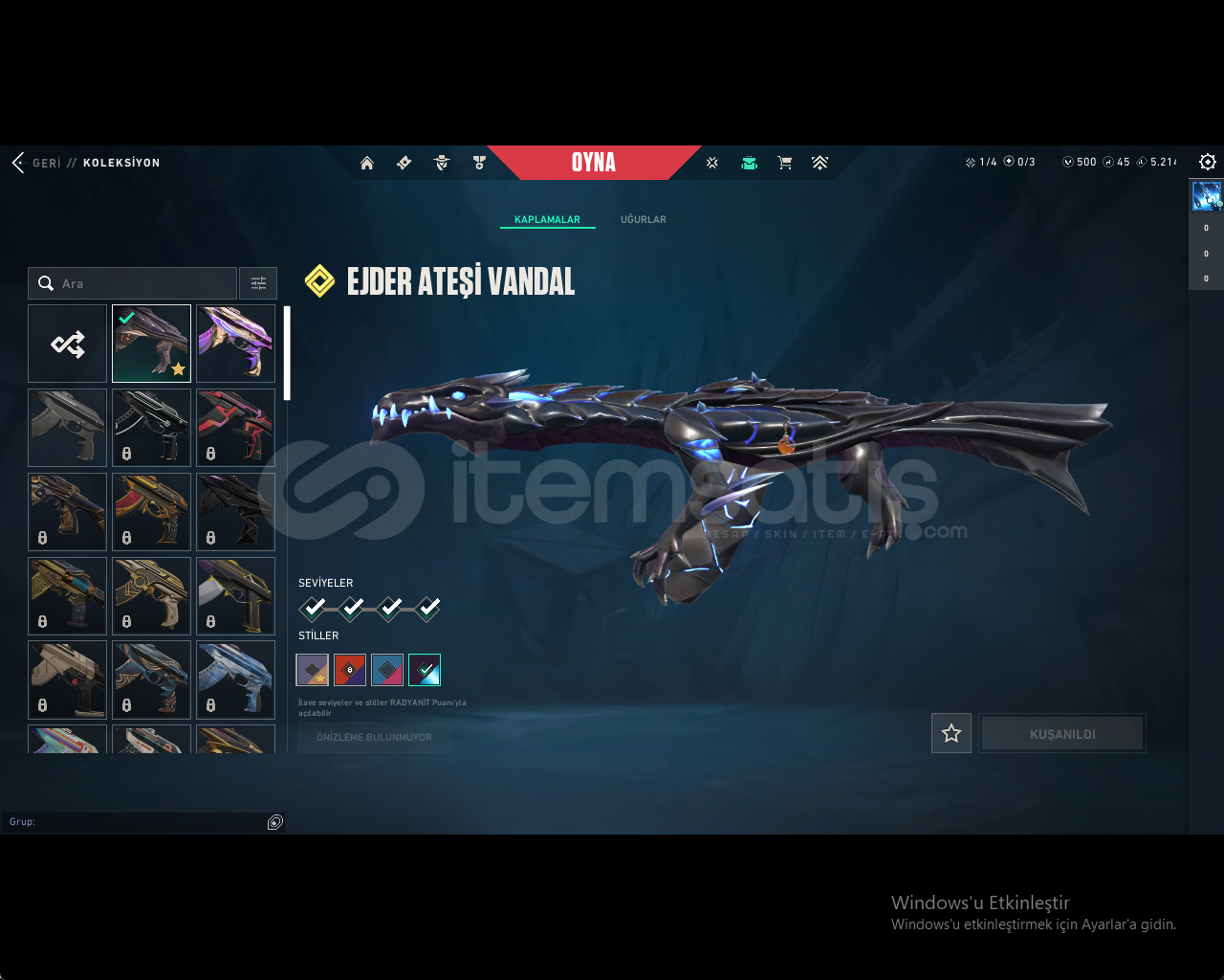 :HESAP İÇERİĞİ:YAĞMACI KARAMBİT:ÖZEL HAREKET PHANTOM:EJDER ATEŞİ VANDAL:ULUPENCE GHOST:500 VP VARDIR:GOLD 1