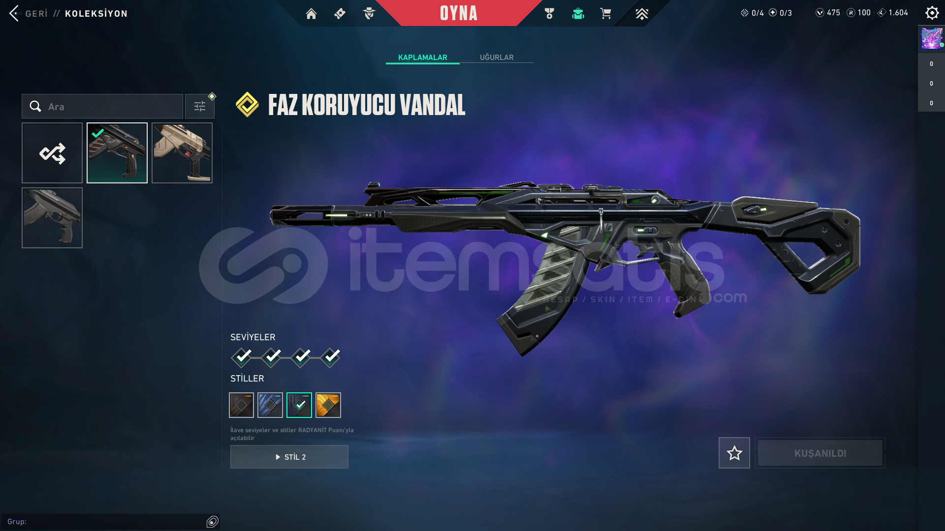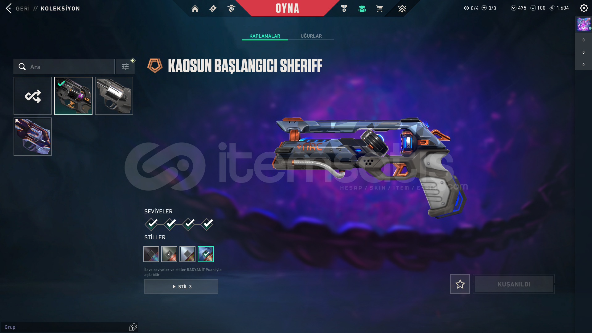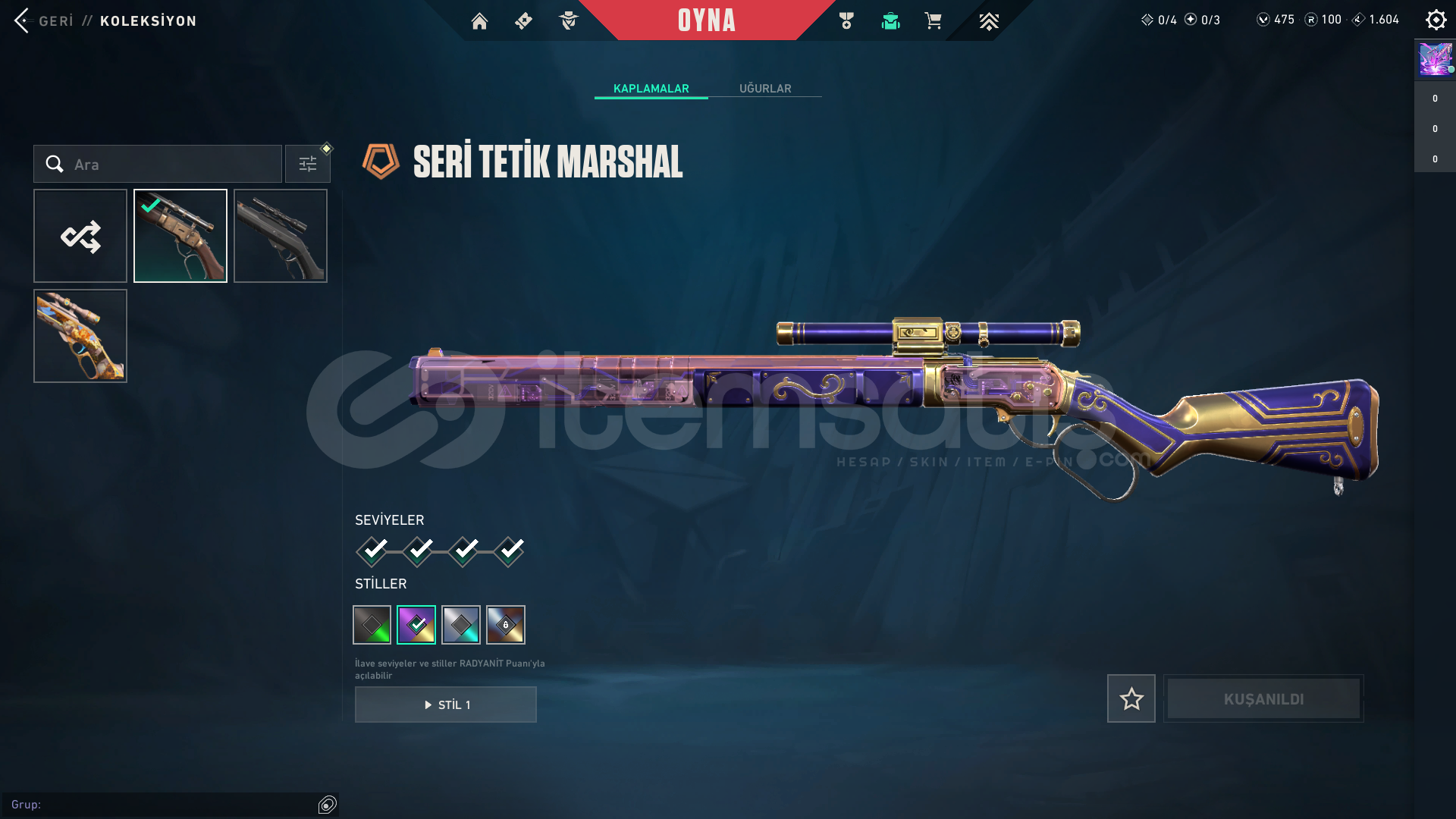 • hesapta 17 skin vardır