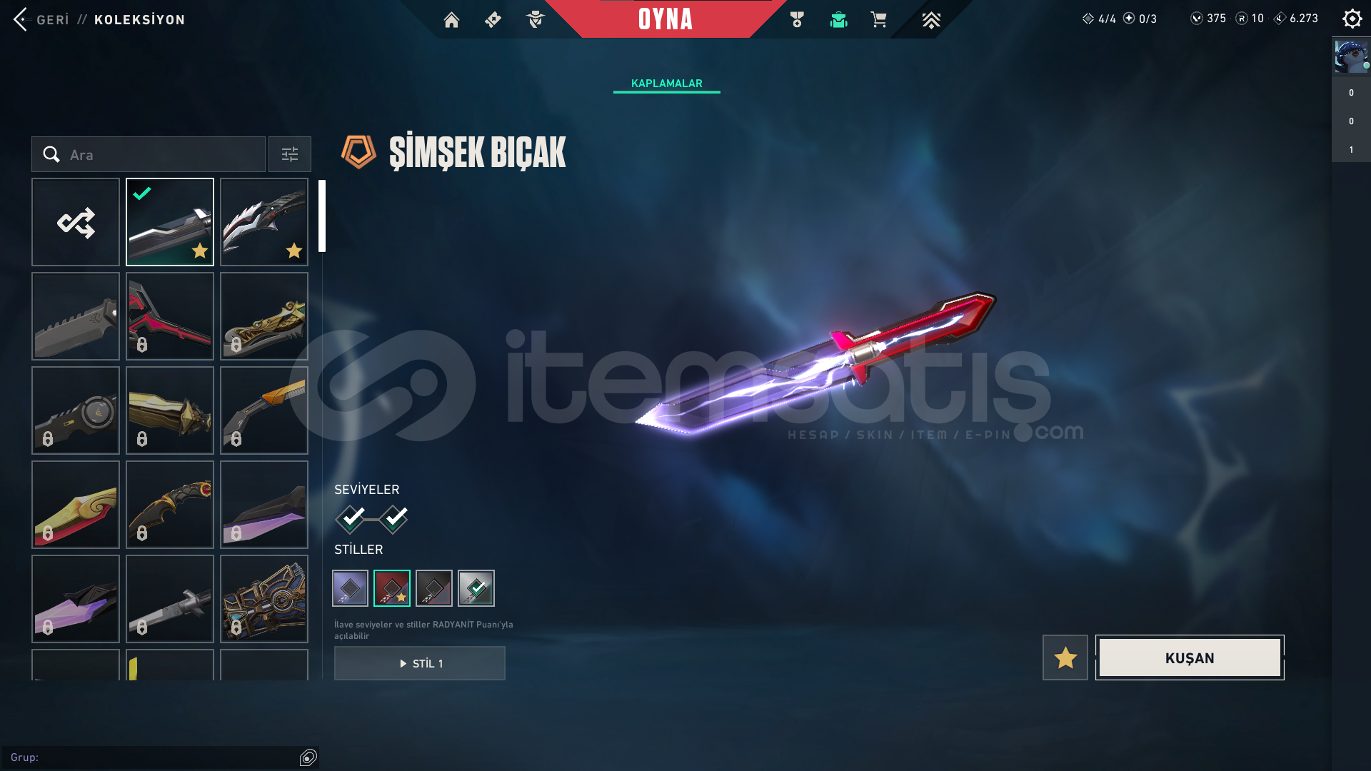VE ŞİMŞEK SETİNİN 4300 VP DEĞERİNDEKİ BIÇAĞI BULUNMAKTADIR